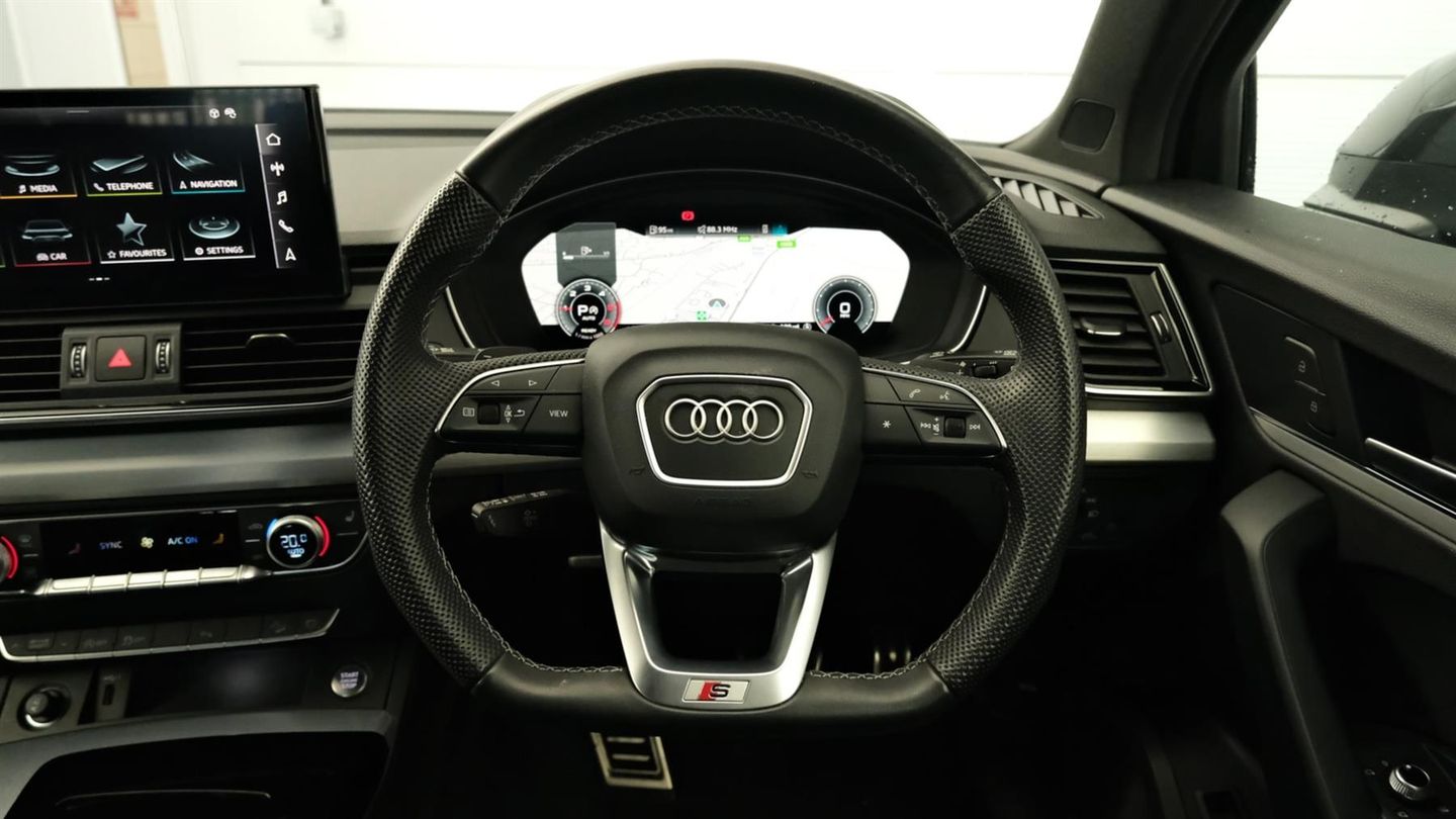 Reserve Online,Comfort and Sound Pack,Bang & Olufsen sound system,360 degree camera,Extended LED Interior Lighting,Flat bottom steering wheel 3-spoke with multi-function,Fuel tank with 70-litre capacity,Towbar (folding),MMI navigation plus with 10.1" touch screen,Audi wireless smartphone interface,Audi virtual cockpit plus with 12.3" screen and three different layout designs,Audi matrix LED headlights with dynamic front and rear indicators,Auto dimming rear view mirror,Auto dimming door mirrors,Electromechanical parking brake,Tyre pressure warning,S line sports suspension,Deluxe 3 zone electronic climate control,Heated front seats,Keyless Go access/ignition system,Advanced key with electric hands free boot opening system,Extended LED Interior multi coloured Lighting Pack - Q5