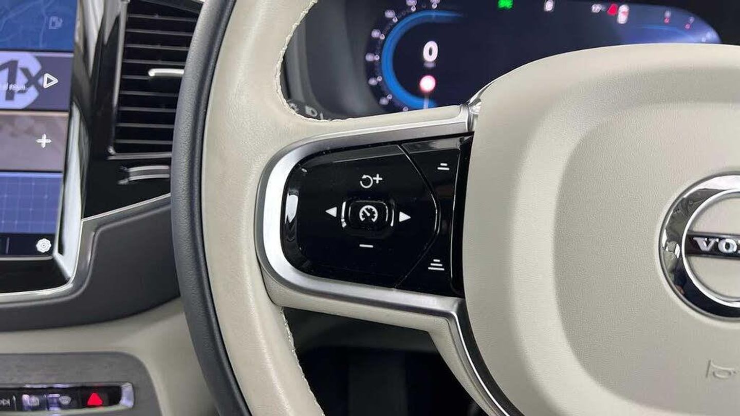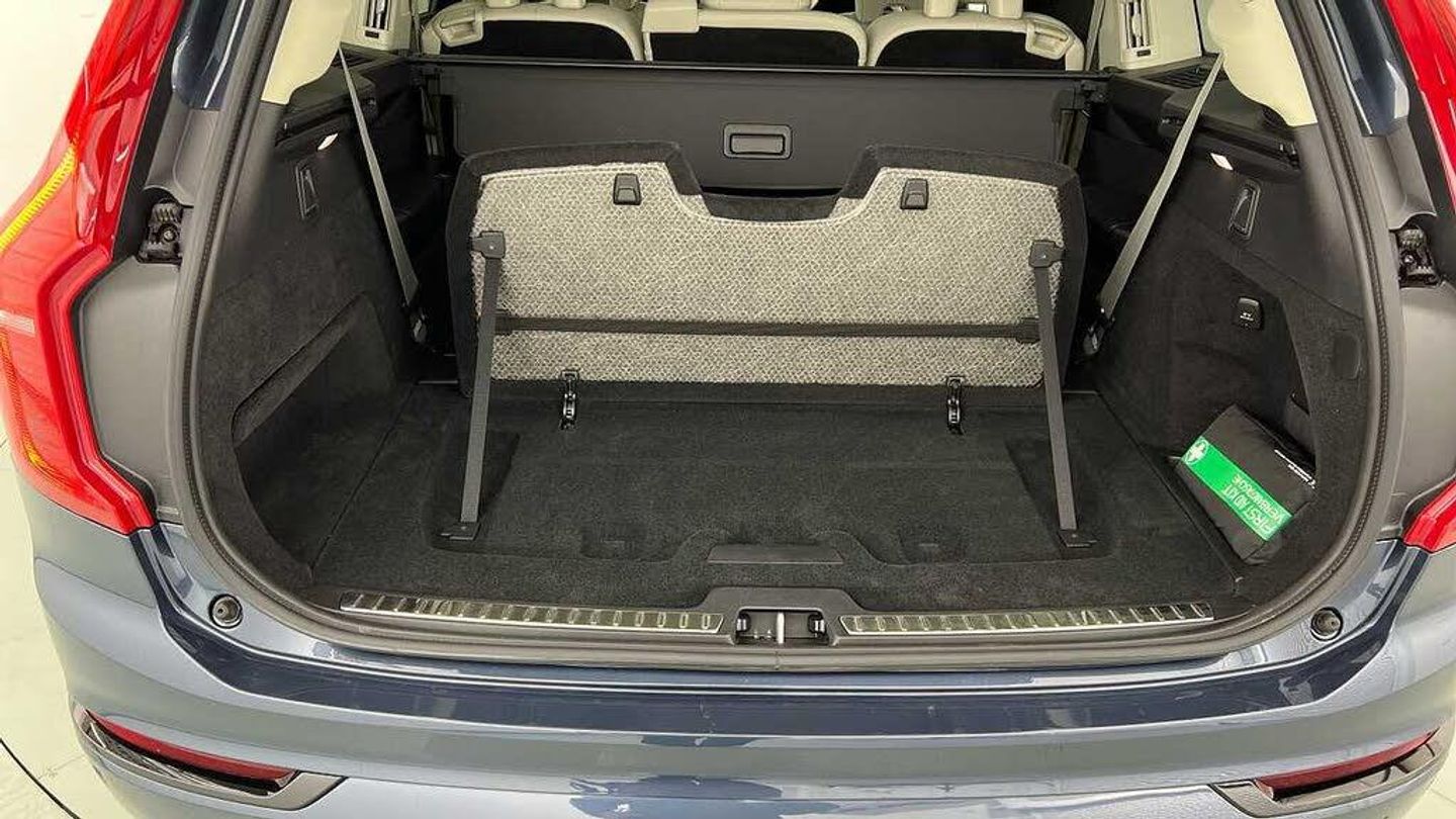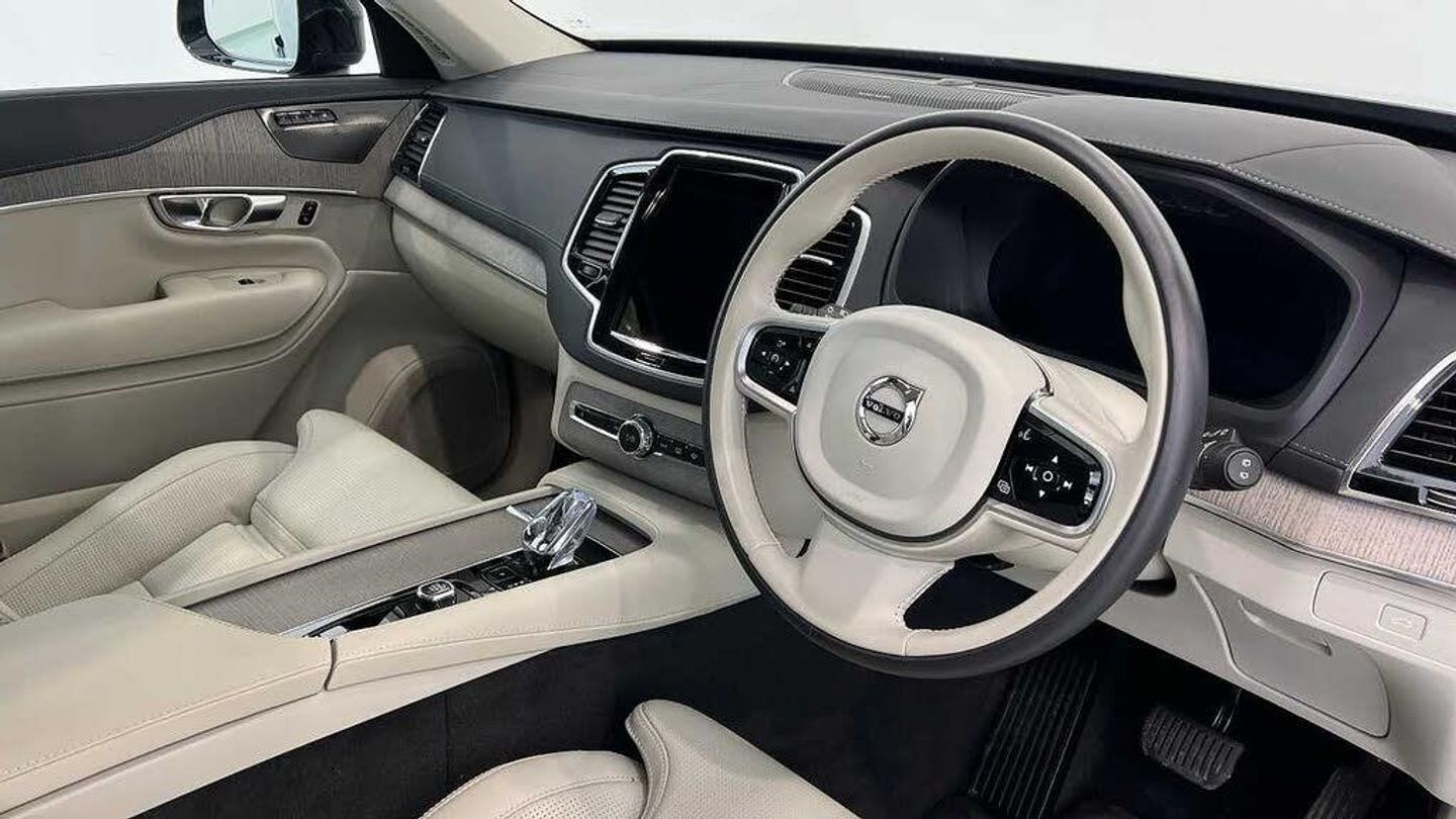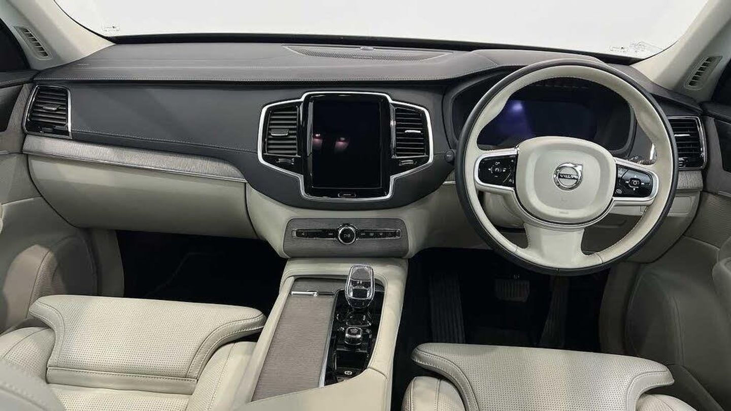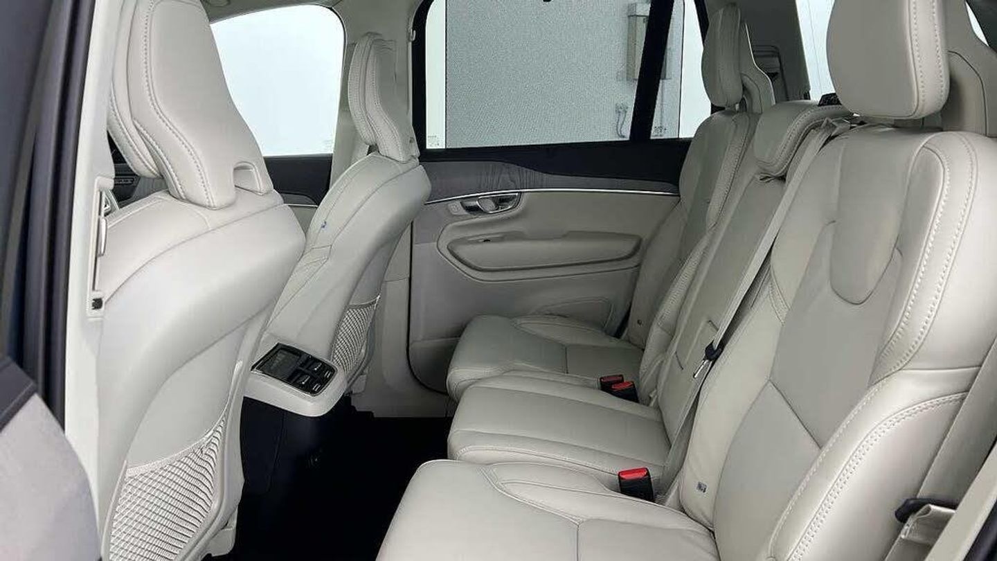 Edition package, Tinted rear windows, 21 5-V spoke glossy black diamond cut, Blond Ventilated nappa leather in Blond/Charcoal interior, Crystal gear shift by Orrefors®, Blond headlining, Grey Ash decor, Ventilated nappa leather upholstery, Front seat ventilation, Power side bolsters, Tailored leather steering wheel, Comfort front seats, 8-speed Geartronic automatic. AWD, Pedals, Third row air conditioning, Four-zone climate system, Afterrun parking climate, Passenger airbag cut-off switch, Dual-stage airbags, Knee airbag. driver side, Panoramic roof, Road Sign Information, Lane Keeping Aid and Lane Departure Warning, Front grille with high-gloss black insert, Heated grill emblem, Full-LED headlights, Headlight cleaning, Trailer lamp control, Fog lamps, 12.3-inch driver display, Google Assistant. Google Maps and Google Play Store - included for 4 years, Adaptive cruise control, Pilot Assist, Intelligent Speed Assist (ISA), Volvo Cars App remote functions, Air-ventilated subwoofer, Digital Audio Broadcasting (DAB+), Harman Kardon Premium Sound, Power retractable door mirrors, Power passenger seat with memory, Wireless phone charging, Automatic door locking, Remote key, Door mirror covers. high-gloss black, Double locking, Tinted rear windows, BLIS and Cross Traffic Alert, Alarm, Power child safety lock, Keyless entry with hands-free power tailgate, Air purifier and remote cabin pre-cleaning, Speech function, Digital owners manual, Textile mats. third-row, Tailored dashboard and door top panels, Power driver seat with memory, Power passenger seat, Heated front seats, Heated rear seats, Power folding outer rear head restraints. second row, 7 seats, Mechanical release second seat row, Power 4-way lumbar support, Exclusive textile interior cabin floor mats. Charcoal, Protection net, Grocery bag holder, Rear centre armrest, Illuminated vanity mirrors, Interior illumination. high level, Power outlet. load compartment, First-aid kit, Load cover, Rear door sun curtains, Auto-dimmed rear view mirrors, Hidden storage, Power cushion extension. driver, Touring chassis, Hill Start Assist, Tyre pressure monitoring, Oncoming Lane Mitigation, Rear Collision Warning, Hill Descent Control, Slippery road alert, Emergency brake light, Heated steering wheel, Adaptive power steering, 21 5-V spoke glossy black diamond cut, Temporary spare wheel, Lockable wheel bolts, Heated windscreen, Wiper blades with integrated washers, Body-coloured door handles with ground lighting, Glossy black front decor elements, Tailgate scuff plate. stainless steel, Illuminated sill moulding, High-gloss black side window trim, Roof rails. glossy black, Warning triangle, All-wheel Drive (AWD), Tempered side windows, Park assist. front. rear and sides, Ticket holder, 360° camera, Alcohol lock software (not available in the UK), Protective cap kit. Matt Tech Grey, Apple CarPlay, 9-inch centre display, Whiplash injury protection, Inflatable Curtain, Side impact protection, Intelligent Driver Information System (IDIS), High positioned rear brake lights, ISOFIX mounting points. rear seat, Safety belts, Rain sensor, Steering wheel remote control, Humidity sensor, Start/Stop technology, Bluetooth® connection