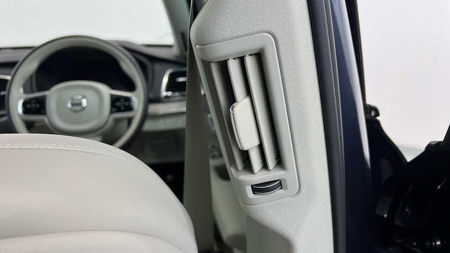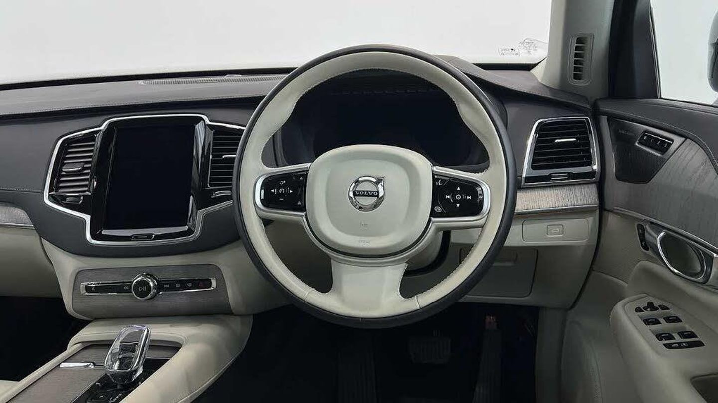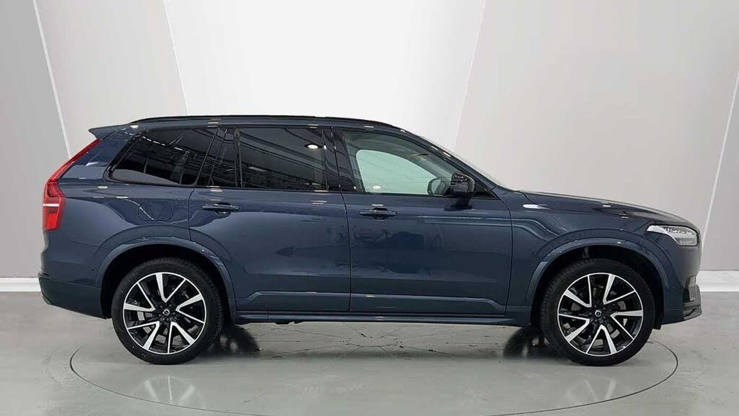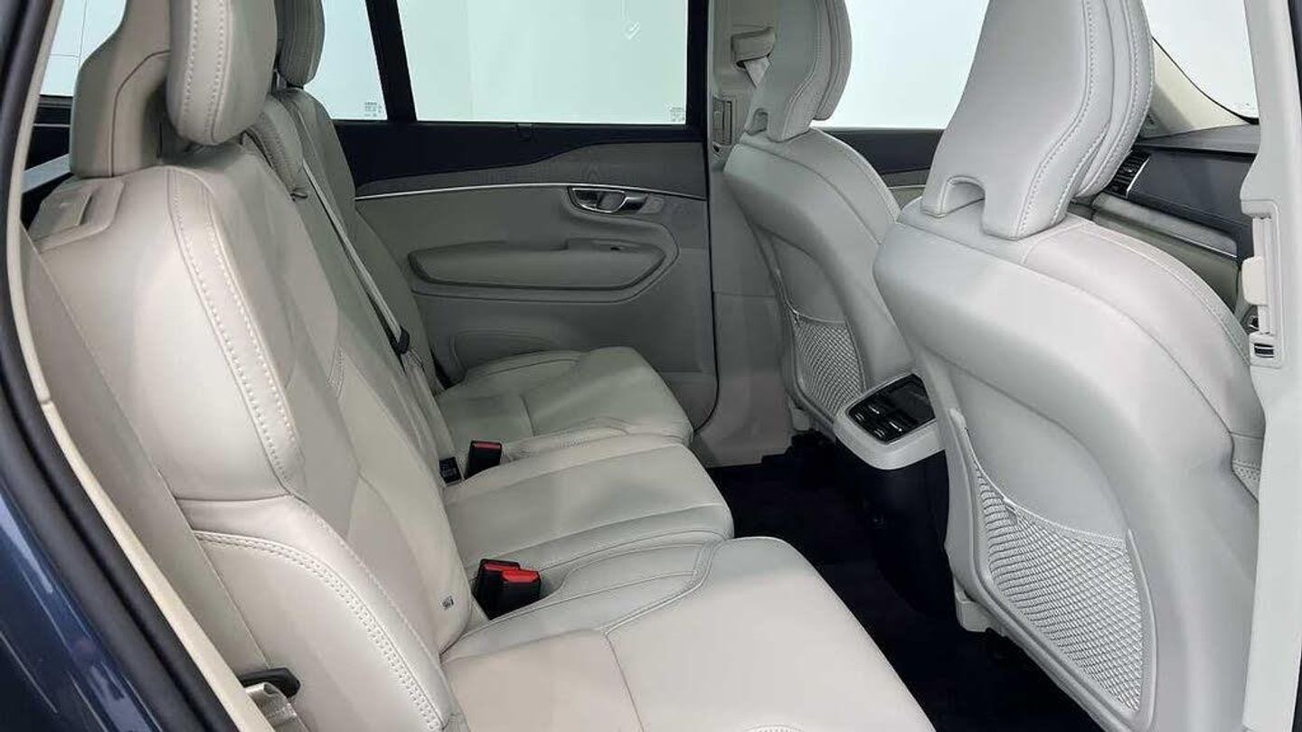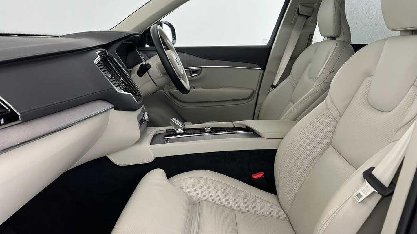 Edition package, Tinted rear windows, 21 5-V spoke glossy black diamond cut, Blond Ventilated nappa leather in Blond/Charcoal interior, Crystal gear shift by Orrefors®, Blond headlining, Grey Ash decor, Ventilated nappa leather upholstery, Front seat ventilation, Power side bolsters, Tailored leather steering wheel, Comfort front seats, 8-speed Geartronic automatic. AWD, Pedals, Third row air conditioning, Four-zone climate system, Afterrun parking climate, Passenger airbag cut-off switch, Dual-stage airbags, Knee airbag. driver side, Panoramic roof, Road Sign Information, Lane Keeping Aid and Lane Departure Warning, Front grille with high-gloss black insert, Heated grill emblem, Full-LED headlights, Headlight cleaning, Trailer lamp control, Fog lamps, 12.3-inch driver display, Google Assistant. Google Maps and Google Play Store - included for 4 years, Adaptive cruise control, Pilot Assist, Intelligent Speed Assist (ISA), Volvo Cars App remote functions, Air-ventilated subwoofer, Digital Audio Broadcasting (DAB+), Harman Kardon Premium Sound, Power retractable door mirrors, Power passenger seat with memory, Wireless phone charging, Automatic door locking, Remote key, Door mirror covers. high-gloss black, Double locking, Tinted rear windows, BLIS and Cross Traffic Alert, Alarm, Power child safety lock, Keyless entry with hands-free power tailgate, Air purifier and remote cabin pre-cleaning, Speech function, Digital owners manual, Textile mats. third-row, Tailored dashboard and door top panels, Power driver seat with memory, Power passenger seat, Heated front seats, Heated rear seats, Power folding outer rear head restraints. second row, 7 seats, Mechanical release second seat row, Power 4-way lumbar support, Exclusive textile interior cabin floor mats. Charcoal, Protection net, Grocery bag holder, Rear centre armrest, Illuminated vanity mirrors, Interior illumination. high level, Power outlet. load compartment, First-aid kit, Load cover, Rear door sun curtains, Auto-dimmed rear view mirrors, Hidden storage, Power cushion extension. driver, Touring chassis, Hill Start Assist, Tyre pressure monitoring, Oncoming Lane Mitigation, Rear Collision Warning, Hill Descent Control, Slippery road alert, Emergency brake light, Heated steering wheel, Adaptive power steering, 21 5-V spoke glossy black diamond cut, Temporary spare wheel, Lockable wheel bolts, Heated windscreen, Wiper blades with integrated washers, Body-coloured door handles with ground lighting, Glossy black front decor elements, Tailgate scuff plate. stainless steel, Illuminated sill moulding, High-gloss black side window trim, Roof rails. glossy black, Warning triangle, All-wheel Drive (AWD), Tempered side windows, Park assist. front. rear and sides, Ticket holder, 360° camera, Alcohol lock software (not available in the UK), Protective cap kit. Matt Tech Grey, Apple CarPlay, 9-inch centre display, Whiplash injury protection, Inflatable Curtain, Side impact protection, Intelligent Driver Information System (IDIS), High positioned rear brake lights, ISOFIX mounting points. rear seat, Safety belts, Rain sensor, Steering wheel remote control, Humidity sensor, Start/Stop technology, Bluetooth® connection