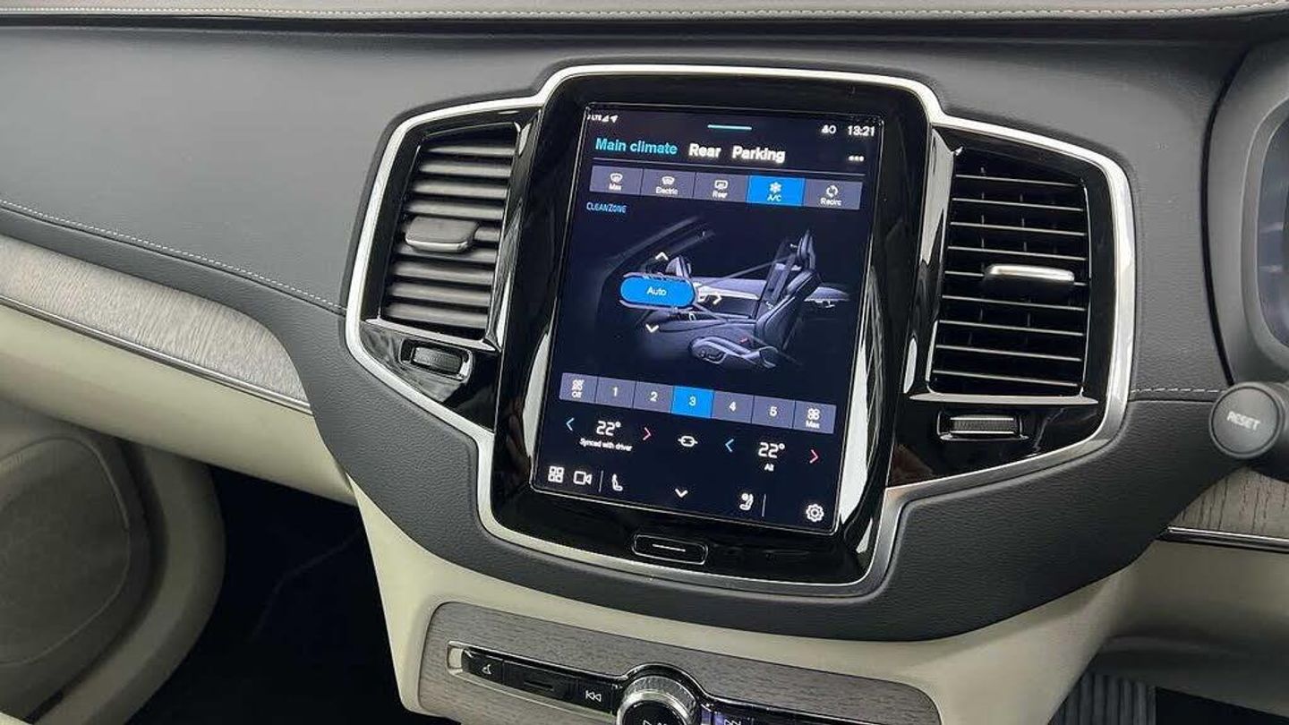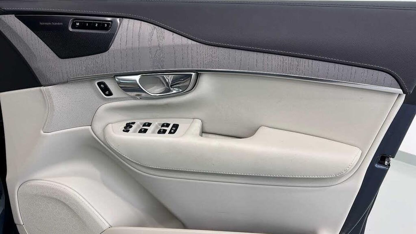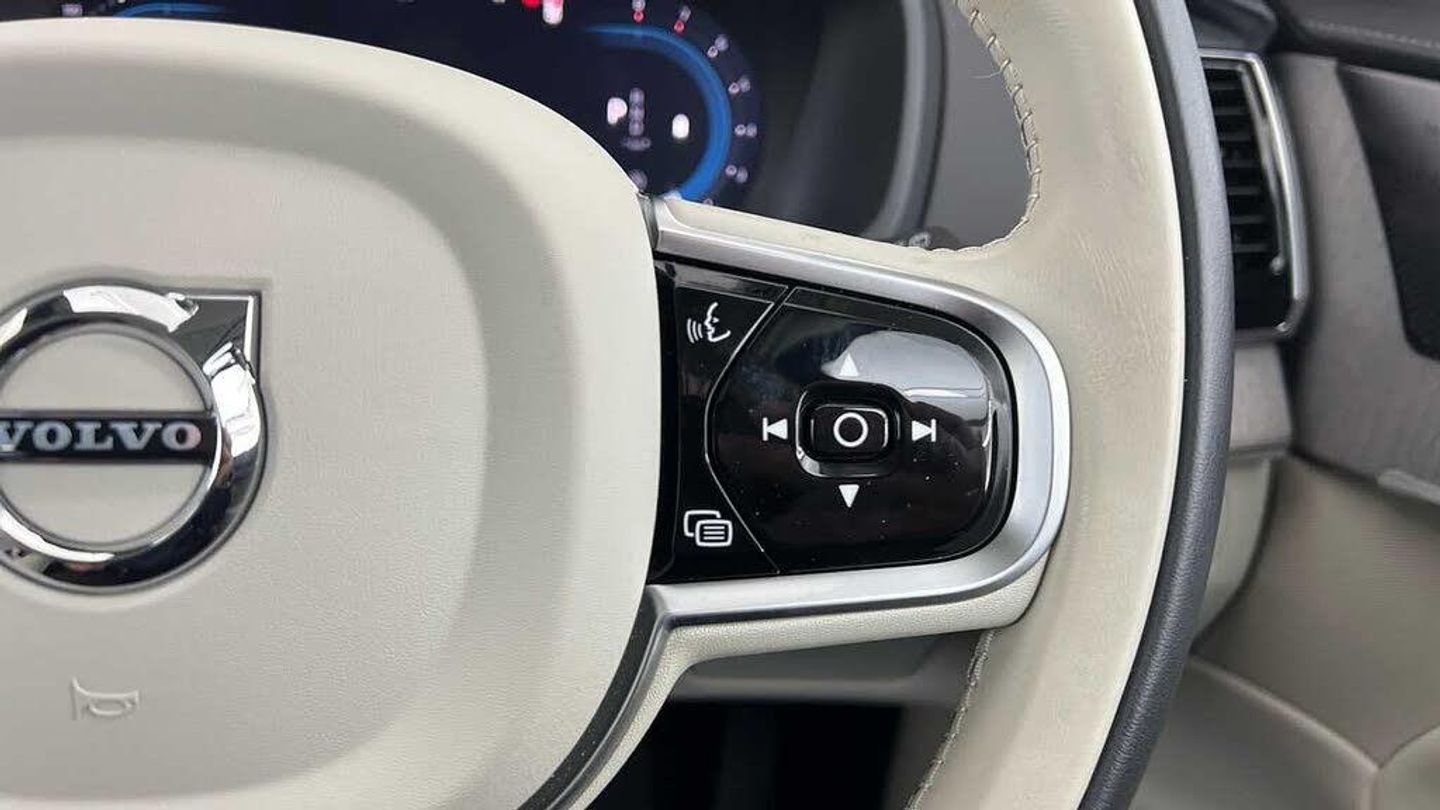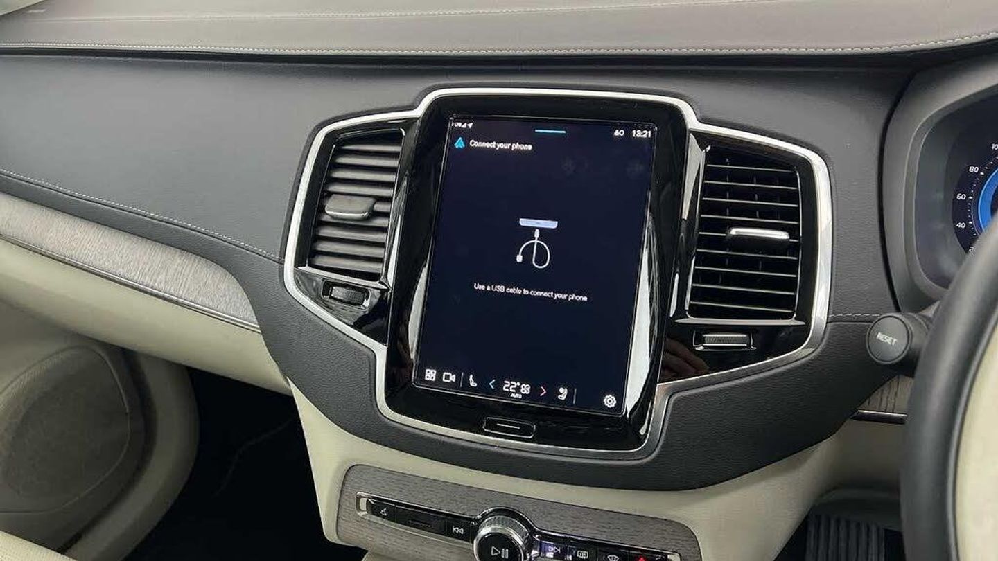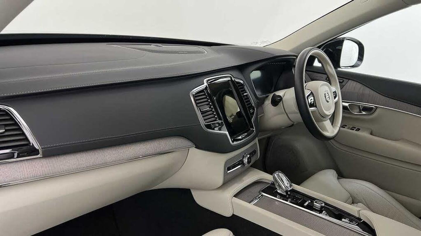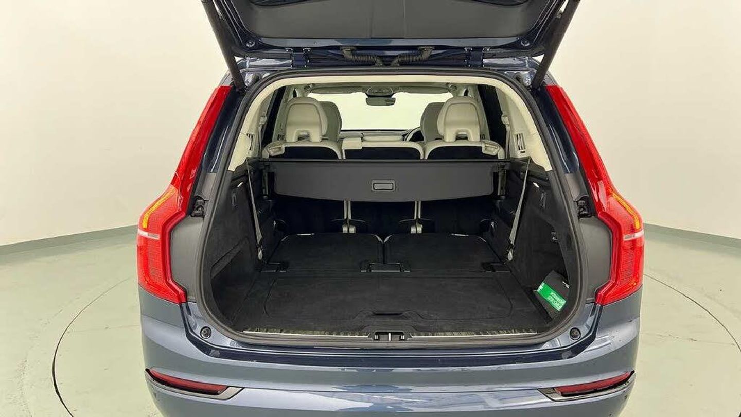 Edition package, Tinted rear windows, 21 5-V spoke glossy black diamond cut, Blond Ventilated nappa leather in Blond/Charcoal interior, Crystal gear shift by Orrefors®, Blond headlining, Grey Ash decor, Ventilated nappa leather upholstery, Front seat ventilation, Power side bolsters, Tailored leather steering wheel, Comfort front seats, 8-speed Geartronic automatic. AWD, Pedals, Third row air conditioning, Four-zone climate system, Afterrun parking climate, Passenger airbag cut-off switch, Dual-stage airbags, Knee airbag. driver side, Panoramic roof, Road Sign Information, Lane Keeping Aid and Lane Departure Warning, Front grille with high-gloss black insert, Heated grill emblem, Full-LED headlights, Headlight cleaning, Trailer lamp control, Fog lamps, 12.3-inch driver display, Google Assistant. Google Maps and Google Play Store - included for 4 years, Adaptive cruise control, Pilot Assist, Intelligent Speed Assist (ISA), Volvo Cars App remote functions, Air-ventilated subwoofer, Digital Audio Broadcasting (DAB+), Harman Kardon Premium Sound, Power retractable door mirrors, Power passenger seat with memory, Wireless phone charging, Automatic door locking, Remote key, Door mirror covers. high-gloss black, Double locking, Tinted rear windows, BLIS and Cross Traffic Alert, Alarm, Power child safety lock, Keyless entry with hands-free power tailgate, Air purifier and remote cabin pre-cleaning, Speech function, Digital owners manual, Textile mats. third-row, Tailored dashboard and door top panels, Power driver seat with memory, Power passenger seat, Heated front seats, Heated rear seats, Power folding outer rear head restraints. second row, 7 seats, Mechanical release second seat row, Power 4-way lumbar support, Exclusive textile interior cabin floor mats. Charcoal, Protection net, Grocery bag holder, Rear centre armrest, Illuminated vanity mirrors, Interior illumination. high level, Power outlet. load compartment, First-aid kit, Load cover, Rear door sun curtains, Auto-dimmed rear view mirrors, Hidden storage, Power cushion extension. driver, Touring chassis, Hill Start Assist, Tyre pressure monitoring, Oncoming Lane Mitigation, Rear Collision Warning, Hill Descent Control, Slippery road alert, Emergency brake light, Heated steering wheel, Adaptive power steering, 21 5-V spoke glossy black diamond cut, Temporary spare wheel, Lockable wheel bolts, Heated windscreen, Wiper blades with integrated washers, Body-coloured door handles with ground lighting, Glossy black front decor elements, Tailgate scuff plate. stainless steel, Illuminated sill moulding, High-gloss black side window trim, Roof rails. glossy black, Warning triangle, All-wheel Drive (AWD), Tempered side windows, Park assist. front. rear and sides, Ticket holder, 360° camera, Alcohol lock software (not available in the UK), Protective cap kit. Matt Tech Grey, Apple CarPlay, 9-inch centre display, Whiplash injury protection, Inflatable Curtain, Side impact protection, Intelligent Driver Information System (IDIS), High positioned rear brake lights, ISOFIX mounting points. rear seat, Safety belts, Rain sensor, Steering wheel remote control, Humidity sensor, Start/Stop technology, Bluetooth® connection