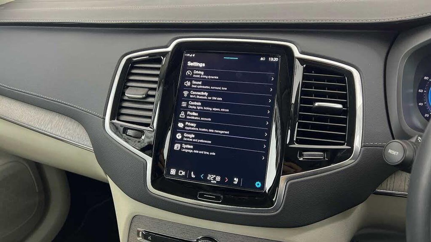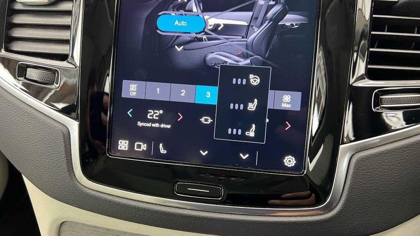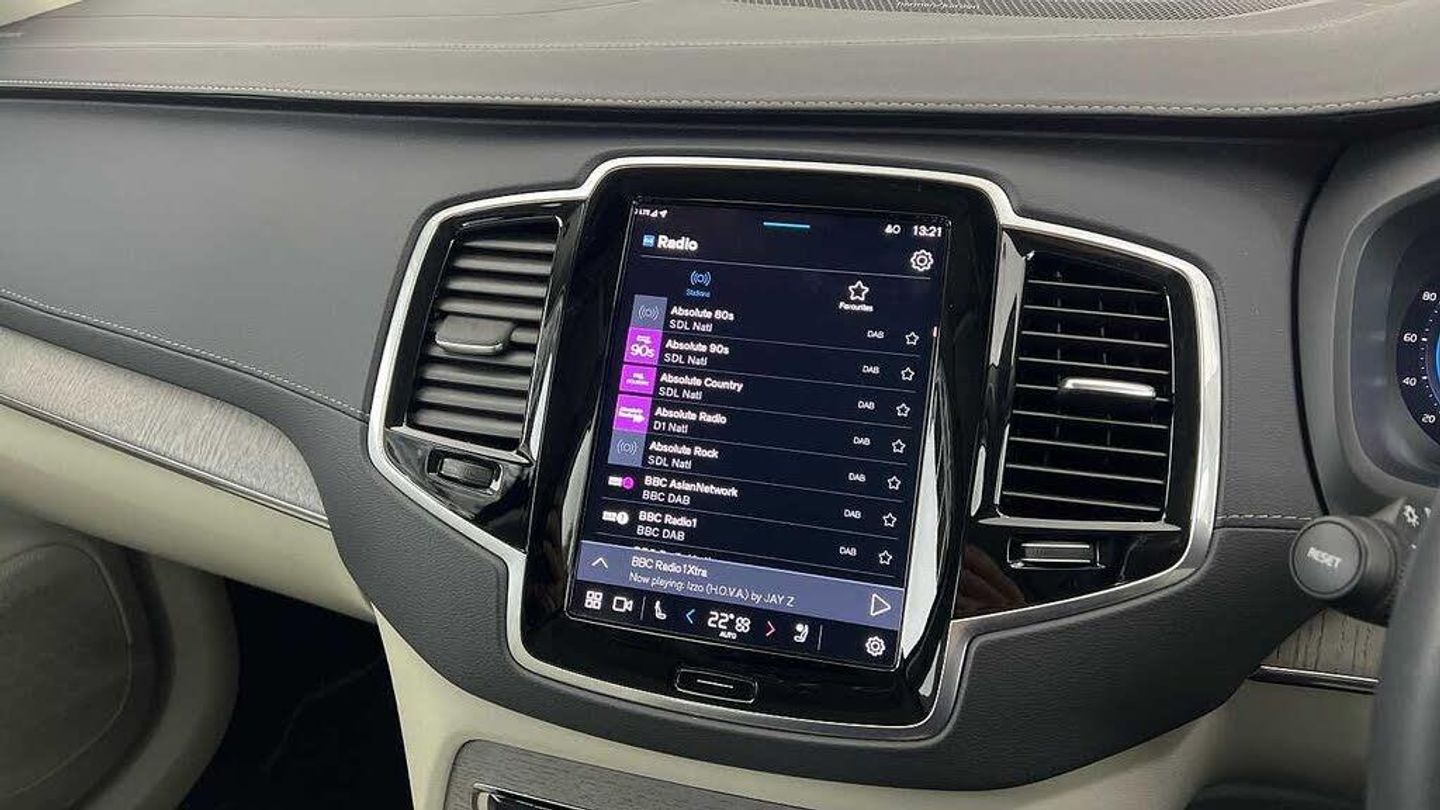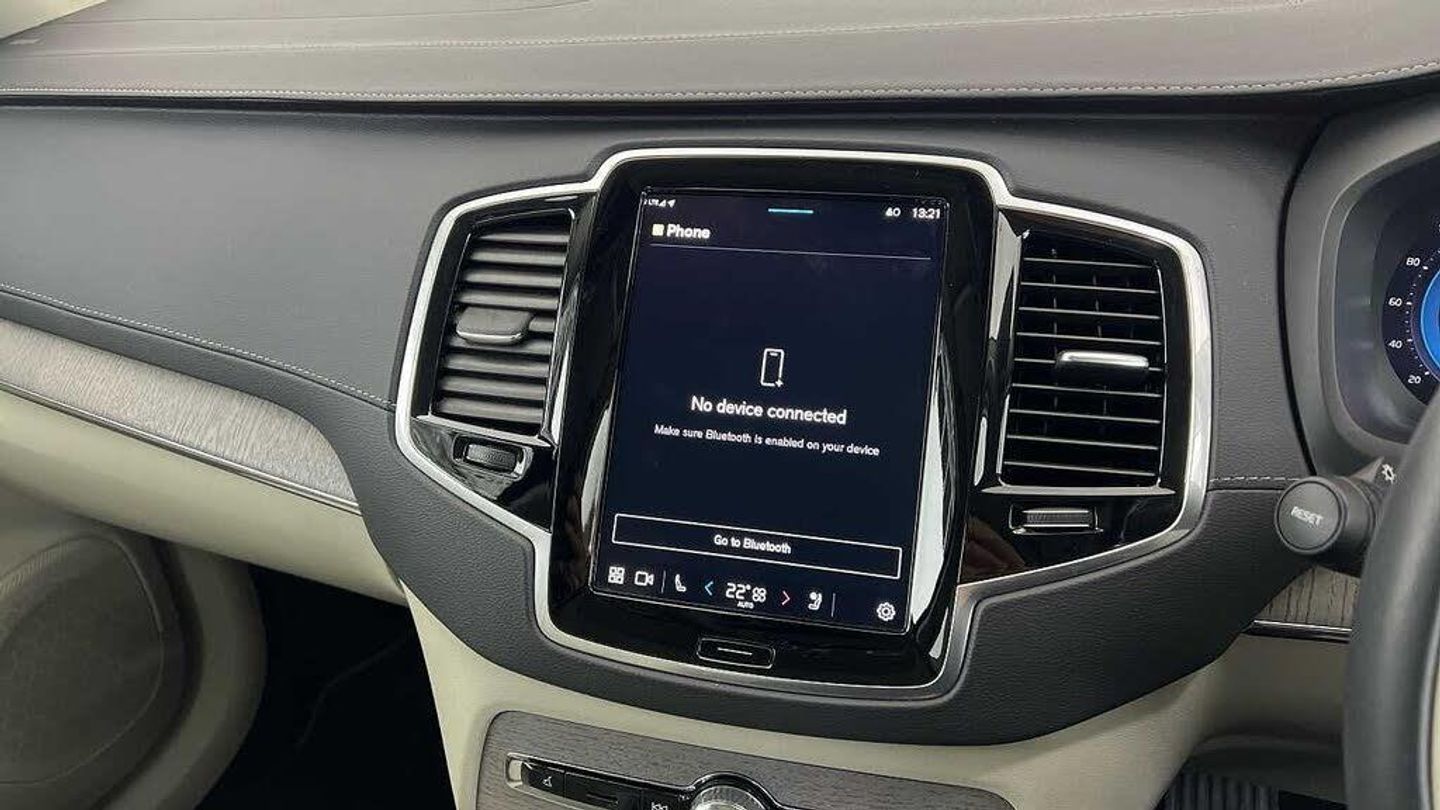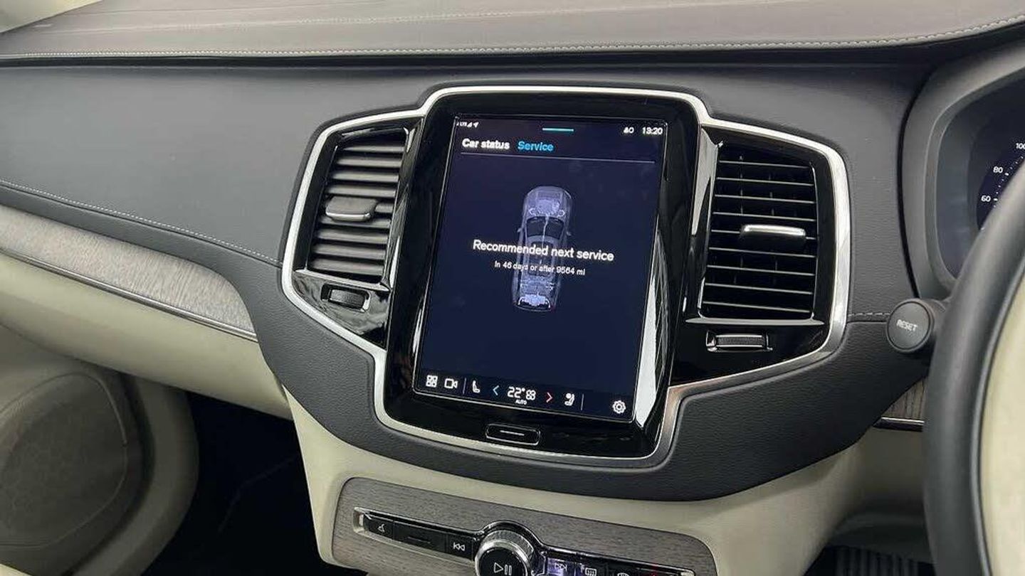 Edition package, Tinted rear windows, 21 5-V spoke glossy black diamond cut, Blond Ventilated nappa leather in Blond/Charcoal interior, Crystal gear shift by Orrefors®, Blond headlining, Grey Ash decor, Ventilated nappa leather upholstery, Front seat ventilation, Power side bolsters, Tailored leather steering wheel, Comfort front seats, 8-speed Geartronic automatic. AWD, Pedals, Third row air conditioning, Four-zone climate system, Afterrun parking climate, Passenger airbag cut-off switch, Dual-stage airbags, Knee airbag. driver side, Panoramic roof, Road Sign Information, Lane Keeping Aid and Lane Departure Warning, Front grille with high-gloss black insert, Heated grill emblem, Full-LED headlights, Headlight cleaning, Trailer lamp control, Fog lamps, 12.3-inch driver display, Google Assistant. Google Maps and Google Play Store - included for 4 years, Adaptive cruise control, Pilot Assist, Intelligent Speed Assist (ISA), Volvo Cars App remote functions, Air-ventilated subwoofer, Digital Audio Broadcasting (DAB+), Harman Kardon Premium Sound, Power retractable door mirrors, Power passenger seat with memory, Wireless phone charging, Automatic door locking, Remote key, Door mirror covers. high-gloss black, Double locking, Tinted rear windows, BLIS and Cross Traffic Alert, Alarm, Power child safety lock, Keyless entry with hands-free power tailgate, Air purifier and remote cabin pre-cleaning, Speech function, Digital owners manual, Textile mats. third-row, Tailored dashboard and door top panels, Power driver seat with memory, Power passenger seat, Heated front seats, Heated rear seats, Power folding outer rear head restraints. second row, 7 seats, Mechanical release second seat row, Power 4-way lumbar support, Exclusive textile interior cabin floor mats. Charcoal, Protection net, Grocery bag holder, Rear centre armrest, Illuminated vanity mirrors, Interior illumination. high level, Power outlet. load compartment, First-aid kit, Load cover, Rear door sun curtains, Auto-dimmed rear view mirrors, Hidden storage, Power cushion extension. driver, Touring chassis, Hill Start Assist, Tyre pressure monitoring, Oncoming Lane Mitigation, Rear Collision Warning, Hill Descent Control, Slippery road alert, Emergency brake light, Heated steering wheel, Adaptive power steering, 21 5-V spoke glossy black diamond cut, Temporary spare wheel, Lockable wheel bolts, Heated windscreen, Wiper blades with integrated washers, Body-coloured door handles with ground lighting, Glossy black front decor elements, Tailgate scuff plate. stainless steel, Illuminated sill moulding, High-gloss black side window trim, Roof rails. glossy black, Warning triangle, All-wheel Drive (AWD), Tempered side windows, Park assist. front. rear and sides, Ticket holder, 360° camera, Alcohol lock software (not available in the UK), Protective cap kit. Matt Tech Grey, Apple CarPlay, 9-inch centre display, Whiplash injury protection, Inflatable Curtain, Side impact protection, Intelligent Driver Information System (IDIS), High positioned rear brake lights, ISOFIX mounting points. rear seat, Safety belts, Rain sensor, Steering wheel remote control, Humidity sensor, Start/Stop technology, Bluetooth® connection