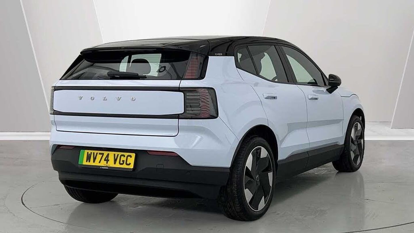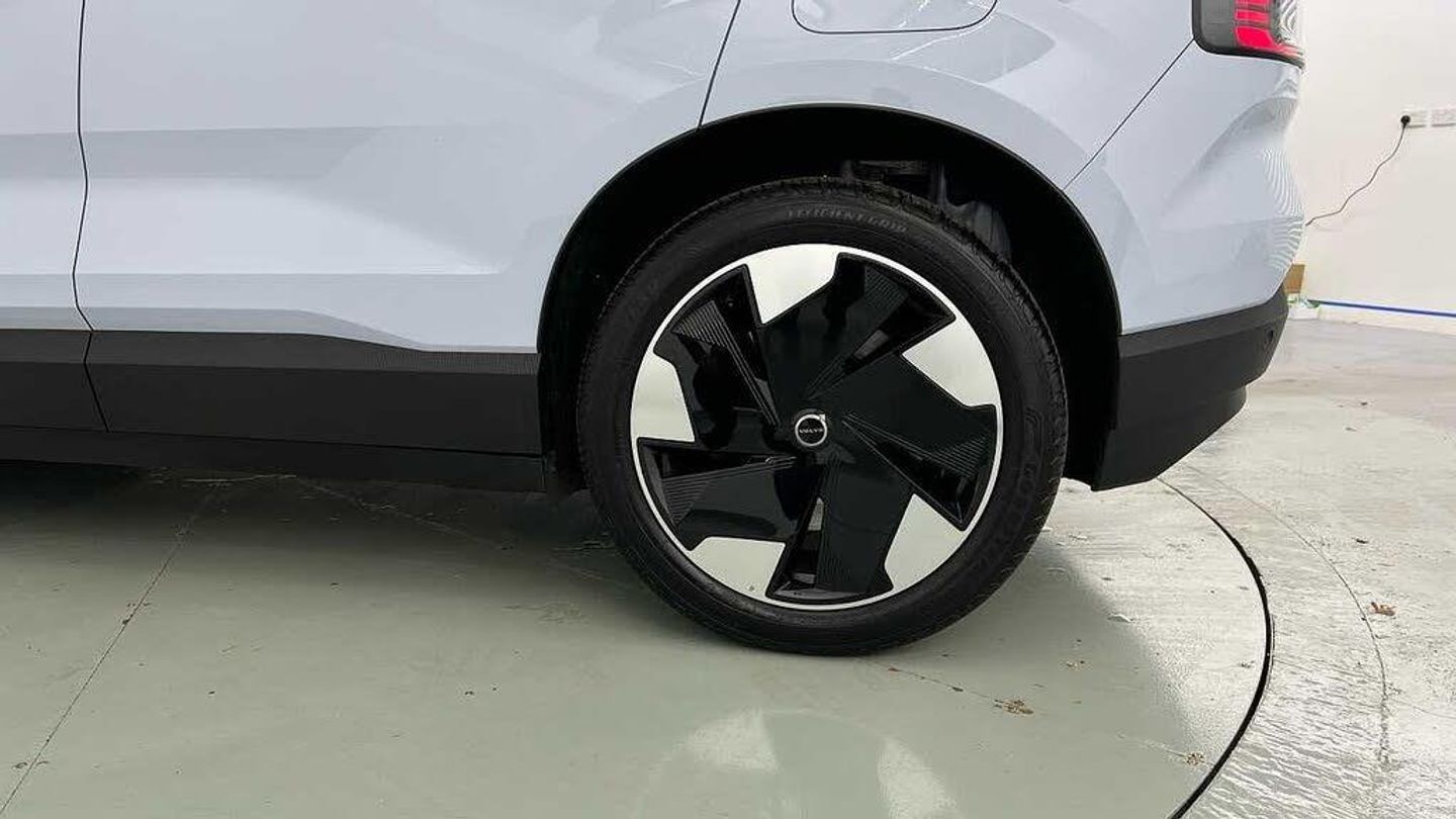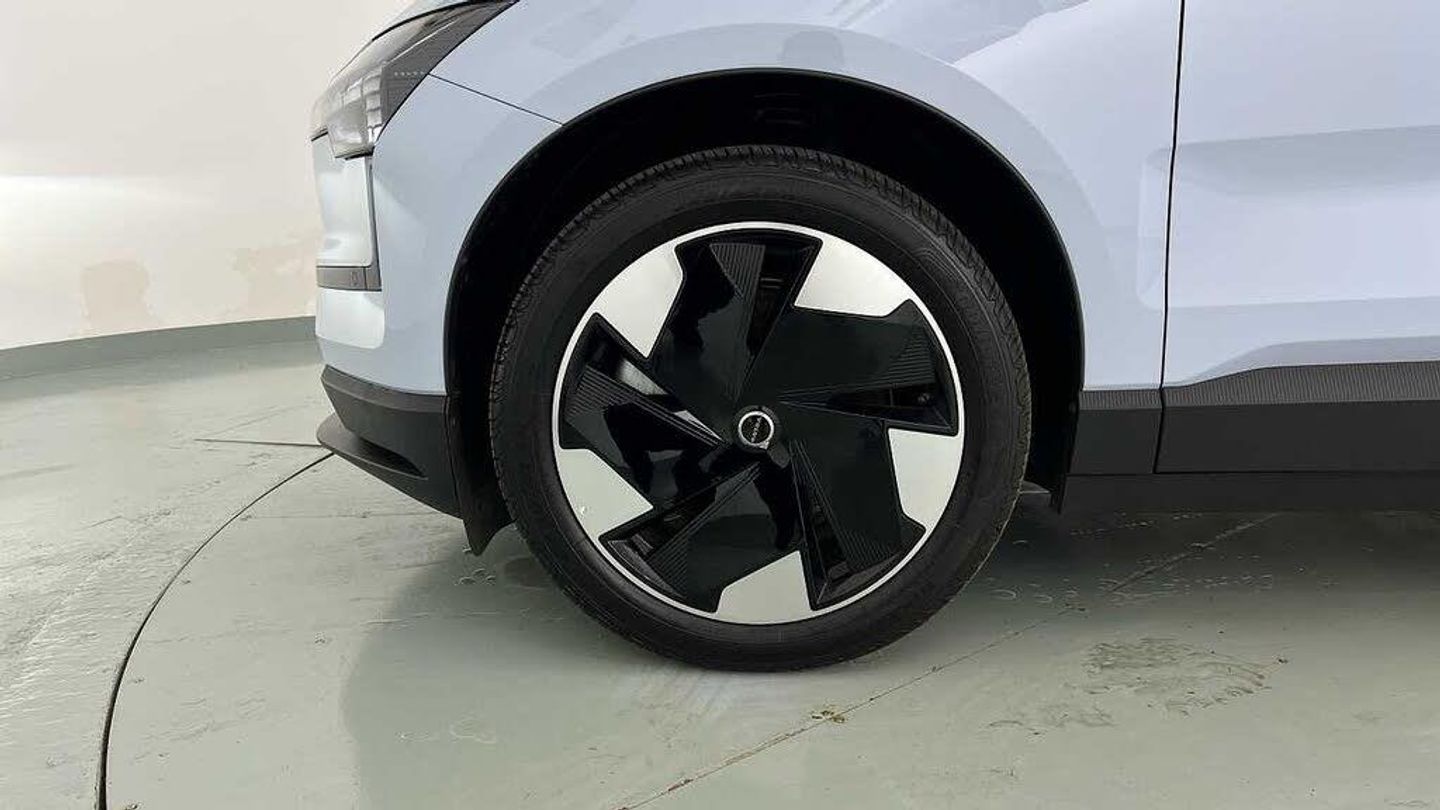 Heated front seats and steering wheel, Driver airbag, Side impact protection, Child safety lock, 11kw On-Board Charger (OBC), Hill Start Assist, Manually adjustable driver seat, First-aid kit, Textile & Nordico upholstery, Lane Departure Warning, Alarm, Cabin filter, Alcohol lock software (not available in the UK), Door mirrors with ground lighting, ISOFIX child seat attachment, Fixed lumbar support, LED illumination. load compartment, Post impact braking, Heated steering wheel, One pedal drive, Key tag, Run-off Road Mitigation, Front Cross Traffic Alert, 19 5-spoke glossy black diamond cut, Warning triangle, Direct occupant sensing, Seat track position sensors. driver and passenger, Rear Collision Warning, Interior illumination. high level, Roof spoiler. high-gloss black, Roof top in contrast colour. high-gloss black, Ambience themes, LED headlights, Speed limiter, Adaptive cruise control, Lane Keeping Aid, Heat pump, Digital Audio Broadcasting (DAB+), Dual-stage airbags. passenger, Door opening alert, Vanity mirrors, All-wheel Drive (AWD), Rear Cross Traffic Alert with Autobrake, Summer tyres, Hill Descent Control, 12.3-inch centre display, Road Sign Information, Wireless phone charging, Shift-by-wire single speed transmission, Pilot Assist, Denim decor, LED headlights with active high beam, Lane change assist, Park assist. front and rear, Heated front seats, Two-zone climate system, Power outlet. load compartment, Sliding cupholders and storage, Digital key plus, Air quality measurement and remote cabin air pre-cleaning, 5G capability, Driver alert system, Rear LED lights, Wireless Apple CarPlay, Double lock, Auto-dimmed inner and door mirrors, Door mirror covers. high-gloss black, Temporary mobility kit, Air quality system, Park assist camera. rear, Traffic Jam Assist, Collision avoidance and mitigation, Manually adjustable passenger seat, Front and rear USB-C ports, Power tailgate, Passenger airbag cut-off switch, Fog lamps. rear, Harman Kardon Premium Sound, Air vent decor. blue, 5 seats, Rear phone storage, Front storage, Front load compartment, Comfort chassis, Advanced sensing technology, Intersection autobrake, Tailored sports steering wheel, Oncoming Mitigation by Braking, Inflatable Curtain, Textile interior cabin floor mats, Large door pockets, NFC smart card key, Volvo EX30 App, Pedestrian and cyclist steering avoidance, Blind Spot Information System (BLIS), Oncoming Lane Mitigation, Whiplash injury protection, Over-the-air updates (OTA), Google Assistant. Google Maps and Google Play Store - included for 4 years, Charging station cable. 5m (22kW), Removable rear storage box, Rain sensor, Flexible load floor