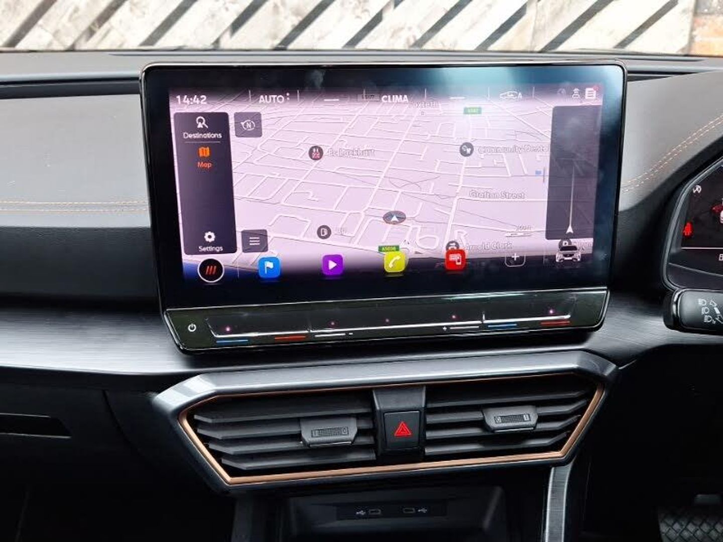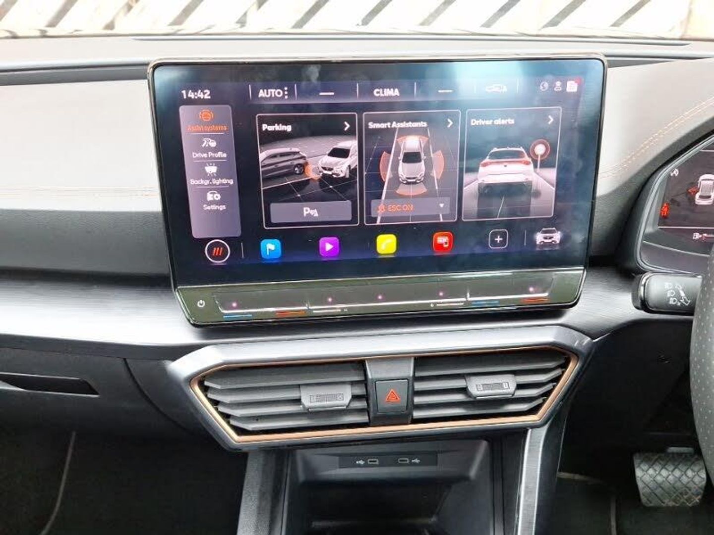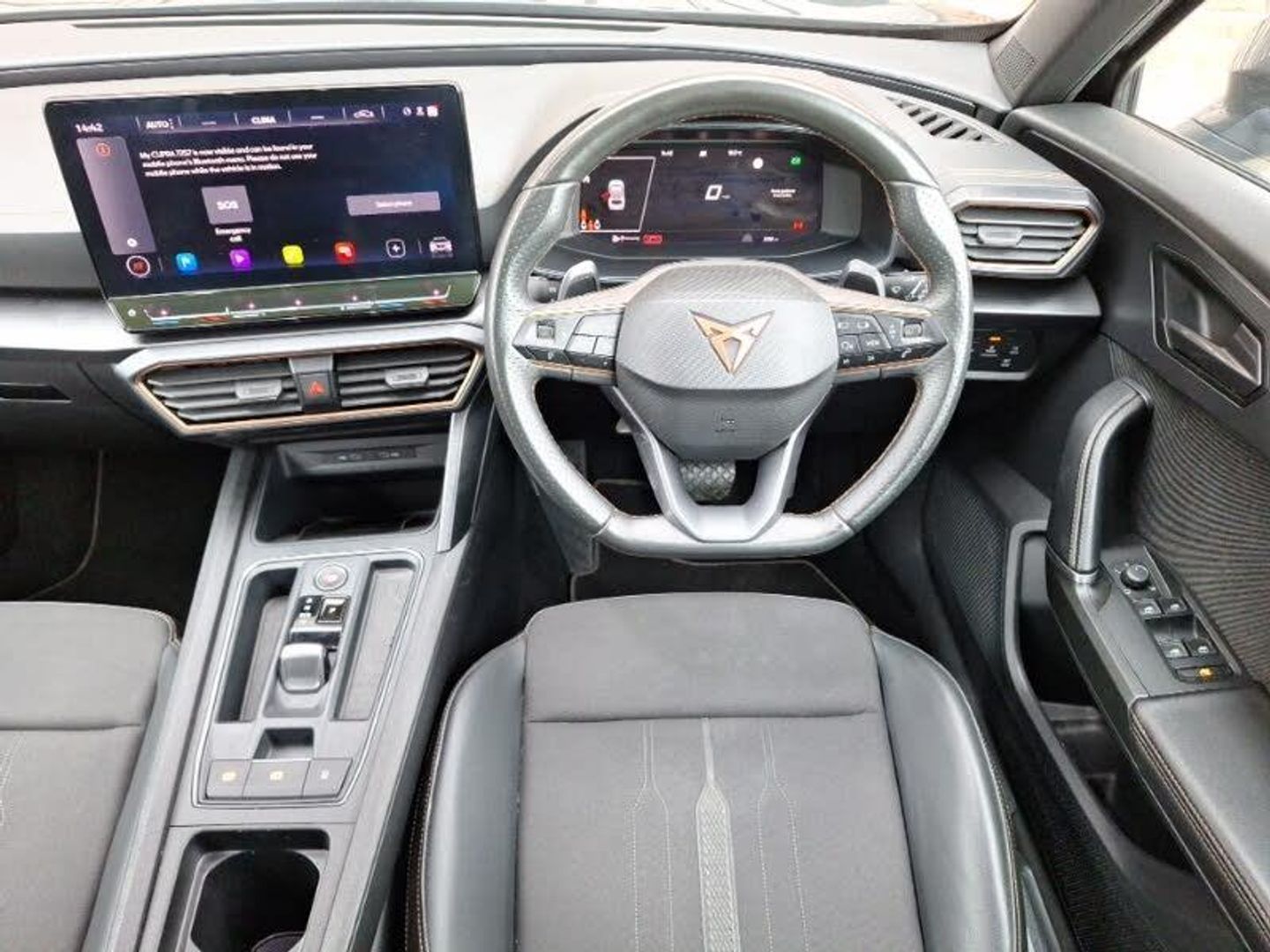 Adaptive cruise control, Apple CarPlay, Heated steering wheel, LED Headlights, Rear parking sensor, Steering wheel audio controls, Lane assist, Forward collision warning with automatic braking, Driving profile selection, Driver alert system, Digital cockpit and configurable dashboard, Rear parking sensors, RPM, trip computer, outside temp gauge, instrument light brightness, low fuel warning light, lights on reminder, gearshift indicator, Start/stop system with regenerative braking, Wireless phone charger, Wireless apple carplay, Standard suspension, Electronic locking differential and dynamic traction support, DAB radio, Auxiliary input socket, Tinted rear windows, LED Taillights with dynamic indicator, LED Headlights, Gloss black roof rails and window surrounds, Daytime running light with automatic headlight control and coming home feature, Front centre armrest, Height/reach adjust steering wheel, 60/40 split rear bench seat with armrest and mechanical seat release, 2 front and 2 rear reading lights, Isofix, Navigation system pack with 10" navigation system - Formentor, Safety and driving pack (M) - Formentor, Driver and front passenger airbags with front passenger airbag de-activation, Child proof door locks, Brake control system - ESC and brake booster, Hill hold control, Front side curtain airbags, Anti theft alarm system, Keyless entry and start system (KESSY), Copper and aluminium interior detailing