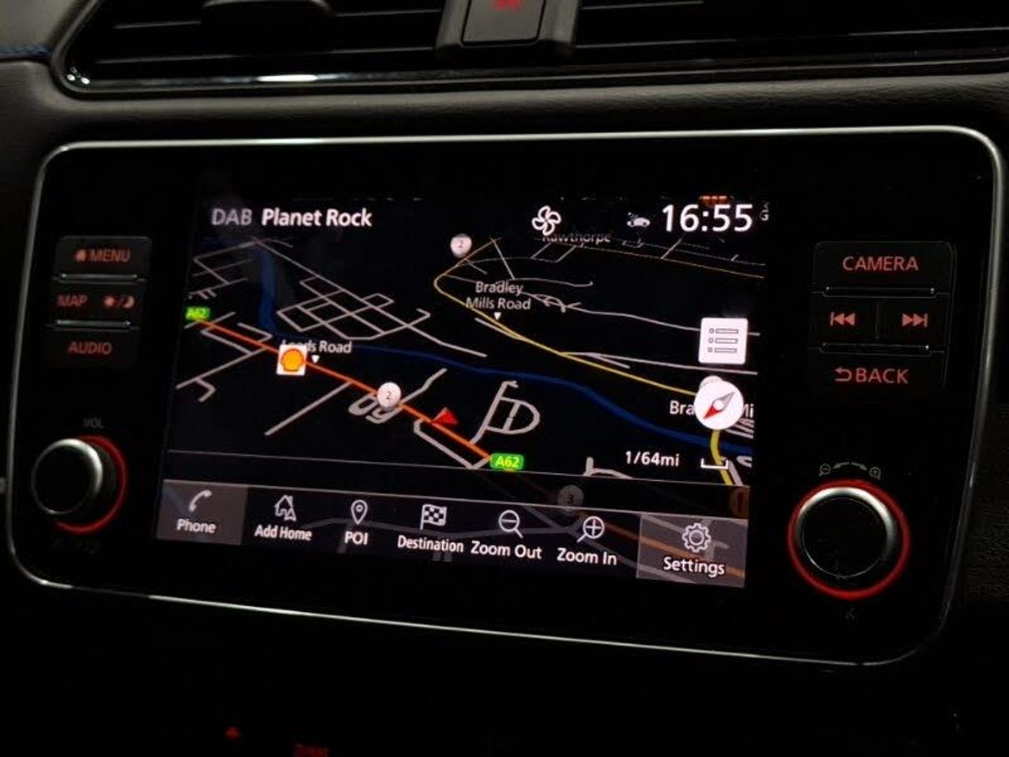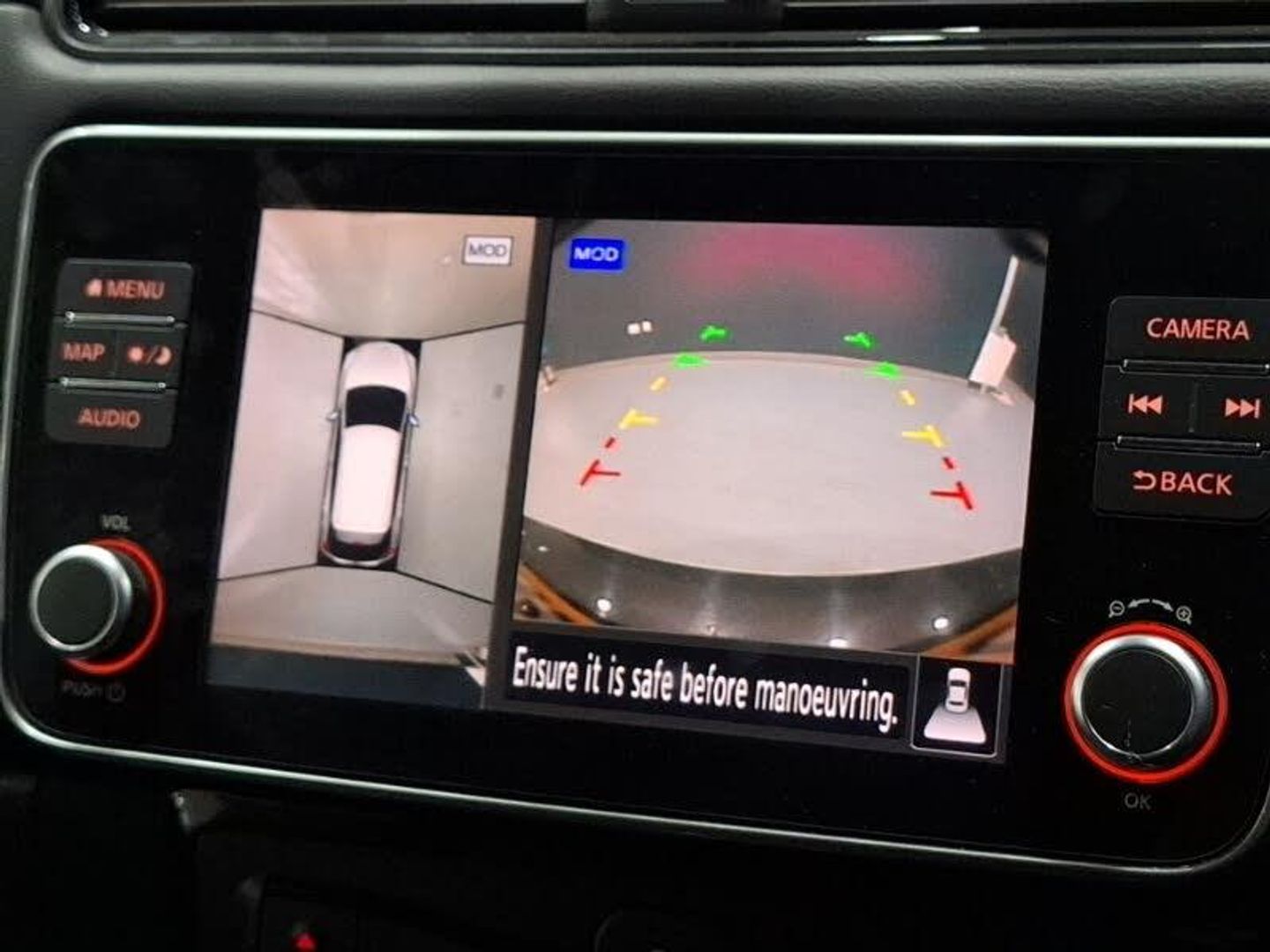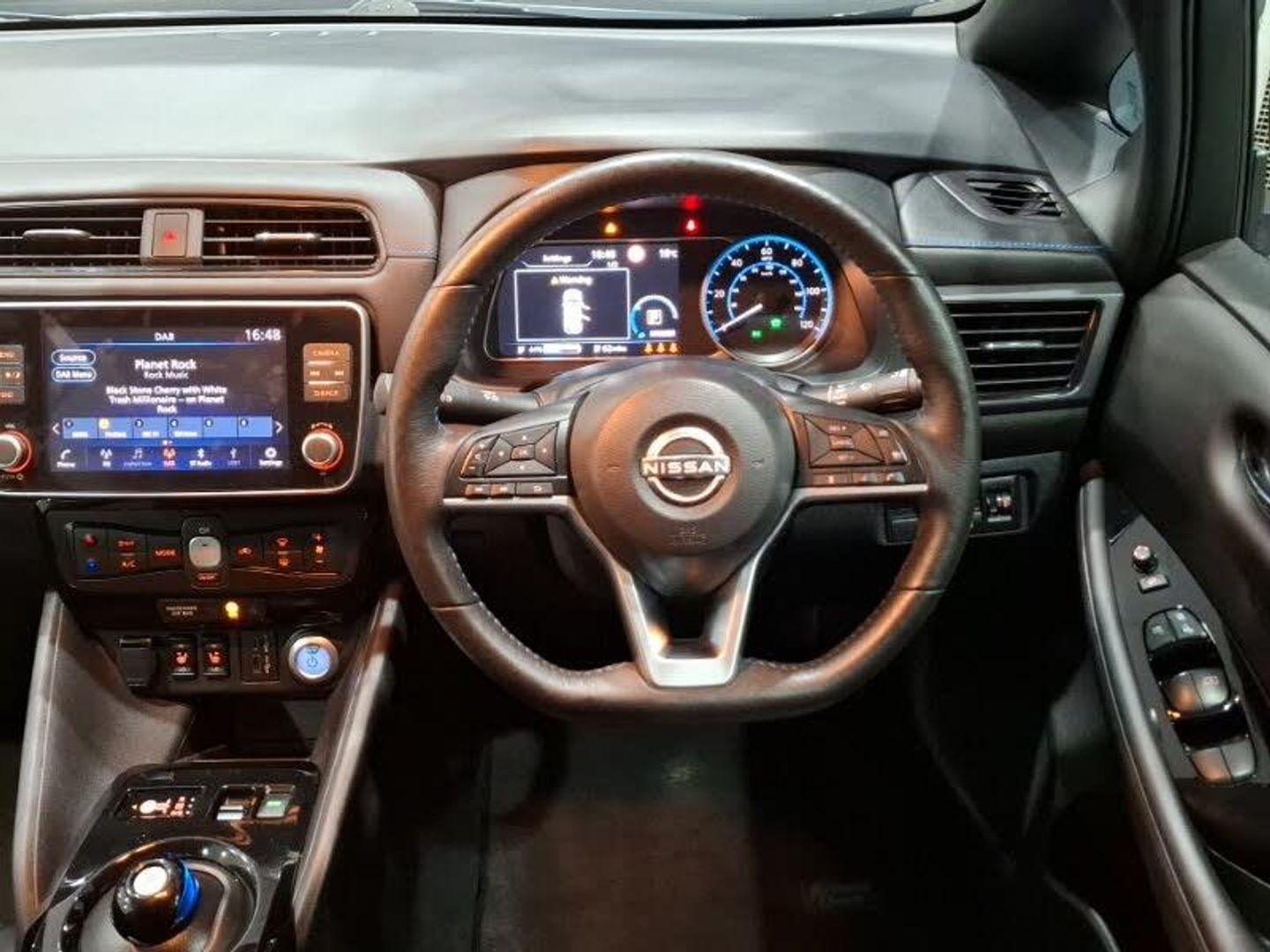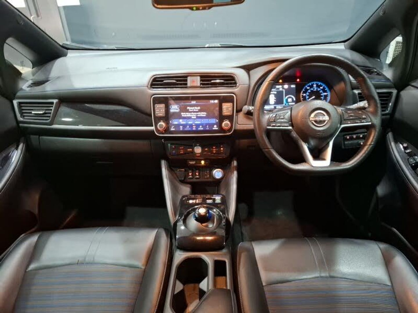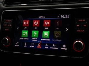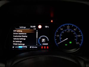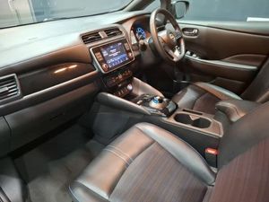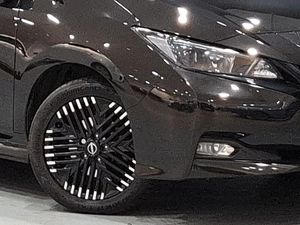 360 degree colour camera view, 8" colour display with touchscreen, 7" full colour TFT screen combimeter, Apple car play/Android Auto, Blind spot intervention, Blind spot warning, Front and rear parking sensors, Intelligent around view monitor, Intelligent Cruise control (ICC), Intelligent driver alert system, Intelligent lane intervention, Lane departure warning system, Nissan connect services app (air conditioning control, cabin heating and charging), Navigation system with voice control, Rear cross traffic alert, Charging port remote opening, Mac Pherson strut front suspension and twist beam axle rear suspension, Bluetooth with audio streaming, Automatic rain sensing wipers, LED third brake light, LED signature daytime running lights with directional indicator, LED signature rear lights, Intelligent auto headlights, High beam assist, Isofix child seat anchor points, Automatic climate control with pollen filter and timer, Heat pack with Heated front seats - Leaf, Hill start assist, Intelligent ride control, Intelligent trace control, Intelligent Key with push button starter, 17" Diamond cut black alloy wheels