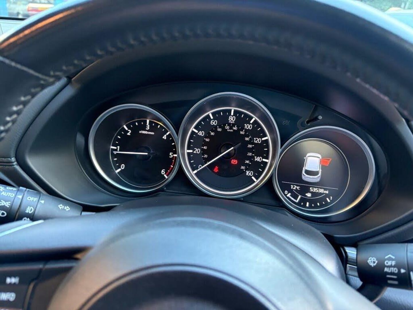19in Alloy Wheels - Metallic, 7in Colour Touch Screen Display, ABS - Anti Lock Braking System, Advanced Blind Spot Monitoring with Rear Cross Traffic Alert, Advanced Smart City Brake Support, Air Conditioning - Dual Zone Climate Control, Auto Dimming Rear View Mirror, Auto Door Locking, AUX and USB Input, Bumpers - Body Coloured, Dome Interior Courtesy Light with Integrated Spotlight, Door Mirrors - Electrically Adjustable - Heated - Power Folding with Integrated Indicator Lights, Door Pockets - Driver - Front Passenger and Rear, Dual Front Airbags, Dusk Sensing Automatic Headlights, Dynamic Stability Control with Traction Control System, Electric Windows - Front and Rear with One-Touch Auto Down - Up, Electronic Parking Brake with Auto-Disengage Function, Emergency Tyre Repair Kit, Engine Start-Stop Button, Front and Rear Curtain Airbags, Front and Rear Parking Distance Sensors, Front Centre Console with Storage Box, Front Fog Lights - LED, Front Passenger Airbag Cut-Off Switch, Front Side Airbags, Front Wiper De-Icer, Gear Shift - Leather-Wrapped, Glovebox Illumination, Grab Handles - Front Passenger and Two Rear with Coat Hooks, Head Restraints - Rear x3, Headlights - Adaptive Front Lighting System, Headlights - Coming-Leaving Home, Headlights - LED with Auto Headlight Levelling, Heated Front Seats with 3-Stage Settings, High Beam Control, Hill Hold Assist, i-Stop Status, Integrated Bluetooth, ISOFIX Child Seat Anchorage for Outer Rear Seats, Karakuri Tonneau Cover, Lane Keep Assist with Lane Departure Warning System, Leather - Black, LED Daytime Running Lights, Luggage Compartment - Light, Luggage Compartment - Power Outlet, Machine Grey, Mazda Navigation System - European Mapping with Alternative Route Calculations - Point of Interest Search and 3-Years Free Map Updates, Mazda Radar Cruise Control, Meter Set Display - Window Projection Colour Active Driving Display with Traffic Sign Recognition - Colour Head-Up Display - Shows Vehicle Speed - Warnings and Turn-by-Turn Navigation, Multimedia Commander, Power Assisted Steering - Electronic, Power Liftgate, Premium BOSE Centrepoint Surround Sound System, Privacy Glass - Rear and Rear Side Windows, Rain-Sensing Front Wipers, Rear Air Vents, Rear Seats - Centre Armrest with Two Cupholders, Rear Seats - Manual Recline Adjustment, Remote Central Locking with Deadlocking, Reversing Camera, SCR - Secondary Collision Reduction, Seat - 40-20-40 Karakuri Fold Flat Rear, Seatback Pocket - Driver and Front Passenger, Seatbelt Reminder for Front and Rear, Seatbelts - Front - 3 Point - ELR x 2 with Pre-Tensioners, Seatbelts - Rear - 3-Point - ELR, Seats - Drivers Power Lumbar Adjustment, Seats - Drivers Power Slide-Recline and Height Adjustment with Memory Function linked to Smart Key, Seats - Passengers Power Slide-Recline and Height Adjustment, Shark Fin Antenna, Smart Brake Support with Forward Obstruction Warning, Smart Remote Keyless Entry System, Spoiler - Rear Roof Body Coloured, Steering Wheel - Heated, Steering Wheel - Leather Wrapped, Steering Wheel - Mounted Audio and Bluetooth Controls, Steering Wheel - Tilt and Height Adjustment, Storage Spaces - Inside Front Centre Armrest, Sunvisors - Drivers and Passengers with Covered Vanity Mirror-Ticket Holder-Illumination, Thatcham Category 1 Alarm and Immobiliser, Trip Computer, Two Cup Holders Between Driver and Passenger Seat, USB - iPod Connectivity, Wipers - Rear Adjustable Speed with Intermittent