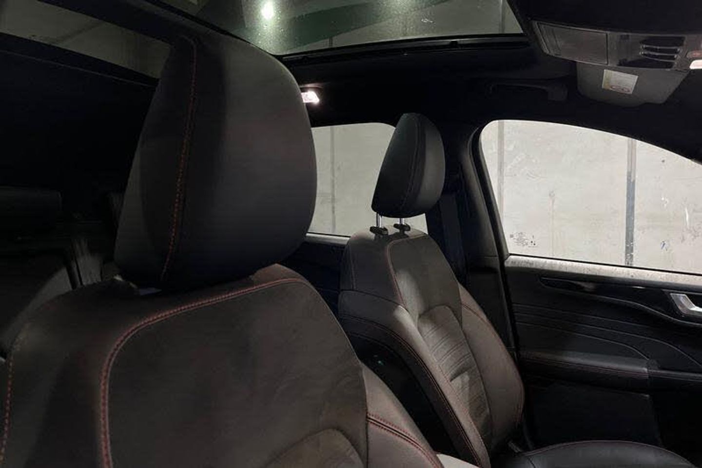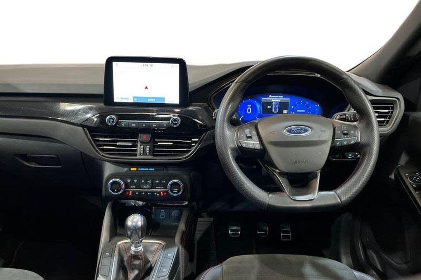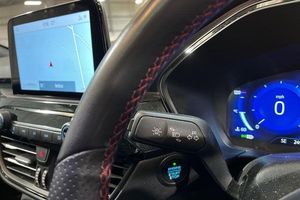 12.3 digital colour instrument cluster, Ford easy fuel, Ford SYNC 3 with 8 TFT LCD touchscreen, App Link, andriod auto/apple carPlay, emergency assistance and navigation with Ford pass connect, Front and rear parking sensors, Hands free power tailgate, Lane keeping aid with lane departure warning, Power assist steering, Rear view camera, Selectable drive modes, Service interval indicator, Auto headlamps with high and low beam, Black roof rails, Body colour bumpers, Day/night rear view mirror, Front LED fog lamps, Large rear roof spoiler, LED daytime running lights, LED rear lights, Power folding, electrically adjustable and heated door mirrors with puddle lights, Power front/rear windows with global close, Power opening panoramic roof, Quickclear heated windscreen, Rain sensing wipers, Rear privacy glass, Rear side wing doors, Rear wiper, ST Line body styling kit with unique front and rear fascia and bumper, rear painted diffuser, front painted skid plates, dark mesh upper grille, ST Line front scuff plates, Third brake light, Twin exhausts, 2nd row sliding seats with 60:40 split, Alloy pedals, Centre console with electronic parking brake, Dark headlining and pillars, Electronic automatic temperature control (EATC), Flat bottomed leather steering wheel in sensico with red stitching, Front and rear head restraints, Heated passenger and driver seats, Heated rear seats, Heated steering wheel, Partial premium touch Sensico with black cloth inserts and red stitching, Rear centre head restraint, Single front passenger seat, Sports seats, ST Line front and rear floor mats, ST Line gear knob, 3x3 point rear seatbelts, Airbags - front driver/passenger, front and rear curtain, Drivers knee airbag, Electronic stability control (ESC) and ABS, Ford MyKey Gen 2 safety system, Manual child proof rear door locks, Post collision braking, Pre collision assist with autonomous emergency braking, Rear seat Occupancy alert, Red brake calipers, Tyre pressure monitoring system