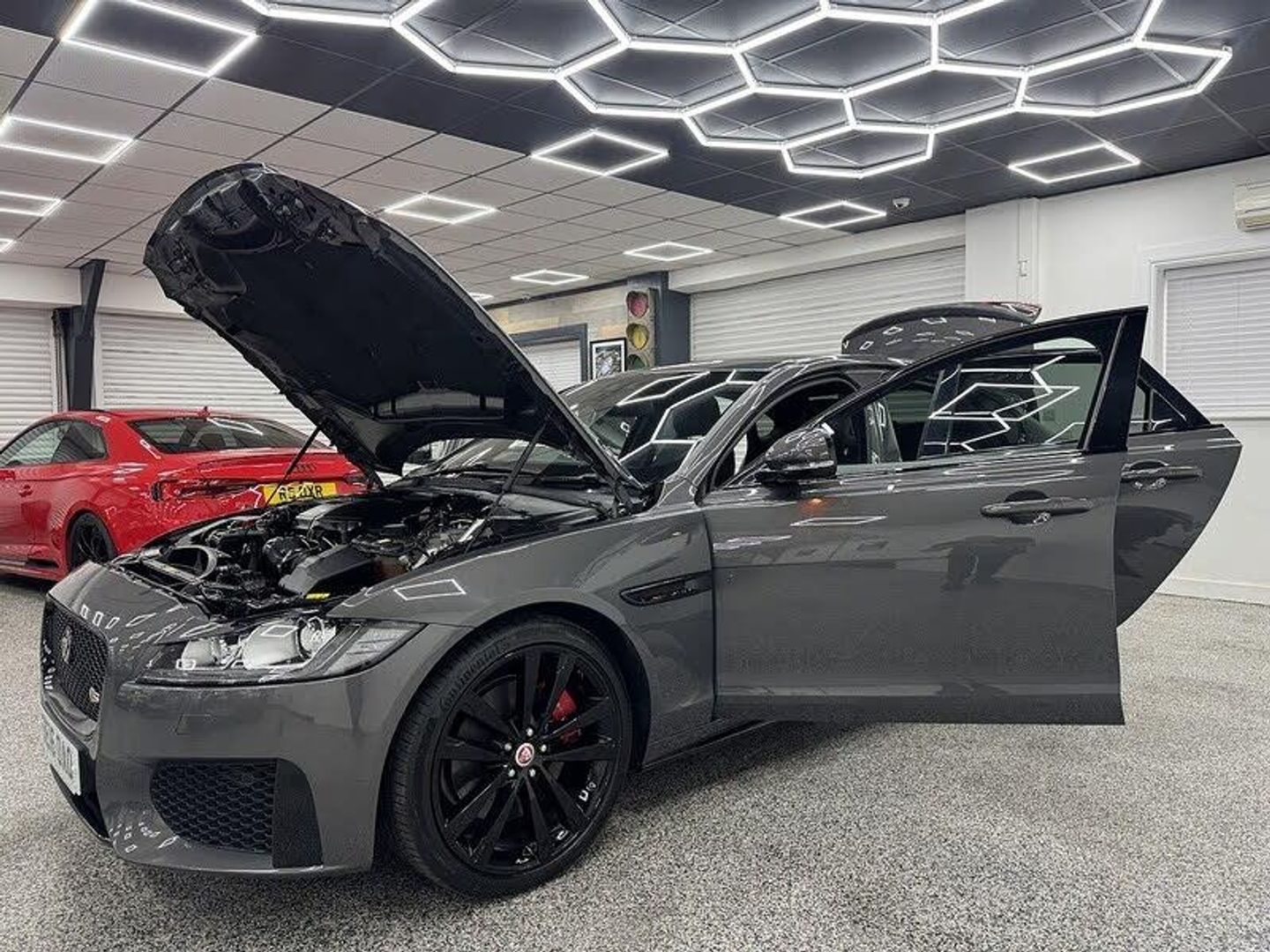 Privacy Glass,Black Pack,Heated Steering Wheel,Steering Column - Electrically Adjustable,Heated Front and Rear Seats,14x14 Way Seat Memory Pack with Powerfold Mirrors,20in Alloy Wheels - Venom 5 Twin-Spoke with Gloss Black Finish,Electric Tilt-Slide Sunroof,InControl Touch Pro Pack with Meridian Digital Sound System - 380w, 12V Power Sockets, 1x USB Socket, 8in Capacitive Touchscreen, AM-FM Radio, Analogue Dials with 5in Full Colour TFT Display, Audio AUX In, Bluetooth Streaming, Bluetooth Telephone Connectivity, Digital Audio Broadcast - DAB - Radio, Dynamic Volume Control, InControl Apps, InControl Protect, InControl Remote Premium, InControl Touch Navigation - SD, InControl WiFi, iPod Integration, Meridian Sound System - 380W, Start Up Sequence, Brake Pad Wear Indicator, Cruise Control with Adaptive Speed Limiter, ECO HMI, Front Parking Aid, JaguarDrive Control, Lane Departure Warning, Outside Temperature Gauge, Rear Parking Aid, Rear View Camera, Traffic Sign Recognition with Adaptive Speed Limiter, Tyre Pressure Monitoring System, 19in Alloy Wheels - Razor 7 Twin-Spoke with Silver Finish, Acoustic Layer Windshield, Auto-Dimming - Power Fold - Heated Door Mirrors with Approach Lights, Bootlid Jaguar Leaper and Wordmarque, Bootlid Nameplate Badge, Dual Tailpipes with 84mm Finishers, Electric Windows, Gloss Black Radiator Grille with Satin Chrome Surround, Gloss Black Side Window Surround, Heat Insulating Glass - Green All-round, Heated Front Windscreen, Heated Rear Screen, Jaguar Tyre Repair System, Locking Wheel Nuts, Red Brake Calipers, S Body Kit, Approach Illumination, Automatic Headlight On, Bi-function Xenon Headlights with LED J Blade Daytime Running Lights, Headlight Power Wash, Partial LED Rear Lights, 10-Way Electric Front Seats, 2-Zone Climate Control, 3 Rear Headrests, 3-Flash Lane Change Indicators, 40-20-40 Split Fold Rear Seat, 4-Way Electric Lumbar Adjust, Auto-Dimming Interior Rear View Mirror, Bright Sport Pedals, Dark Hex Aluminium Instrument Panel Finisher, Driver and Front Passenger Sun Visors with Illuminated Vanity Mirrors, Front Armrest with Storage Compartment, Front Deployable Vents, Gear Shift Change Paddles, Glove Compartment Lockable, Heated Front Seats, Interior Mood Lighting, Jaguar Smart Key System - Keyless Start - Start-Stop Button, JaguarSense - Overhead Light Console, Jet Headlining, Loadbay - Luggage Tie Downs, Metal Treadplates with S Branding, Morzine Headlining, Passive Front Head Restraints - Whiplash Protection, Pollen Filter, Premium Carpet Mats, Rain Sensing Windscreen Wipers, Rear Armrest with Twin Cupholders, Row 2 Air Vents, S Branded Multi-Function Softgrain Leather Steering Wheel, Shopping Bag Hook in Trunk, Storage Compartment in the Doors - Front, Storage Compartment in the Doors - Rear, Sunglasses Holder in Overhead Console, Taurus Grain Wrapped Instrument Panel Topper, Twin Front Cupholders, Twin Rear Cupholders, Variable Intermittent Wipers, Adaptive Dynamics, Speed Proportional Steering, Torque Vectoring by Braking - TVBB, 350mm Brakes, ABS - Anti-locking Braking System, AEB - Autonomous Emergency Braking, Airbags - Driver and Front Passenger with Seat Occupant Detector for Passenger, Airbags - Front Side, Airbags - Full Length Side Window Curtain, ASPC - All Surface Progress Control, Dynamic Stability Control and Traction Control, EBA - Emergency Brake Assist, EPB - Electric Parking Brake, Hazard Lights Under Heavy Braking, Hill Launch Assist, ISOFIX Rear, Jaguar Smart Key System with Keyless Entry and Push Button Start, Pedestrian Contact Sensing, Perimeter Sensing Alarm and Immobiliser, Power Operated Child Locks, Remote Control Central Locking with Dead Locking and Drive-Away Locking, Seat Belt Reminder, Trailer Stability Control