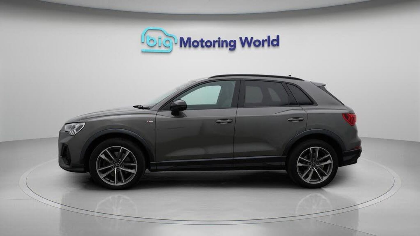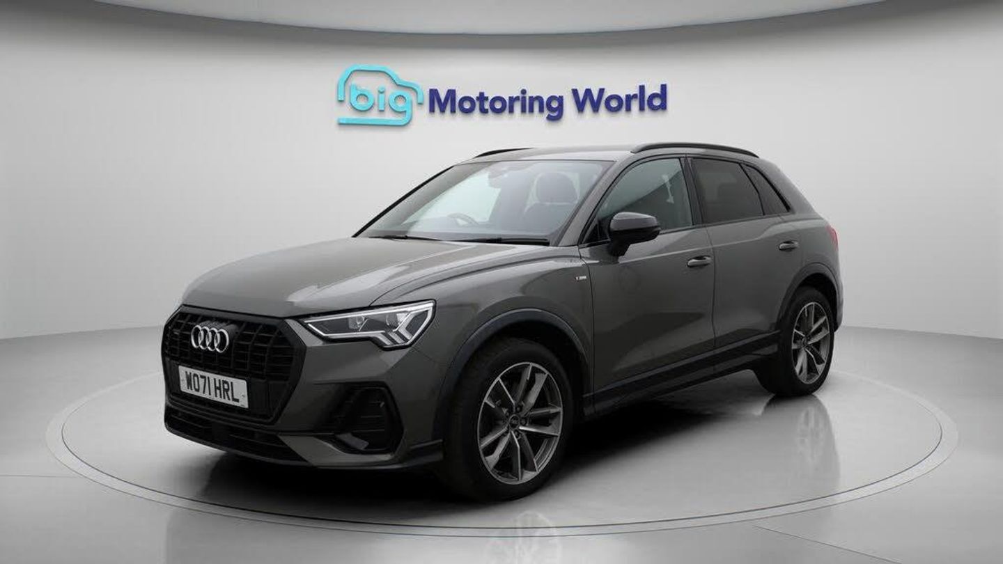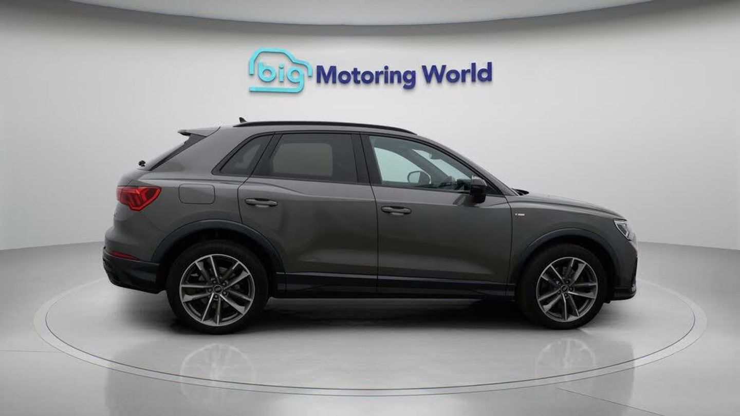 All Wheel Drive,19'' Alloy whee-Our Audi Q3 comes with optional extras worth £575. Specification includes a range of fantastic features including All Wheel Drive, 19'' Alloy wheels, Part Leather Seats, Adaptive Cruise Control, Apple CarPlay, Premium Sound System, S Line Body Styling, Android Auto, Satellite Navigation, Privacy Glass Specification information is supplied by CAPHPI and may vary to the actual car. This data does not form any part of a buying contact. Please check specification prior to purchase in-store. The MOT is valid until September 2026, visit bigmotoringworld.co.uk for more photos, a 360 tour, service history and a free HPI report.Were BIG on peace of mind and this Grey Audi Q3 has completed our comprehensive 200 point inspection and passed all checks. Its ready for you to drive away with immediate collection in-store. We include a 90-day warranty as standard plus an option to extend for up to 3 years.Reserve this car exclusively for you, safely and securely at bigmotoringworld.co.uk, with a fully refundable £99 deposit. Test drive before you buy, with no commitment, no hassle and a completely haggle free experience. Still searching and want to see thousands more cars? We are BIG on choice with over 8000 cars to choose from.Visit our award winning web site bigmotoringworld.co.uk.Were Big Motoring World and were BIG on what matters to you.