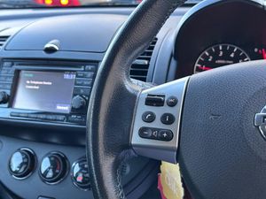 16in Alloy Wheels - Two Tone, 2-Coat High Gloss Black Front Grille, 9-Litre Glovebox, ABS - Anti Lock Brakes, Air Conditioning - Automatic, Airbag - Driver, Airbag - Front Passenger, Airbags - Curtain, Airbags - Side, Armrest - Driver, Armrest - Rear, Auto Rain Sensing Wipers, Automatic Headlights, Black Door Handles and Mirrors, Black Side Moulding, Body Coloured Side Mouldings, Body-Coloured Door Handles, Brake Assist, Bumpers - Body Coloured, CD Radio with 6 Speakers, Central Locking with Superlocks, Centre Console Storage Areas, Child-Proof Door Locks, Chrome Fog Light Finishers, Combimeter with Chrome Dial Rings, Cruise Control, Digital Trip Meter, Door Mirrors - Silver Painted, Driver Seat Height Adjustment, Driver Side Arm Rest, EBD - Electronic Brakeforce Distribution, ESP - Electronic Stability Programme, Electric Heated Mirrors, Electric Speed-Sensitive Power Steering, Flexi-Board Boot Storage System, Friendly Lighting System with Battery Save, Front Cabin and Luggage Compartment Lights, Front Electric Windows, Front Fog Lights, Front Passenger Seatback Pockets, Front Seat Storage Pockets, Halogen Headlamps, Head Restraints - 3 Rear, Headlight Leveller, ISOFIX Child Seat Anchoring Points, Immobiliser, Integrated Drive Computer, Leather Steering Wheel, MP3 Auxiliary Input, Nissan Connect - with Piano Black Suround, Passenger Airbag Cut-Off Switch, Pollen Filter, Rear Cabin Light, Rear Electric Windows, Rear Parking Sensors, Rear Privacy Glass, Remote Keyless Entry with Anti-Hijack Feature, Secret Storage Tray under Front Passenger Seat, Steering Wheel - Controls for Stereo and Drive Computer, Tachometer, Tailgate Wiper, Tilt Adjustable Steering Wheel, USB Auxiliary Input