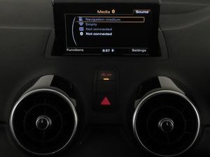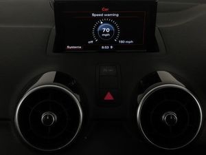 SD card based satellite navigation system, Mobile telephone preparation - bluetooth interface, Bluetooth audio streaming, Voice control system, DAB Digital radio, Audi music interface, Additional SD card reader, Acoustic parking system - rear, Xenon plus headlights including automatic headlights, LED daytime running lights, LED rear lights, dynamic range control and headlight washers, Audi drive select, Electronic climate control (ECC), Alcantara/leather upholstery, Cruise control, Tyre pressure monitor, S Line body styling, High-gloss black styling pack - A1