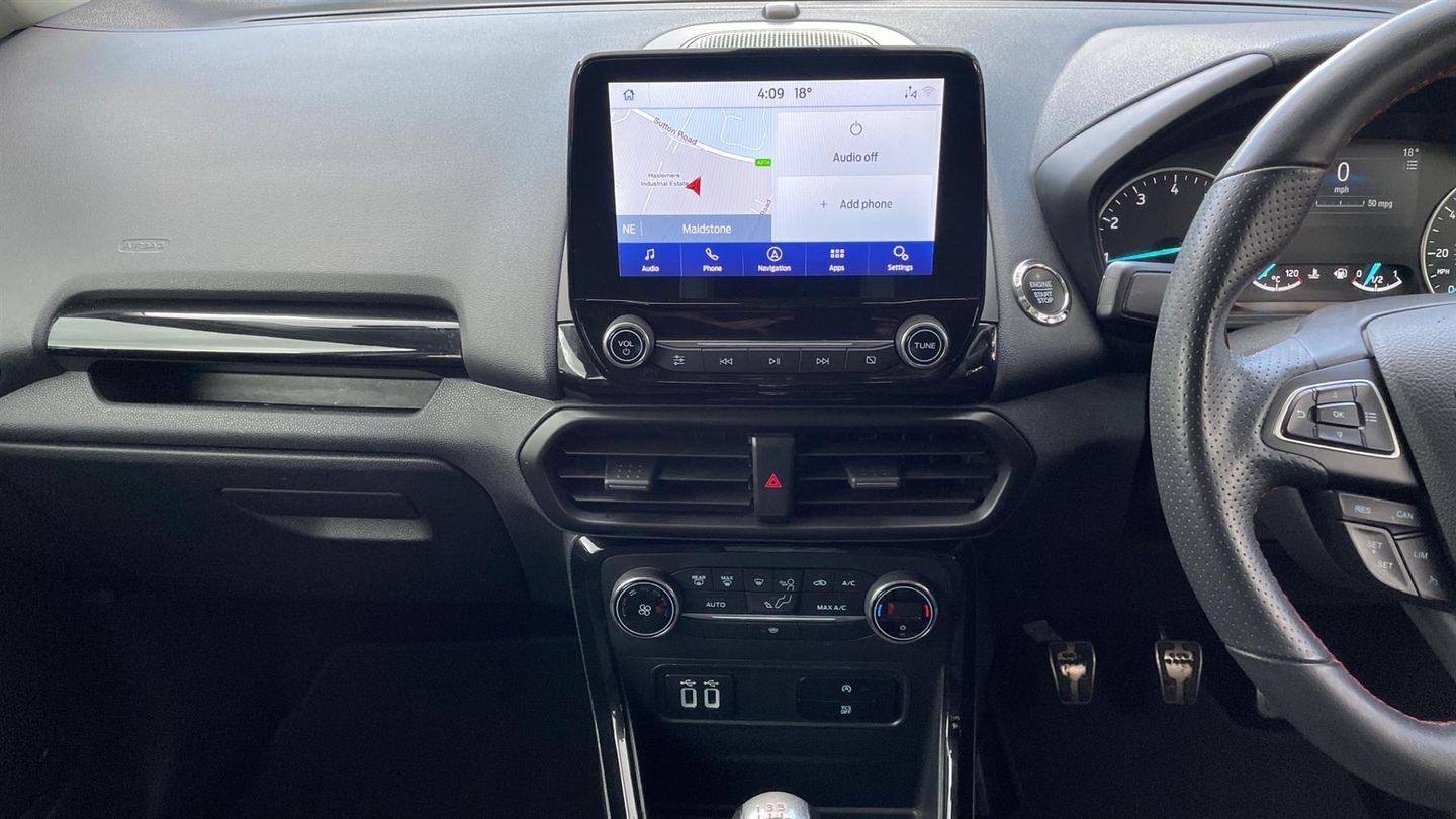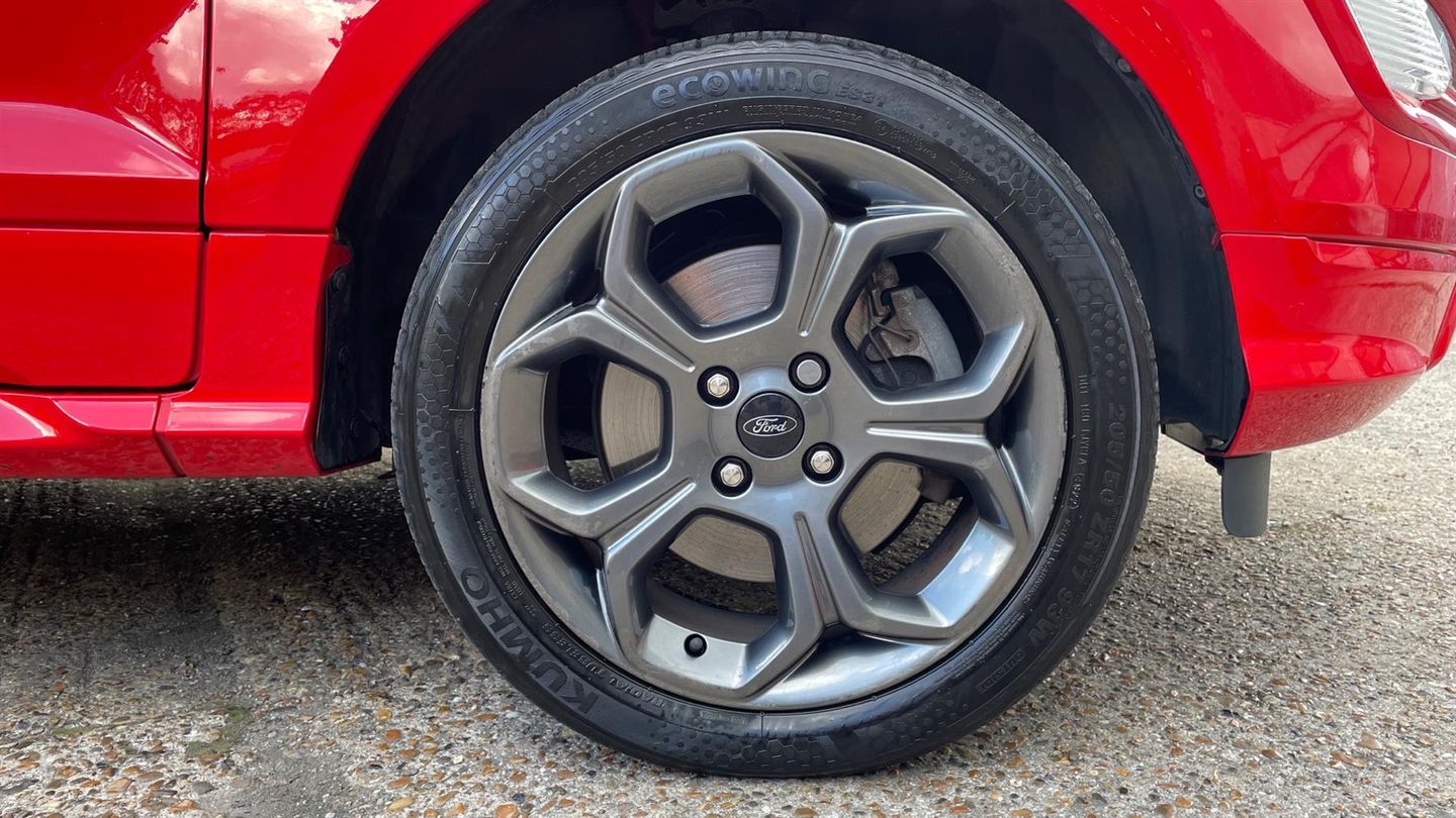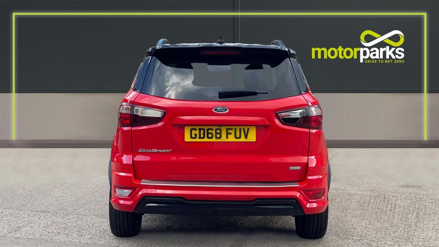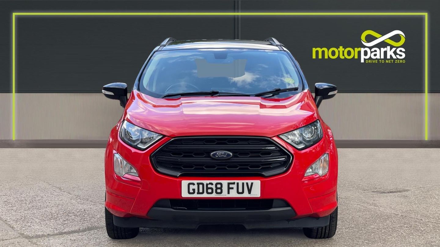 A stylish EcoSport ST-Line finished in Race Red with contrast Black roof. Discover the Ford EcoSport 1.0 EcoBoost ST-Linewhere style meets substance. This versatile 5-door SUV is equipped with state-of-the-art navigation and a reverse camera, ensuring you never miss a turn or a parking spot. Rear parking sensors add precision to your maneuvers. Enjoy the ease of cruise control on open roads and the convenience of rain-sensing wipers when the weather turns. Tune into your favorite stations with a crisp DAB radio, while climate control keeps you comfortable year-round. Designed for the modern explorer, the EcoSport ST-Line combines performance, style, and technology to elevate every journey. Drive one today..