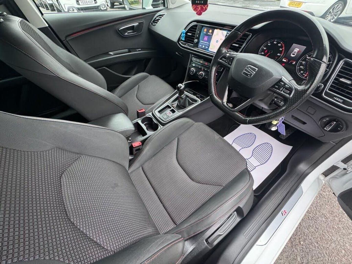 12V Power Supply in Centre Console, 17in Alloy Wheels - Dynamic 30-2, 7 Airbags, ABS and Traction Control System - TCS - Electronic Stability Control - ESC - and Electronic Differential Lock System - XDS, Alarm - Volumetric, Body-Coloured Door Handles, Body-Coloured Door Mirrors with Integrated LED Indicators, Boot Storage Net, Bumpers - Exclusive FR Front and Rear, Cargo Rings in the Boot, Convenience Pack Plus, Cruise Control, Dark Tinted Rear Windows, Digital Clock, Driver and Passenger Seat Height Adjustment, Driver and Passenger Sunvisor with Covered and Illuminated Mirrors, Drivers Seat Lumbar Adjustment, Dual Zone Climate Control, ESC - Electronic Stability Control and Tyre Pressure Warning Light Indicator, Electric Parking Brake Including Autohold Function, Electrically Adjustable and Heated Door Mirrors, Electrically Foldable Exterior Mirrors with Parking Position and Passenger-Side Mirror with Lowering, Electro-Mechanical Power Steering, Electronic Differential Lock System - XDS, Emergency Tyre Repair Kit, Front Assist with Pedestrian Protection, Front Seat Back Storage Pockets, Front Sports Seats, Front and Rear Electric Windows, Front and Rear Parking Sensors, Full LED Headlights, Gearshift Indicator, High Centre Console, High Gloss Black B and C Pillars, Hill Hold Control, ISOFIX Points in Outer Rear Seats with Top Tether Anchorage Points, Illuminated Aluminium Front Door Sill Trims with FR Logo, Instrument Lighting with Brightness Control, Interior Chrome Detailing, Interior FR Black - Black Glossy, LED Interior Illumination Pack, Lights Left On Warning Buzzer, Low Fuel Warning Light, Lower Suspension - 15mm, Multi Coloured Ambient Lighting, Multi-Collision Braking System, Navigation System, Outside Temperature Gauge, RPM Counter, Radiator Grille Frame in Chrome, Radiator Grille in Black, Remote Central Locking with Deadlocks, SEAT Drive Profile, SEAT Full Link Smartphone Integration - Mirror Link - Apple CarPlay - Google Android Auto, Seatbelt Reminder - Front, Seats - Passenger Lumbar Adjustment, Split Folding Rear Seats - 60-40, Sports Suspension, Steering Wheel - Flat-Bottomed Perforated Leather with Red Stitching and FR Logo, Storage Box Under Drivers Seat, Trip Computer, Two Folding Keys with Window Open-Close - Door and Boot Opening Functionality, Two Height-Adjustable Front and Rear Headrests, Two Remote Keys with Window Open-Close - Door Mirror Folding and Boot Opening Functionality, USB Cable for Apple and Android Compatibility, Visual Twin Exhaust Pipes