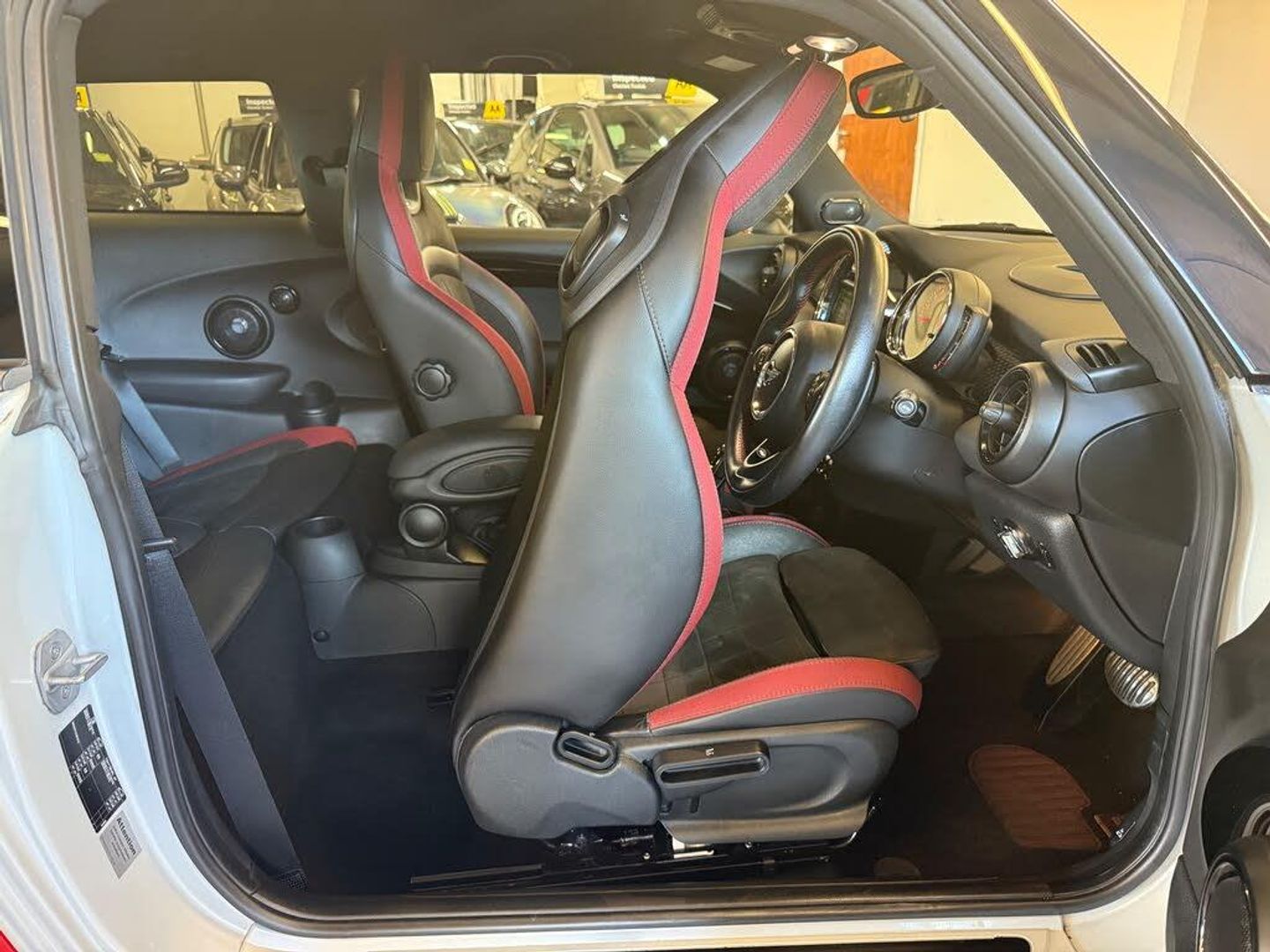 12Volt Socket in Front Centre Console,Bluetooth Hands Free Function with USB Audio,DAB Tuner,Intelligent Emergency Calling - E-Call,MINI TeleServices,Radio with Four-Line Display,Speakers - Two Mid Range in Front Doors and Two Woofers under Front Seats,17in Alloy Wheels - John Cooper Works Track Spoke - Silver,Chrome Bezels around Rear Lights and Headlights,Chrome-Plated Fuel Filler Cap in Rear Right Side Panel - Linked to Central Locking,Door Handles - Chrome Plated,Engine Scoop in Body Colour,Exhaust Tailpipe - Visible Double Round Central with Chrome Finishers,Exterior Mirrors - Aspheric on Drivers Side - Electrically Adjustable,Front Side Indicators - White,Heated Mirrors and Windscreen Washer Jets,Heated Rear Window with Automatic Deactivation,Heated Window Heater,John Cooper Works Aerodynamic Kit,John Cooper Works Roof Spoiler,MINI Mobility System,Mirror Caps in Body Colour,Rear Fog Light,Roof in Body Colour,Security Locking Wheel Bolts,Side Scuttles Chrome-Plated with John Coope