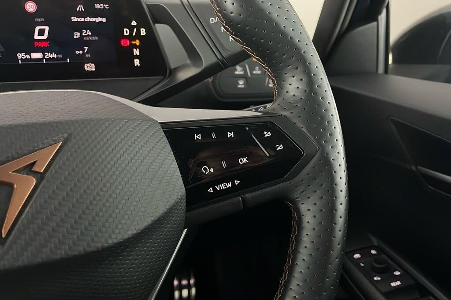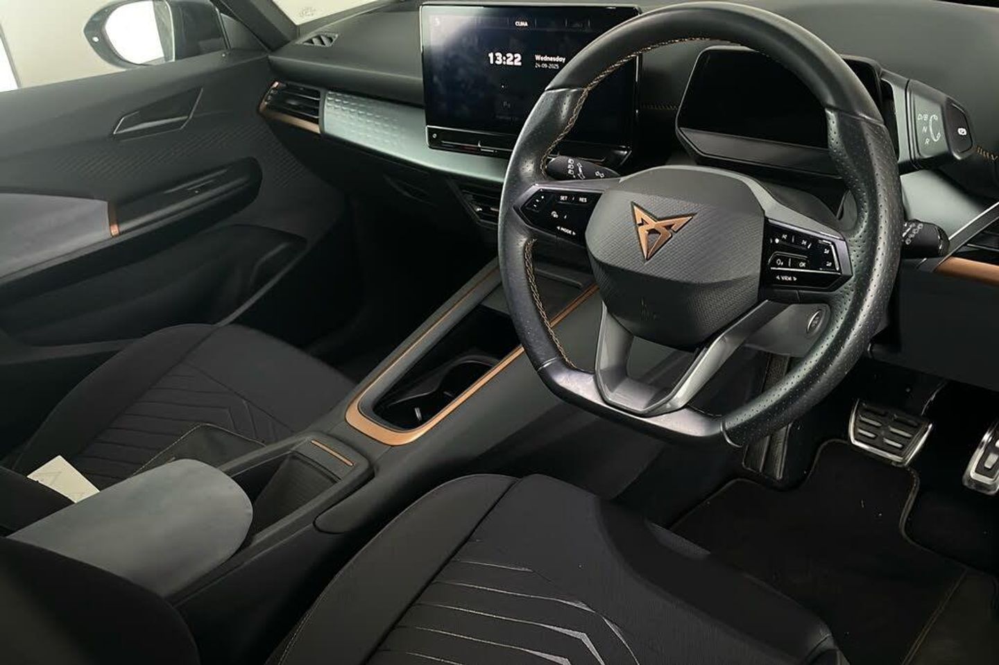 18in Alloy Wheels - Cyclone 3-Point Seatbelts 5 Infotainment Speakers 5.3in Digital Cockpit with 12in Central Display Infotainment System ABS - Anti-Lock Braking System Aluminium Pedals Anti-Theft Alarm System - Interior Monitoring - Backup Horn and Towing Protection Auto Dimming Rear View Mirror Bluetooth without Wireless Charger CUPRA Connect - Safety - Service - Remote and Online CUPRA Emblem on Steering Wheel Charging Cable - Mode 3 - 16amp Climatronic Dual-Zone Air Conditioning DAB and AM/FM Radio Door Mirrors Electrically Adjustable - Folding and Heated Driver Alert System - Tiredness Recognition Driver and Front Passenger Airbags with Front Passenger Airbag Deactivation - Side Airbag in Front with Curtain Airbag and Interaction Airbag Drivers and Passenger Seats - Manual Height Adjustment Driving Profile Selection Dynamic Steering Electric Auxiliary Air Heater Electric Window - Front Emergency Steering Support with Turn Assist Extended Safety System Forward Collision Warning with Automatic Braking Full LED Headlights with Welcome Home Function and Adverse Weather Function Grey Exterior Mirrors Heat-insulated Glass and Acoustic Windshield Heated - Leather-Wrapped - Multifunction Steering Wheel ISOFIX Points in Outer Rear Seats with Top Tether Anchorage Points Keyless-Go Central Locking System LED Rear Lights Lane Assist Locking Wheel Bolts with Anti-theft Protection Multi-Coloured Interior Ambient Lighting Park Distance Control in Front and Rear Pilot - M Recycled Black Interior Roof Shock Absorption in Front Sports Rear Shock Absorption Sunvisor with Illuminated Mirror Tool Kit Transport Protection Film Tyre Pressure Monitoring System USB Type C x4 - x2 Front and x2 Rear Unsplit Rear Seat Bench - Split Folding Backrest without Centre Armrest Visual and Acoustic Seatbelt Reminder Voice Assistant Windshield Wiper with Light-Rain Sensor Wireless Full Link Smartphone Integration Without Armrests for Front Seats Without Heat Pump Without Lumbar Support in Seat Backrests e-Call Service