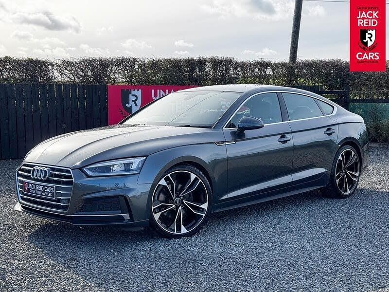 Check out what's all included in this 2019 Audi A5 40 TFSI S Line 5dr S Tronic:. Technology pack.. 7" Colour driver information system.. Audi parking system plus with front and rear sensors.. Audi smartphone interface.. MMI Navigation.. Power tailgate.. Voice control system.. Heated front sports seats.. Multi function steering wheel.If you like the look of this car and would like to come for a look or an unaccompanied test drive feel free to call down anytime or get in touch to make an appointment. We are open 7 days a week for your convenience!We have one of the largest numbers of cars for sale in our area with up to 200 cars in stock ready to view! We stock a variety of makes and models such as Audi, BMW, Seat, Range Rover, Mercedes, Jaguar and many more!All our cars come warranted by Jack Reid Cars meaning that we make all our decisions in house unlike unreliable warranty companies with too many terms and conditions.We look forward to hearing from you!This car is shown with an optional new alloy wheel and tyre upgrade or it can be returned to the standard wheels, whichever suits you best. Please contact sales for pricing.
