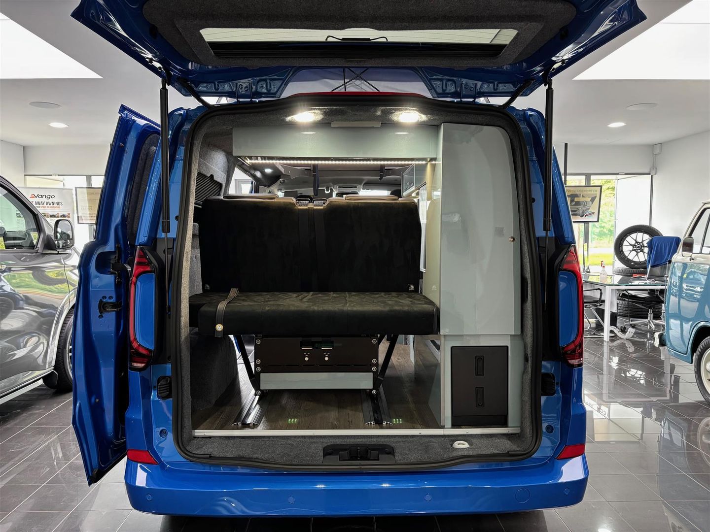 The rear of the Campervan is fitted with Tailgate and it comes with 20″ Black Alloy Wheels, Side Bars & Gloss Black Front Styling Kit for a truly stunning finish.