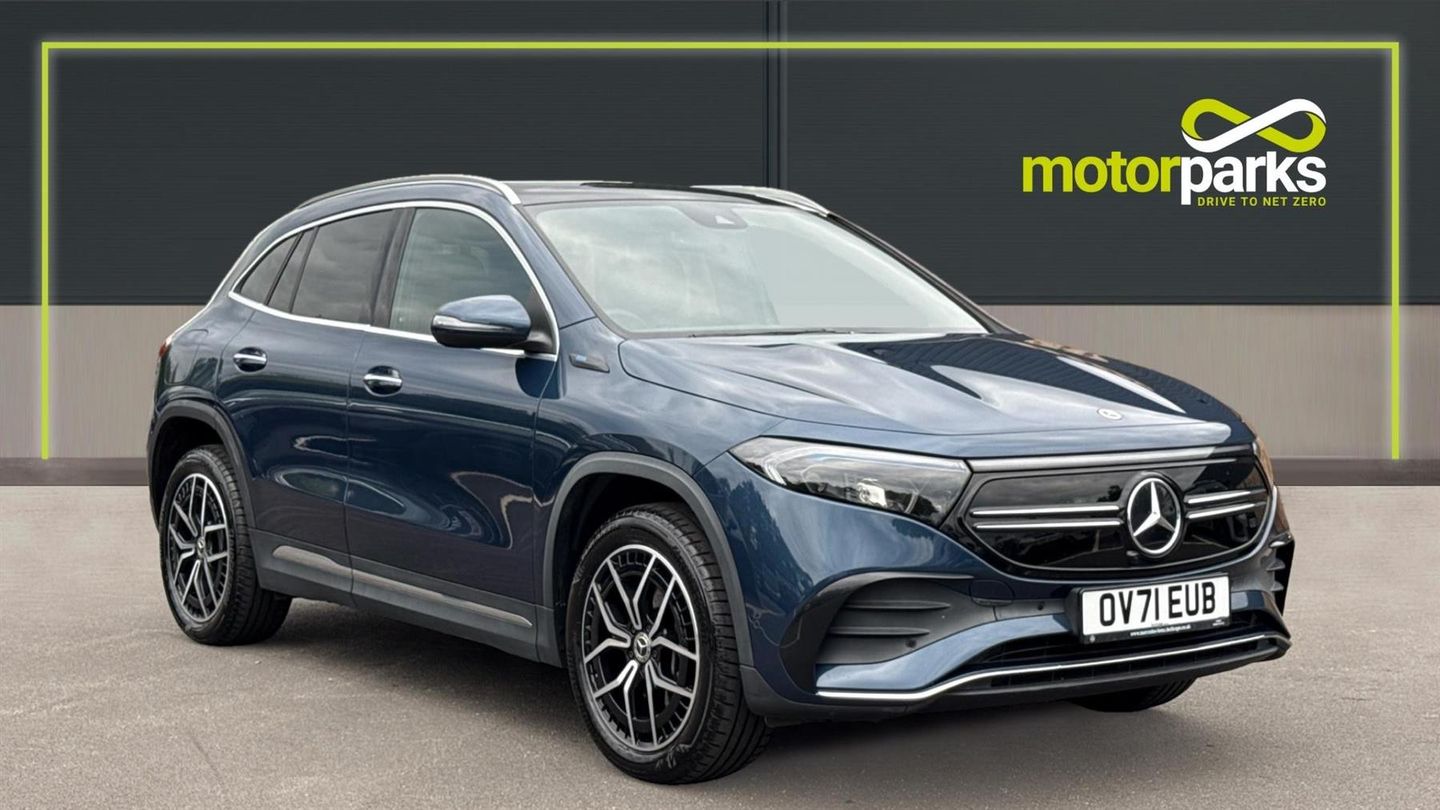 Features include 19in Alloy Wheels, Ambient Interior Lighting, Partronic Park Assist wa Rear Camera, LED Lights wDusk+Rain Sensors and even Keyless Entry+Go. Step into all-electric luxury with the 2021 Mercedes-Benz EQA 350 AMG Line Premium, finished in the stunning Denim Blue Metallic paint. This compact SUV blends AMG styling with cutting-edge EV technology, making it as stylish as it is sustainable. With 292hp from its dual-motor all-wheel-drive system, the EQA 350 delivers instant acceleration and confident handling, while offering a range of up to 264 miles (WLTP). Rapid charging capability means you can boost from 10-80 in around 30 minutes, keeping you on the move with ease. Inside, the AMG Line Premium trim surrounds you with luxury and innovation. Highlights include leather sports seats with red stitching, heated front seats, a panoramic glass sunroof, 10.25-inch digital driver display, and 10.25-inch MBUX touchscreen infotainment system with sat nav, Apple CarPlay, Android Auto, and voice control. .
