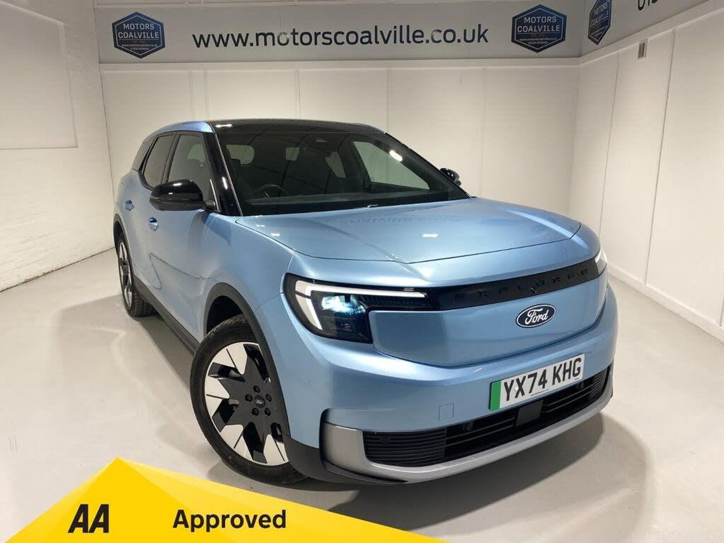 2024 74 Reg Ford Explorer EV 77kWh EXTENDED RANGE RWD (286PS) PREMIUM AUTOMATIC 5dr. Arctic Blue metallic with FULL SENSICO interior, DRIVER ASSISTANCE PACK with HEAD UP DISPLAY, Driver alert, Lane centering, Lane change assist, Active park assist and 360 degree parking camera, SYNC MOVE TOUCHSCREEN SATELLITE NAVIGATION, DAB, Apple CarPlay, Android Auto, USB, Bluetooth, 20 inch alloy wheels, Matrix LED headlights, PANORAMIC ROOF, B&O Premium sound system, Hands free electric tailgate, 12 way electric adjustable drivers seat with memory function, HEATED front drivers and passengers seats with massage function, privacy glass, wireless phone charging, ADAPTIVE CRUISE CONTROL, lane keeping aid and lane departure warning, traffic sign recognition, cross traffic alert, dual zone climate control AIR CONDITIONING, keyless entry and start, REAR VIEW CAMERA, FRONAT and REAR PARKING SENSORS, heated, power foldable door mirrors, 1,195 miles (YX 74 KHG).