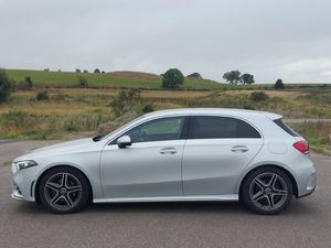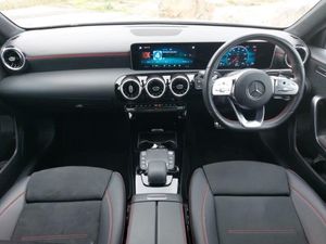 180 degree rear view camera with parking guidelines, Hard-disk navigation, Hey Mercedes Voice activation, 10.25" media display, Cruise control + speed limiter, Smartphone integration with Apple CarPlay and Android auto, MBUX multimedia system with DAB digital radio and touchpad including satellite navigation, Dual bluetooth interfaces, Wireless charging, Active park assist with parktronic system including front and rear parking sensors, DYNAMIC SELECT with a choice of driving modes (ECO, Comfort, Sport and Individual), Mercedes me connect including emergency call system, accident recovery, breakdown and maintenance management, 7" colour screen in instrument panel, Active lane keep assist, Attention assist, ECO start/stop function, Pre-installation for Vehicle Setup, Pre-installation for Vehicle Monitoring, Mercedes-Benz sound system - 100W, DAB Digital radio, 2 USB ports (type C) in rear stowage compartment and one in front of center console, Privacy glass, LED high performance headlamps with integrated LED daytime running lights, AMG bodystyling - Front apron with splitter in chrome, rear apron with chrome trim and chrome visible trim elements in tailpipe, 40:20:40 split folding rear seats, Two zone thermotronic luxury automatic climate control, Sports seats with integrated headrests, Auto Mercedes-Benz child seat recognition sensor, Seat comfort pack - A Class, Mirror package - A Class, Light and sight pack - A Class