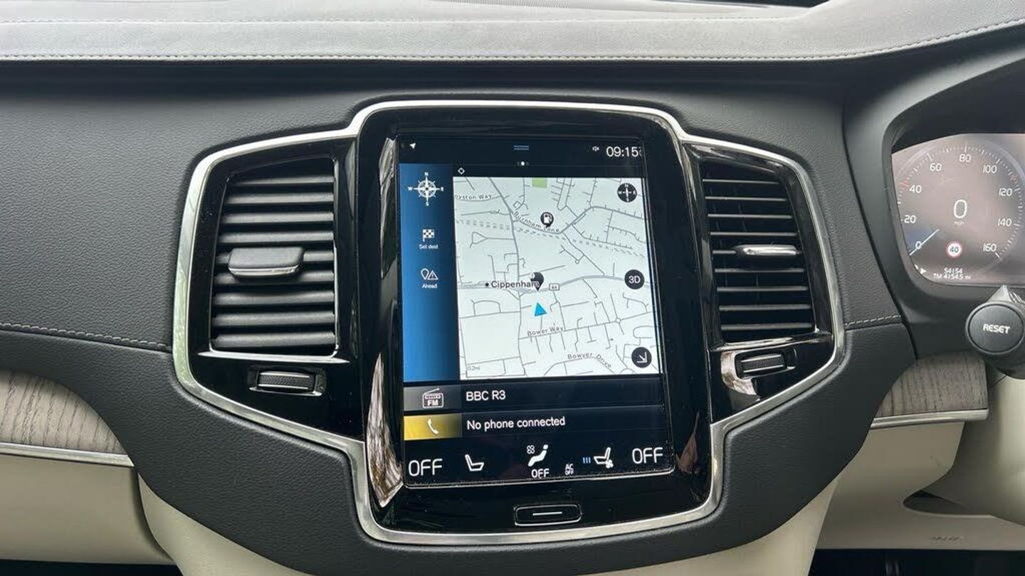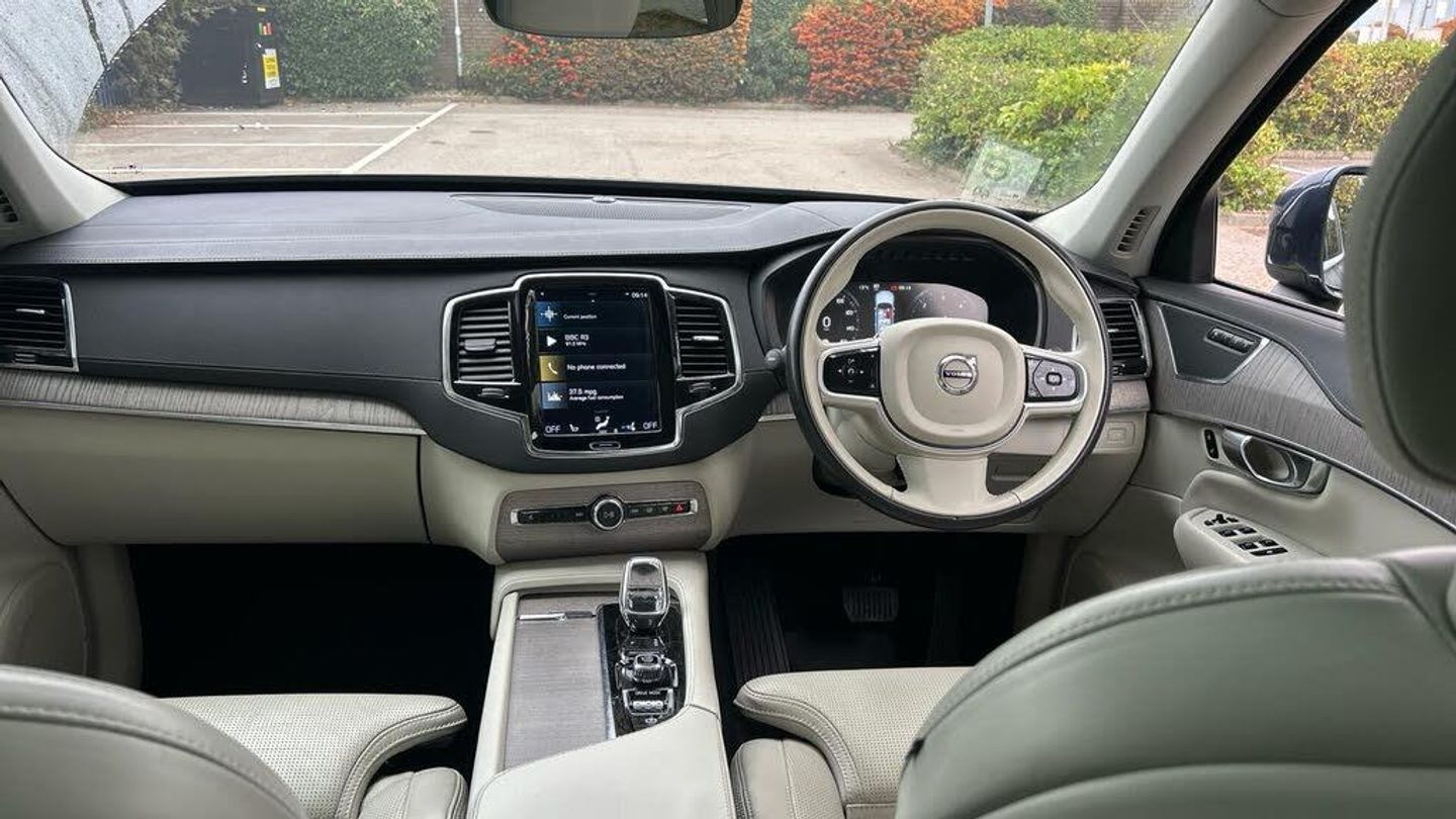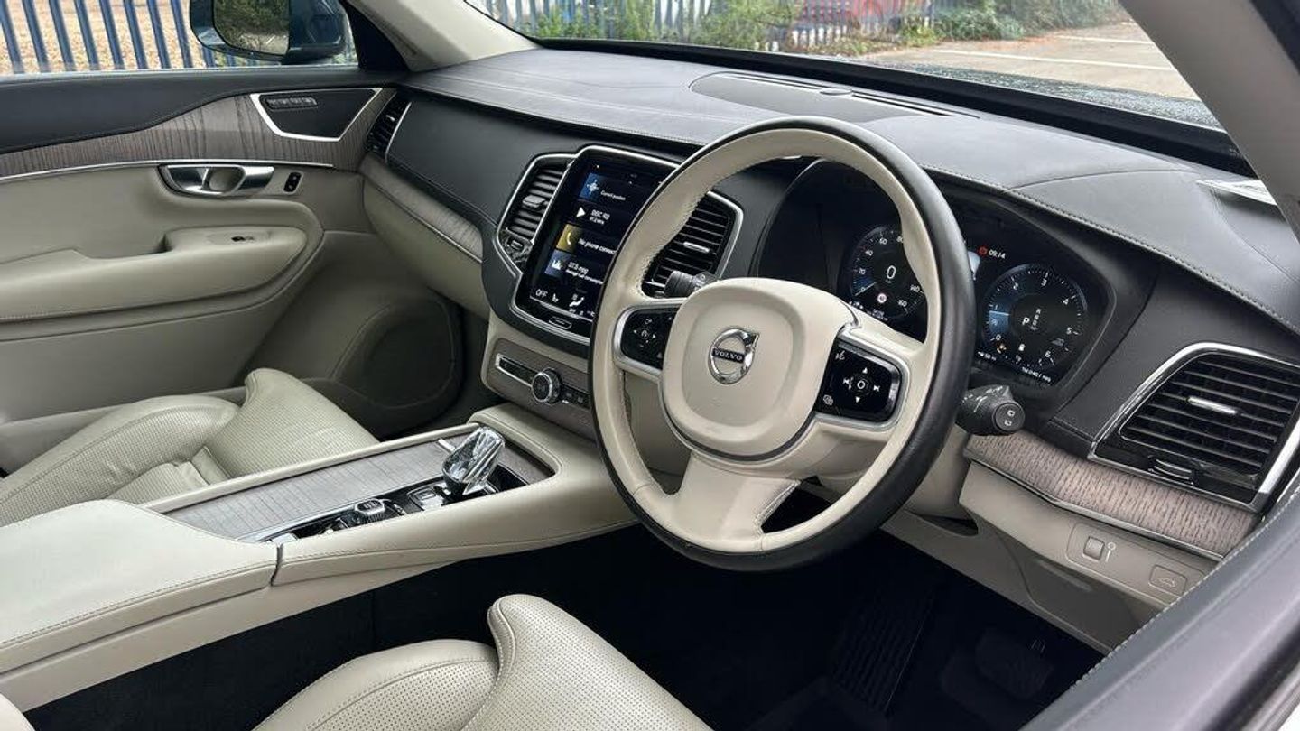 Lounge, Power Glass Tilt and Slide Panoramic Sunroof with Sun Curtain, Parking Camera 360° Surround View, Dark Tinted Windows - Rear Side Doors and Cargo Area, Blond headlining, Grey Ash Inlays, Ventilated Front Seats, Power side bolsters, Comfort Front Seats, Drive Mode Settings, 8-speed Automatic transmission. AWD, Pedals, Orrefors® Crystal Gear Lever (automatic only), 4-Zone Electronic Climate Control, Afterrun parking climate, Passenger Airbag Cut Off Switch, Dual Stage Driver and Passenger Airbags, Driver Knee Airbag, Power Glass Tilt and Slide Panoramic Sunroof with Sun Curtain, Road Sign Information Display, Driver Alert Control with Lane Keeping Aid, Inscription front grille in Matte silver with chrome frame, Automatic LED Headlights with Active High Beam incorporating Day Running Lights, Headlight Cleaning System, Front LED Foglights, 12.3 Active TFT Crystal Driver's Information Display, Pilot Assist (up to 80mph) Adaptive Cruise Control with Distance Alert & Queue Assist, Adjustable Speed Limiter, Volvo On Call with App, DAB (Digital Audio Broadcasting) Radio, Sensus Connect with High Performance Sound, Power retractable door mirrors, Power operated passenger seat with memory function, Automatic door locking, Colour adapted rear view mirror covers, Double locking, Private Locking, Dark Tinted Windows - Rear Side Doors and Cargo Area, Anti-theft Alarm including Immobiliser. Volume Sensor and Level Sensor, Keyless Drive (includes Keyless Entry and Keyless Start), CleanZone (AQS with prevent at unlocking). Multifilter 3, Voice Activated Control for Key Functions, Textile floor mats. third-row, Tailored Instrument Panel and Door Tops with Contrast Stitching, Power Driver's Seat with Memory for Seat, Power Passenger Seat, Heated Front Seats, Heated Rear Seats - Outer Positions, Power folding outer rear head restraints. second row, Seven individual seats, Manually foldable second seat row, 4-Way Lumbar Support, Luxury Floor Mats, Load Protection Net, Flexible Load Floor with Grocery Bag Holder, Centre armrest with cupholders, Illuminated Vanity Mirrors, Rear Footwell and Side Step Illumination, 12v Socket - Cargo Area, First Aid Kit, Load cover. semi-automatic, Integrated Sun Curtain - Rear Doors, Autodimming Inner & Exterior Mirrors, Hidden storage compartment, Seat cushion extensions. driver seat, Touring Chassis, Hill Start Assist, Oncoming Lane Mitigation, Rear Collision Warning and Mitigation Support, Hill Descent Control, Slippery road alert, EBL. Flashing Brake Light and Hazard Warning, Heated Steering Wheel, 3 Spoke Leather Steering Wheel, Adjustable Steering Force, 20 10 Spoke (Diamond Cut/Light Grey), Tempa Spare Wheel and Jack, Locking Wheel Nuts, Twin Integrated Exhaust Pipes, Heated Front Windscreen, Heated Washer Nozzles, Body-coloured door handles with bright deco and Illumination with Puddle lights, Inscription front grille with chrome bar insert and chrome frame, Cargo opening metal scuff plate, Illuminated Front Tread Plates, Chrome Window Surround, Bright integrated roof rails, Warning Triangle, All-wheel Drive (AWD), Tempered side windows, Sensus Navigation, Park Assist Pilot - Automatic Parallel and 90° Parking, Parking Camera 360° Surround View, Plastic protection cap, 9 Centre Console Portrait Touch Screen, WHIPS? (Whiplash Protection System) (Front Seats), IC (Inflatable Curtains) - Full Length, SIPS? Airbags (Front Seats), ISOFIX Attachment (Outer Rear Seats), Seatbelt Reminder & Pretentioners (All Seats), Rain Sensor - Automatic Windscreen Wiper Activation, Steering Wheel Remote Infotainment Control, Humidity sensor, Start/Stop technology, Bluetooth® Handsfree System, Power Glass Tilt and Slide Panoramic Sunroof with Sun Curtain, Power Glass Tilt and Slide Panoramic Sunroof with Sun Curtain, Parking Camera 360 Surround View, Driver Assist, Dark Tinted Windows - Rear Side Windows and Cargo Area, Power Glass Tilt and Slide Panoramic Sunroof with Sun Curtain, Climate Pack, Lounge Pack, Nappa Soft Lea