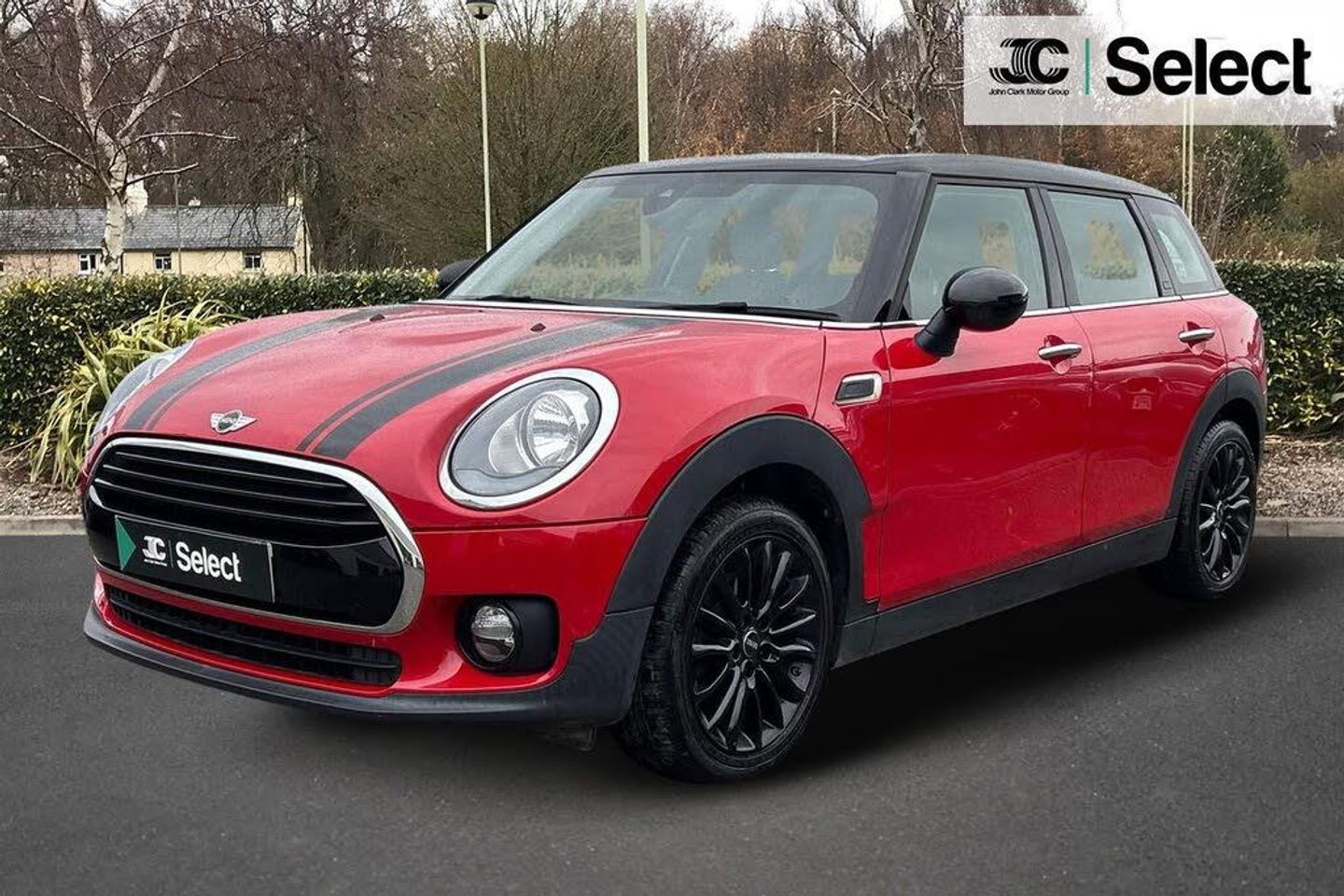 Brake pad wear indicator warning light, Central display with LED ring and 6.5" colour touch screen, DTC - Dynamic traction control, Exterior temperature gauge, Intelligent emergency call, Mini Ecall, MINI TeleServices, Navigation system, On board computer, Personal Profile, Service interval indicator, Servotronic speed sensitive power steering, Electronic differential lock, Auxiliary input socket, DAB digital radio module, MINI Connected, MP3 compatible radio/single CD player, Radio visual boost, Anti dazzle rear view mirror, Body coloured bumpers, Bonnet Stripes - Black, Chrome door handles, Chrome exhaust tailpipe, Chrome headlight surround, Chrome plated radiator grille, Electric front windows + one touch + anti-pinch, Electrically adjustable door mirrors, Follow me home headlights, Front intermittent wipers, Heated door mirrors/heated windscreen washers, Heated rear window with timer, Metal look door sill finishers, Rain sensor including auto headlights activation, Rear wiper, Roof spoiler, White indicator lights, 12V power point front, 4 lashing points to secure luggage, 60/40 split folding rear seat, Centre console storage box, Chrome interior door handles, Driver/passenger sunvisors, Easy entry seats, Front and rear cupholders, Front and rear Isofix child seat preparation, Front and rear velour floor mats, Front centre armrest with storage compartment, Front headrests, Front interior light, Front passenger grab handle, Front seat backrest storage nets, Heater with recirculation function, Height/reach adjust steering wheel, Luggage compartment lighting, Multifunction steering wheel, Outer passenger rear headrests, Rear armrest with storage, Rear grab handles, Storage compartments in doors, Toolkit in luggage compartment, Interior lights pack - Mini Clubman, 3 point automatic seatbelts, 3 point seatbelts on all rear seats, ABS, Automatic Stability Control (ASC), Cornering brake control (CBC), Crash Sensor - activates hazard/interior lighting + unlocks doors, Driver and passenger airbags, Driver and passenger side airbags, DSC - Dynamic Stability Control, Electronic brake force distribution, Electronic parking brake, Front curtain airbags, Front passenger airbag deactivation, Fuel cut off safety device, Hill start assist, Pyrotechnically pre-tensioned front seatbelts, Traction control, Twin horns, Tyre pressure warning, Drive away door locking, Keyless Start, Locking wheel bolts, RF remote control central locking, Second remote key, Thatcham category 1 alarm + immobiliser