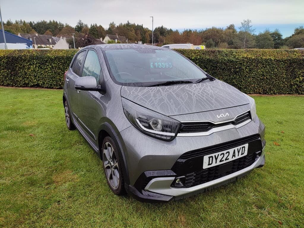 8" touch screen satellite naviagtion with RDS and DAB with telematics, Apple car play/Android Auto with voice control, Cruise control + speed limiter, Emergency stop signalling system, External temperature gauge, Kia Connect (UVO), Motor driven power steering, Rear parking sensors, Reversing camera system with dynamic guidelines (Integrated into centre fascia screen), Tachometer, Trip computer, Wireless Smartphone charger, 6 speaker audio system, Bluetooth with music streaming, Steering wheel mounted controls, USB ports for connection of a media device, Automatic headlight control system, Bi-function projection headlights, Black grille with silver surround, Black side sill moulding, Black wheel arch cladding, Body colour bumpers, Body coloured mirrors and chrome exterior handles, Chrome side window trim, Day/night rear view mirror, Electric adjustable/heated/folding door mirrors with LED indicators lights, Front and rear bumpers with silver skid plates and twin exhaust, Front and rear electric windows with drivers's auto up/down function, Front fog lights, Headlamp levelling, Heated rear window, High mount brake light, LED daytime running lights, LED rear fog lights, LED rear lights, Privacy glass - Rear windows and tailgate, Rear wash/wipe, Speed variable front wipers, Tinted glass, Visible VIN plate, Welcome and follow-me home light functionality, 1 x rear coat hook, 12V power point front, 3 x passenger assist grips, 60/40 split/folding 2nd row of seats, All round height adjustable headrests, Automatic air conditioning, Centre Console with Storage Box and Sliding Armrest, Cupholders in centre console, D-cut steering wheel with green stitching, Driver and front passenger sunvisors with driver's side illuminated vanity mirrors, Driver seat height adjust, Dual Height Luggage Area Floor, Faux leather upholstery, Front cabin lights, Glovebox, Heated front seats, Heated steering wheel, ISOFIX Child seat top tethers and anchor fixings, Leather trimmed steering wheel and gearshift, Luggage area light, Luggage area parcel shelf, Metal pedals, Passenger front seatback pockets, Satin chrome interior door handles, Silver and green accents on door armrests, lower centre console trim and air vents, Slide/reclining front seats, Tilt adjustable steering wheel, Advanced Driver Assistance Pack - Picanto, 3x3 point rear seatbelts, ABS/EBD, Automatic unlocking of doors in case of impact, Dual front airbags, ESC + BAS + VSM + HAC, Front passenger airbag cut-off switch, Front seatbelt height adjusters, Front seatbelt pretensioners + load limiters, Knee airbags, Rear child proof door locks, Seatbelt warning, Side impact protection, Torque vectoring brake based and straight line stability (SLS), Traction control, Twin curtain airbags, Twin front side airbags, Tyre pressure monitoring system, Anti theft alarm, Engine immobiliser, Locking wheel nuts, Smart key with engine start/stop button, 16" alloy X-Line wheels, Tyre mobility kit