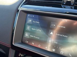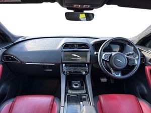 Santorini Black, Privacy Glass, Sliding Panoramic Roof, 20in Alloy Wheels - 5 Spoke Style 5035 with Gloss Black Finish, 10-Way Electric Front Seats, 10in Touch Pro, 2-Zone Climate Control, 20d AWD Badge, 20in Alloy Wheels - 5 Split-Spoke Style 5031 with Gloss Black Finish, 3-Flash Lane Change Indicators, 325mm Front Brakes, 40-20-40 Split Fold Rear Seat, ABS - Anti-locking Braking System, AM-FM Radio, ASPC - All Surface Progress Control, Airbags - Front Side, Airbags - Full Length Side Window Curtain, Ambient Interior Lighting, Android Auto, Apple CarPlay, Approach Illumination, Auto-Dimming Interior Rear View Mirror, Bluetooth Connectivity, Bluetooth Streaming, Body Coloured Door Mirror Caps, Body-Coloured Door Claddings with Gloss Black Finishers, Brake Pad Wear Indicator, Bright Metal Pedals, CD-DVD Player, Centre Console - Side Stowage, Centre Console - Storage Surround Finishers - Satin Chrome, Centre Console with Armrest, Connect Pro, Cruise Control with Speed Limiter, Digital Audio Broadcast - DAB - Radio, Door Trim - Luxtec, Driver Condition Monitor, Dynamic Stability Control - DSC, Dynamic Volume Control, EBA - Emergency Brake Assist, ECO Driving Style Assistant, EPAS - Electric Power Assisted Steering, EPB - Electronic Parking Brake, Ebony Suedecloth Headlining, Electric Windows - Front and Rear with One-Touch Open-Close and Anti-Trap, Electrically Adjustable Heated Door Mirrors, Emergency Braking, F-PACE Badge, Fixed Panoramic Roof, Front Airbags with Passenger Seat Occupant Detector, Front Fog Lights, Front Headrests, Front Windscreen with Non-acoustic Layer, Front and Rear Parking Aid, Gloss Black Grille with Gloss Black Surround, Gloss Black Roof Rails, Gloss Black Side Vents with Chequered Flag Badge, Gloss Black Side Window Surround, Glovebox Finisher with Jaguar Script, Green Tinted Glass, Headlight Power Wash, Heated Front Seats, Heated Front Windscreen, Heated Rear Window, Heated Steering Wheel, Hill Launch Assist, Hook in Loadspace, ISOFIX Rear, InControl Apps, Interactive Driver Display, Interior Front Door Handles with Separate Locking Switches, Jaguar Script and Leaper, Jaguar Tyre Repair System, JaguarDrive Control, LED Tail Lights, Lane Keep Assist, Lockable Glovebox, Luggage Tie Downs in Loadspace, Luxtec Wrapped Instrument Panel Topper with Wrapped Binnacle, Manually Adjustable Steering Column, Meridian Sound System - 380W, Meshed Aluminium Trim Finisher, Metal Loadspace Scuff Plate, Metal Treadplates with Chequered Flag Branding, Navigation Pro, No Loadspace Storage Rails, Open Differential with Torque Vectoring by Braking, Outside Temperature Gauge, Overhead Lighting Console, Passive Front Head Restraints, Power Operated Child Locks, Power Sockets, Powered Tailgate - Boot Lid, Premium Carpet Mats, Pro Services and Wi-Fi Hotspot, Protect for Warranty Period, R-Sport Rear Bumper, Rain Sensing Windscreen Wipers, Rear Air Vents, Rear Armrest with Twin Cupholders, Rear Camera, Rear Centre Headrest, Rear Fog Lights, Rear Metal Treadplates, Remote Premium, Rotary Shifter, S Front Bumper, Satin Chrome Gearshift Paddles, Satin Chrome Touchscreen Surround, Seat Belt Reminder, Seats - Sports, Single Sided Twin Tailpipes with 75mm Finishers, Soft Grain Leather Sport Steering Wheel, Speed Proportional Steering, Start Up Sequence with Movement - Dials and Lighting, Steering Wheel - Multi-Function, Touch Pro Navigation Pack with Meridian Digital Sound System - 380w, Traffic Sign Recognition with Adaptive Speed Limiter, Trailer Stability Assist, Trip Computer, Twin Front Cupholders with Cover, Tyre Pressure Monitoring System, Unpainted Brake Calipers, Valet Mode, Variable Intermittent Wipers, Voice Control, Xenon Headlights with LED Signature