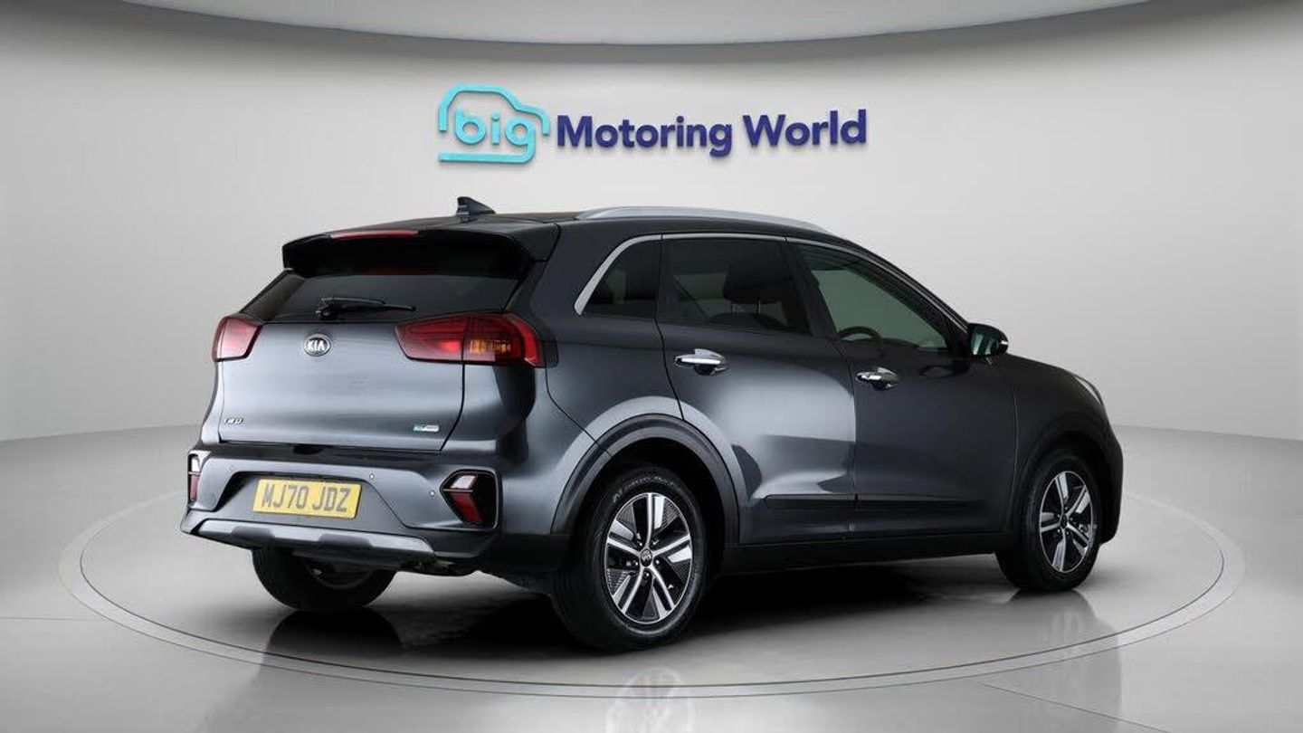 Part Leather Seats,Adaptive Cr-Our Kia Niro is finished in Grey. Specification includes a range of fantastic features including Part Leather Seats, Adaptive Cruise Control, Apple CarPlay, Lane Assist, Android Auto, Privacy Glass, Rear View Camera, Bluetooth, Parking Sensors, Ambient Lighting Specification information is supplied by CAPHPI and may vary to the actual car. This data does not form any part of a buying contact. Please check specification prior to purchase in-store. The MOT is valid until September 2026, visit bigmotoringworld.co.uk for more photos, a 360 tour, service history and a free HPI report.Were BIG on peace of mind and this Grey Kia Niro has completed our comprehensive 200 point inspection and passed all checks. Its ready for you to drive away with immediate collection in-store. We include a 90-day warranty as standard plus an option to extend for up to 3 years.Reserve this car exclusively for you, safely and securely at bigmotoringworld.co.uk, with a fully refundable £99 deposit. Test drive before you buy, with no commitment, no hassle and a completely haggle free experience. Still searching and want to see thousands more cars? We are BIG on choice with over 8000 cars to choose from.Visit our award winning web site bigmotoringworld.co.uk.Were Big Motoring World and were BIG on what matters to you.
