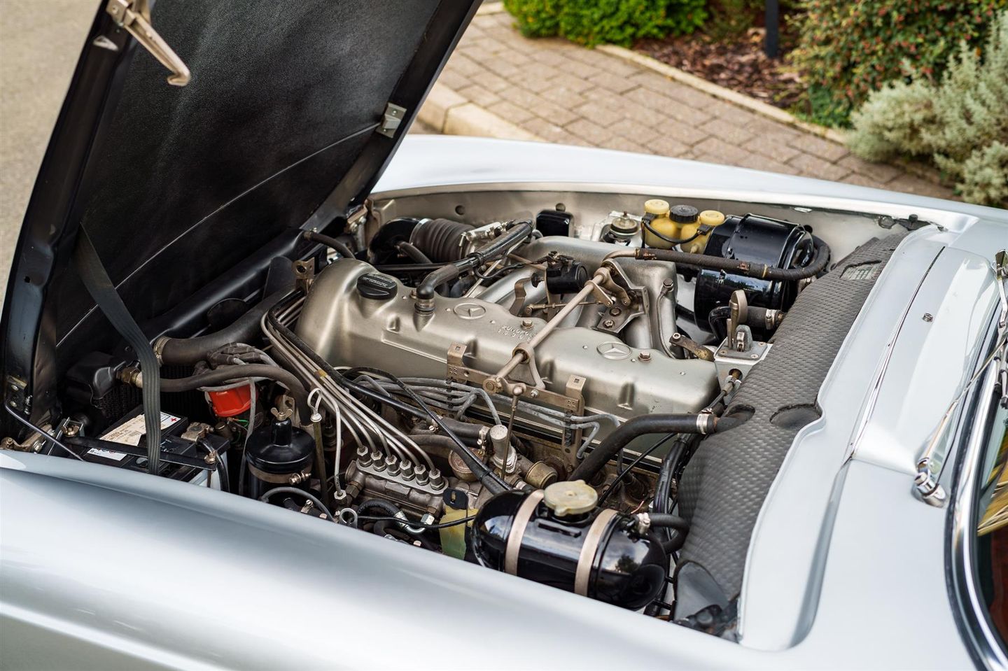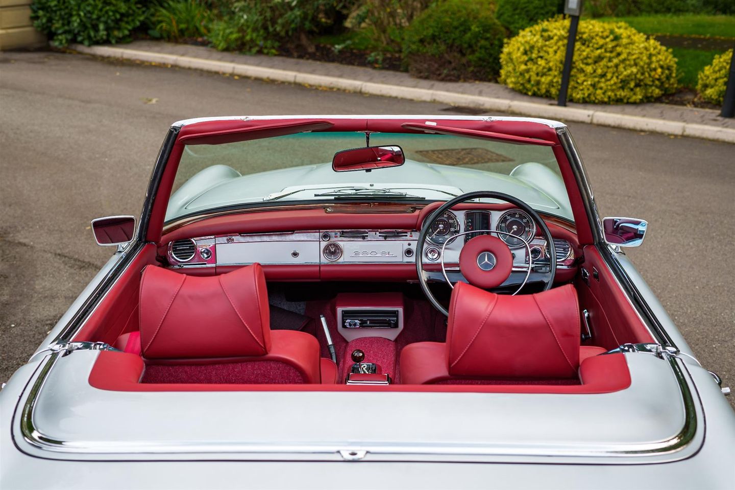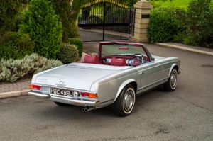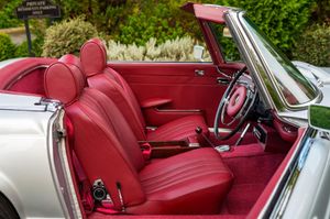 The Hemmels Vault is delighted to showcase this beautiful 1970 Mercedes 280SL (W113) Pagoda, RHD, Automatic, presented in Silver Grey (DB180) complemented by a striking Red Leather Interior. This exceptional vehicle has recently undergone a comprehensive 'Hemmels' Interior Re-Trim, which includes new carpets, refinished woodwork, a Replacement Soft-Top, and numerous other enhancements. Accompanied by a Matching Hard Top, this stunning 280SL offers a smooth driving experience, characterised by its eye-catching appearance and timeless sophistication. We provide Nationwide Delivery and Worldwide Shipping; please enquire for a quote or further information.