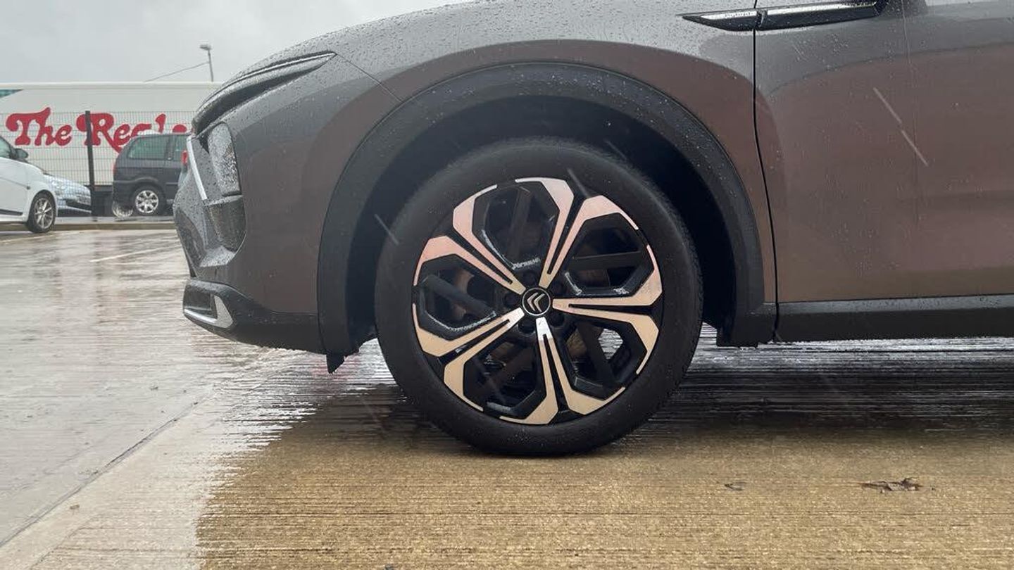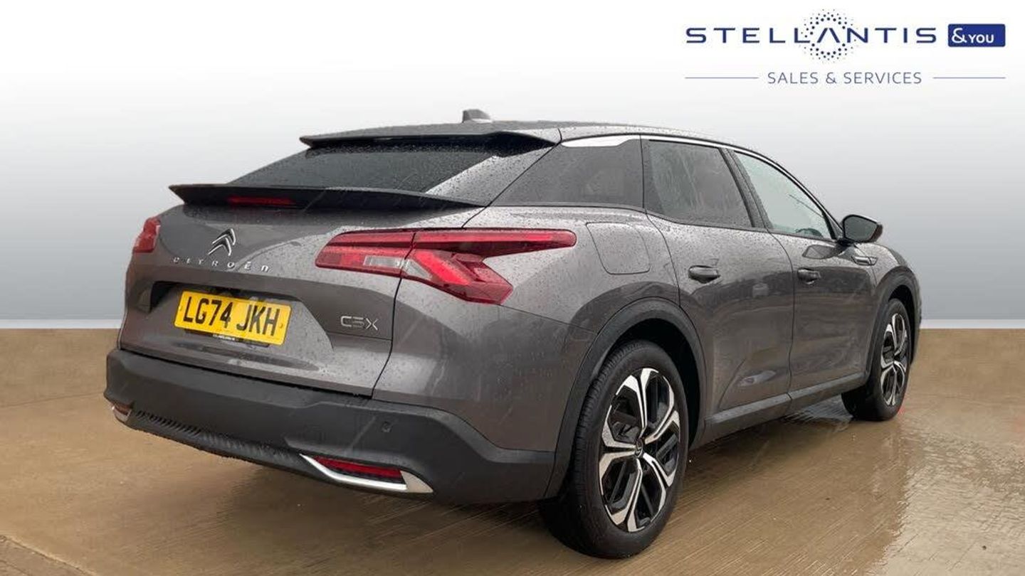 12in Central Touch Screen with Separate Heating and Ventilation controls, 12V Socket - Centre Console, 12V Socket - Luggage Compartment, 2 Front USB Plugs - 1 USB Type C Charge and Data in Front of Centre Console - 1 USB Type C Charging Only under Centre Front Armrest, 2 Rear USB Plugs - Charging Only, Citroen Connect Box with Emergency and Assistance System, Hi Fi System - 8 Loudspeakers, Inductive Wireless Smartphone Charging, Coffee Break Alert, Driver Information Panel with Lighting Fault Indicator, e-Toggle Drive Selector, Extended Head Up Display - e-HUD - with Windscreen Projection, Front and Rear Parking Sensors and Reversing Camera with Top Rear Vision with Wash Function, Outside Temperature Indicator, Sensitivity Setting Selector Switch - Electric-Hybrid-Comfort-Sport, Tyre Under Inflation Detection, 19in Alloy Wheels - Aero-X Diamond Cut with Onyx Black Paint and Onyx Black Aero Inserts, Acoustic Insulated and Tinted Windscreen with Head Up Display - eHUD, Body Colour Exterior Door Handles, Chrome Citroen Chevrons Integrated into Front Grille and Extending Outward into Front Light Signature, Compressor with Puncture Repair Kit, Door Mirrors - Electronic - Heated - Folding with Integrated LED Indicator and LED Approach Lighting in Black - Extended Blind Spot Detection, Exterior A-pillar Black Trim, Extra Tinted - Heated Rear Window, Extra Tinted Rear Quarter Panel Windows, Front Electric Windows, Gloss Black Citroen Chevrons with Chrome Surround - Chrome Citroen Lettering and C5 X Badging on Rear Tailgate, Gloss Black Door Mirrors, Hybrid Badging on Front Doors and Fenders, LED Front Indicators, Locking Wheel Nuts, Rear Electric Windows, Remote 4-Window Opening-Closing with Plip, Satin Chrome Trim on Rear Bumper, Tinted Front and Extra Tinted Rear Windows, Automatic Illumination of Headlamps when Unlocking, Automatic Welcome and Follow Me Home Lighting, Automatically Illuminating LED Headlamps with Automatic High Beam Assist, Front LED Daytime Running Lights, LED Fog Lights with Static Cornering Function Integrated into Front Bumper Apron, LED Rear Lights - High Level LED Brake Light - LED Rear Number Plate Lighting, 7in Digital Instrument Cluster with Smoked Glass - 10 plus 2 Indicator Lights and Ambiance Backlighting, Automatic Dual Zone Air Conditioning, Automatic Rain-Sensitive Flat Blade Wipers with Integrated Wash Function, Black Leather-Effect Central Armrest with Overstitching, Black Leather-Effect Front and Rear Door Panel Inserts, Black Tie Down Rings for Secure Load Storage, Carpeted Boot, Charging Point Flap Opening Dashboard Mounted Button, Courtesy Lighting, Dashboard and Door Panels Decor - Wood Film and Grain, Dashboard Mounted Black - Backlit - Chrome-Ringed Start-Stop Button, Driver and Front Passenger Sun Visors with Mirrors and LED Lighting, Electrochrome Frameless Rear View Mirror, Footrest - Drivers, Front and Rear Door Storage Pockets, Front and Rear Passenger Storage Areas in Central Console, Front Seat Back Pockets, Height and Reach Adjustable Steering Wheel, High Efficiency Air Filter, Illuminated Passenger Glovebox, Interior LED Welcome Lighting - Door Handles - Front Foot Wells - Driver Instrument Panel, Magic Handles, Mechanical Drivers Seat with Fore-Aft Adjustment - Backrest Adjustment - Height Adjustment - Lumbar Adjustment and Headrest, Mechanical Passenger's Seat with Fore-Aft Adjustment - Backrest Adjustment - Height Adjustment - Lumbar Adjustment and Headrest, Multifunction Heated - Grained Leather Steering Wheel with Paddle Shifters - Driving Assistance and Infotainment Control Functions, My Citroen Drive Plus, Plastic Boot Sill, Rear Air Vents with Independent Opening-Closing and Left and Right Airflow Settings for Rear Seat Passengers, Rear Armrest Storage and Cup Holders, Remote Functions, Roll Up Awning Fitted to Tailgate, Satin Chrome Dashboard Strip and Satin Chrome Decor on Bottom of Door Panels, Satin Chrome Highlights on Air Vents and Steering Wheel, Smartphone Storage in Front of Front Centre Armrest, Storage Area for Emergency Safety Triangle-First-Aid Kit, Storage Under Central Armrest, Mistral Carpet with Reinforced Drivers Foot Well, 7.4kW Single-Phase Onboard Charger, Citroen Advanced Comfort Active Controlled Suspension, Mode 3 Charging Cable with Type 2 Connectors, Passenger Cabin Pre-Conditioning, Variable Power Assisted Steering, ABS - Anti-Lock Braking System, Advanced Driver Assistance System with Radar Controlled Active Safety Brake, Curtain Airbags, Deadlocks, Driver and Front Passenger Airbags with Passenger Deactivation Switch, Dual Tone Horn, Electric Child Locking Functionality on Rear Doors, Electric Parking Brake, ESP - Electronic Stability Programme including Traction Control, Five 3-Point Inertia Reel Seatbelts, Front Inertia Reel Seatbelt with Pre-Tensioners and Force-Limiters, Front Lateral Airbags, Hill Start Assist, In-Crash Braking, Outer Rear Seats with ISOFIX Mounting Points Including Top Tether, Pedestrian Protection - Active Bonnet, Perimetric - Volumetric and Anti-Tilt Alarm, Proximity Keyless Entry - Doors - Boot and Fuel Filler Flap - and Start, Unfastened Seatbelt Visual Warning System on All Seats
