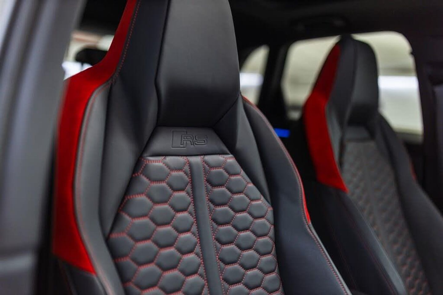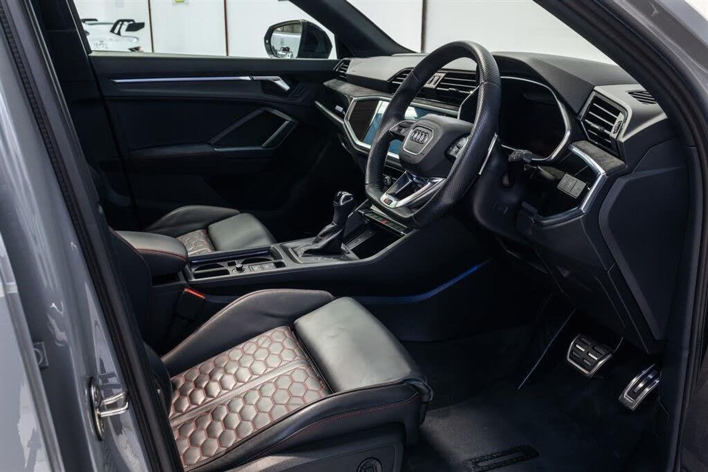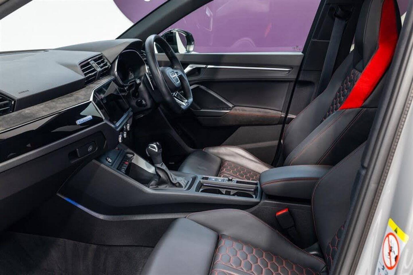 2 USB-C Ports with Charge and Data Functions,21in Alloy Wheels - 8.5J 5-V-Spoke - Polygon Design in Black,4-Way Electric Lumbar Support,6-Airbag System,Adjustable Rear Seat Bench-Backrest with Centre Armrest and Cupholder,Advanced Key,Aluminium Look Interior Elements,Ambient Lighting Pack,Anti Theft Locking Wheel Bolts,Anti-Theft Alarm,Audi Beam,Audi Connect Infotainment Services Plus including Amazon Alexa Integration (3 Year Subscription From New),Audi Connect Safety and Service - e-call,Audi Drive Select,Audi Pre-Sense Basic,Audi Pre-Sense Front with Pedestrian and Cyclist Recognition,Audi Smartphone Interface includes Wireless Apple CarPlay,Audi Sound System,Audi Virtual Cockpit - 12.3in High Resolution LCD Display,Auto Dimming and Frameless Rear View Mirror,B and C-Pillar Trim in High-Gloss Black,Black Roof Rails,Black Styling Package,Bluetooth Interface,Body Coloured Rear Spoiler,Camera-Based Traffic Sign Recognition,Cloth Headlining in Black,Cruise Control System with Speed Limiter,DAB Digital Radio,Detail in Dashboard Around the MMI Touch Colour Display in Glass Look - Black with Surround in Aluminium Look,Door Mirrors - Electrically Folding - Adjustable and Heated with Integrated LED Side Indicators and Kerb-view Function for Passenger Side,Dual-Zone Electronic Climate Control,ESC - Electronic Stabilisation Control inc ABS - ASR and EDL,Electric Windows - Front,Electrically Adjustable Front Seats,Electromechanical Parking Brake,Electronically Operated Child Locks,Exterior Mirror Housings in Black,First Aid Kit and Warning Triangle,Flared Wheel Arches - by 10mm,Flat Slits above Singleframe Grille,Front Centre Armrest,Front RS Sports Seats,Front Spoiler Blade - Side Blades - Inserts on Door Trim Strips and Diffuser Insert in Matt Aluminium Look,Front and Rear Floor Mats,Headlights Washers,Heated Front Seats,Hill Descent Control,Hill Hold Assist,ISOFIX Child Seat Mounting for the Front Passenger Seat with Front Passenger Airbag Deactivation and ISOFIX Child Seat Mounting and Top Tether for the Outer Rear Seats,Illuminated Door Sill Trims with RS Q3 Logo at Front,Inlays - Piano Black,Interior Elements in Black Alcantara,LED Headlights with LED Daytime Running Lights and Rear Indicator with High Beam Assist,LED Rear Lights,Lane Departure Warning,Light and Rain Sensor,Luggage Compartment Sill Protection in Stainless Steel,MMI Navigation Plus with High Resolution 10.1in Touchscreen Colour Display,Non-Smoking Package,Panoramic Glass Sunroof,Parking System Plus - Front and Rear Sensors,Pedals in Stainless Steel,Power Operated Tailgate,Privacy Glass - Dark-Tinted Rear and Rear-Side Windows - From B-Pillar Backwards,Progressive Steering,RS Brake System with Brake Calipers in Black,RS Flat Bottomed Leather Multifunction Steering Wheel,RS Specific Front and Rear Bumpers,RS Sports Exhaust System,RS Sports Suspension,Radiator Grille with Honeycomb Design in Gloss Black,Seat Belt Monitoring,Tool Kit,Tyre Pressure Warning Light,Tyre Repair Kit,Voice Control System with Natural Language Interaction,Windscreen in Acoustic Glazing,Comfort and Sound Package,Nardo Grey,Leather-Alcantara - Black with Express Red Stitching Honeycomb Quilted Design