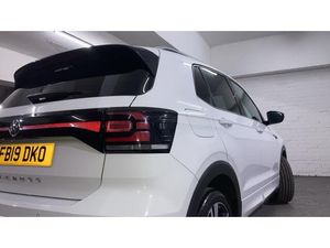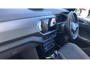Air Conditioning, Climate Control, Cruise Control, Satellite Navigation, Alloy Wheels, DAB Radio, Bluetooth, Parking Sensors, Low Mileage, USB, Diamond Cut Alloy Wheels& Auto Lights, Front + rear carpet mats, Heated rear window, Volkswagen roadside assistance, We Connect Go Dongle, Power assisted speed sensitive steering, Stop/start system, Warning sound and light for doors and tailgate open, Automatic dimming interior rear view mirror, Race decorative inserts in dash and doors, Battery regeneration during braking, Premium USB cable for Apple or Android smartphone compatibility, Body colour door handles, Front fog lights with static cornering function, 2 Zone electronic climate control with automatic air recirculation, Height/reach adjust steering wheel, Interior light with delay, R Line styling pack - T-cross, Front seat side impact airbags, 60/40 split folding rear seat backrest, Child security locks in rear doors, Illuminated vanity mirror