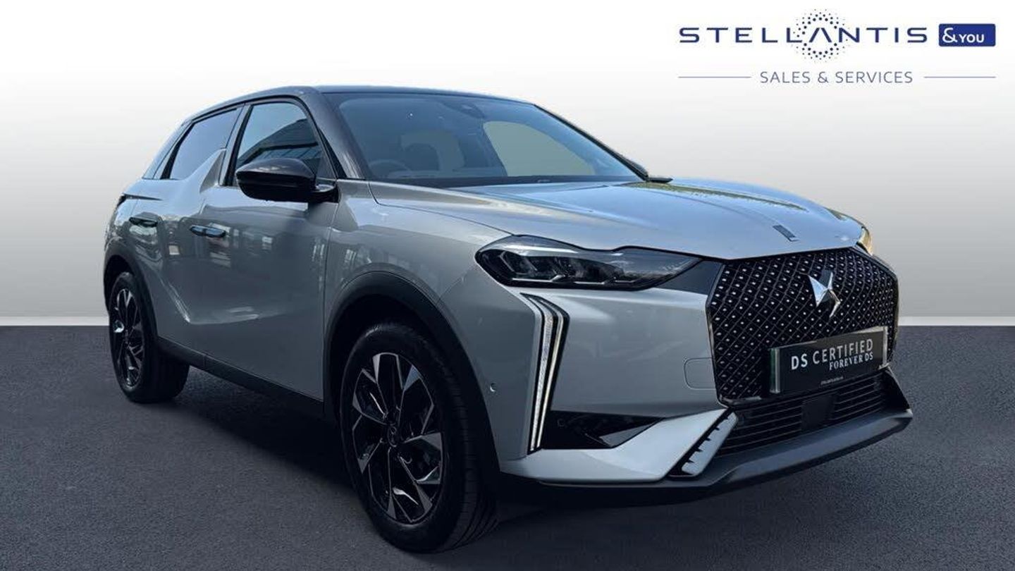 10.3in HD Touchscreen, 12V Socket, DAB Digital Radio, DS Connect Box Emergency and Assistance System, DS Iris System - 3D Connected Navigation - Natural Voice Recognition - Bluetooth Connectivity - Over-the-air Updates, Front USB-C Port, Mirror Screen with Apple CarPlay and Android Auto with Wireless Connection, Rapid Charging Capability - 100kW, Rear USB-A Port, Stereo System - Includes Eight Loudspeakers, TomTom Speedcam - Danger Zones (3 Year Subscription From New), Wireless Charging for Smartphone, Blind Spot Monitoring System, Cruise Control with Speed Limiter, Drive Mode Selector - Eco-Normal and Sport, Front and Rear Parking Sensors, Lane Departure Warning, Multi-Function On-Board Trip Computer, Reversing Camera - 360 Degree Vision, Tyre Pressure Monitoring Sensors - Indirect, 18in Alloy Wheels - Nice Diamond-Cut, Acoustic and Tinted Windscreen, Brilliant Black Front Grille with Chrome Accents - Black DS Wings and Chrome DS Emblem, Brilliant Black Rear Tailgate Trim and Rear Light Surround, Dark Tinted Acoustic Rear Windows with Heated Rear Windscreen, Dark Tinted Rear Windows, Door Mirrors - Electrically Adjustable - Tinted - Power Folding and Heated, DS 3 Inscription - Chrome Finish - Located on Tailgate, DS Emblem - Chrome Finish - Located on Tailgate, E-TENSE Inscription - Chrome Finish - Located on Tailgate, Flush Fitting Door Handles in Chrome, Front and Rear Side Windows - Electric- One-Touch -Pinch Protection, Front Ventilated Disc Brakes - Rear Disc Brakes, Gloss Black Door Mirrors, Locking Wheel Nuts, Tyre Repair Kit, Automatic Lights, DS LED Rear Light, High Beam Assist, LED Daytime Running Lights, LED Headlights, 7in Digital Instrument Cluster, Automatic Air Conditioning, Automatic Windscreen Wipers, Black Leather Steering Wheel and Leather Covered Airbag, Boot Lighting, Cloth Sunvisors with LED Courtesy Mirror and Ticket Holder, Dashboard Facia Decor - Black Alcantara, Door Panel Decor - Black Alcantara, Door Pockets - Front - Includes Bottle Storage up to 1.5 Litres, Door Pockets - Rear - Includes Bottle Storage up to 0.5 Litres, Engine Start Button - Gloss Black and Chrome with Clous De Paris Embossing, Front and Rear Floor Mats, Front and Rear LED Interior Reading Lights, Front Central Armrest - Includes Storage, Front Central Armrest - Isabella Mistral Black Leather Effect, Front Cup Holder x2, Front Footwell with LED Lighting, Front Seats - Headrest x2 Mechanical Height Adjustment, Front Seats - Manual Longitudinal-Height and Backrest Angle Adjustment, Front Seats - Premium Design with Comfort Foam and Padding - Includes Map Pocket, Gearbox Selector - Basalt Black Leather with Satin Chrome and Piano Black Trim, Headlining - Light Grey, Heat Pump, Interior Grab Handles - Damped, Lower Dashboard Metal Work Detailing - Satin Chrome - Clous De Paris Embossing, Programmable Heater with Temperature Regulator, Rear Seats - 1-3 2-3 Foldable Back Rest, Rear Seats - Headrests Height Mechanical Adjustment, Rear Seats - Two Rear ISOFIX Mounting Points, Rear View Mirror - Frameless - Electrochrome, Steering Column Mounted Gearbox Paddles, Steering Wheel - Reach and Rake Adjustment, Stop and Start Function, Sunvisors with LED Lighting, 11kW On-Board Charger, Accelerated Charging Cable - Type 2 - Mode 3, Intelligent Speed Adaptation, Airbags - Adaptive Driver and Front Passenger Airbags - includes Passenger Airbag Deactivation Function, Airbags - Driver and Front Passenger Side Airbags - Optimized Thorax Protection, Airbags - Front and Rear Curtain Airbags - Head Protection for Side Impacts, Airbags - Second Row Side, Alarm - Covers Perimeter - Interior of Vehicle and Tow-Away Instances, Automatic Door Locking While Driving, Automatic Rear Wiper in Reverse, Child Lock Function - Covers Rear Windows and Doors, EBD - Electronic Brakeforce Distribution, Electric Parking Brake, Emergency Braking System - Up to 52mph, ESP - Electronic Stability Programme, Hill Start Assist, ISOFIX Mounting Points - Front x1 - Passenger Seat includes Top Tether, ISOFIX Mounting Points - Rear x2 - Outer Rear Seats includes Top Tether, Keyless Entry and Start - Includes Proximity Detection, Lane Keeping Assist, Passenger Detection System - Seat Cushion Mounted Pressure Sensors - Illumination in Roof Control Panel if Belt Unfastening Detected, Remote Control Central Locking with Deadlocks, Seatbelts Front - Three-Point Retractable Seatbelts with Pre-Tensioners and Progressive Load Limiters, Seatbelts Rear - Three-Point Retractable Seatbelts - with Pre-tensioners and Load Limiters to Outer Rear Seats, Speed Limit Recognition and Recommendation
