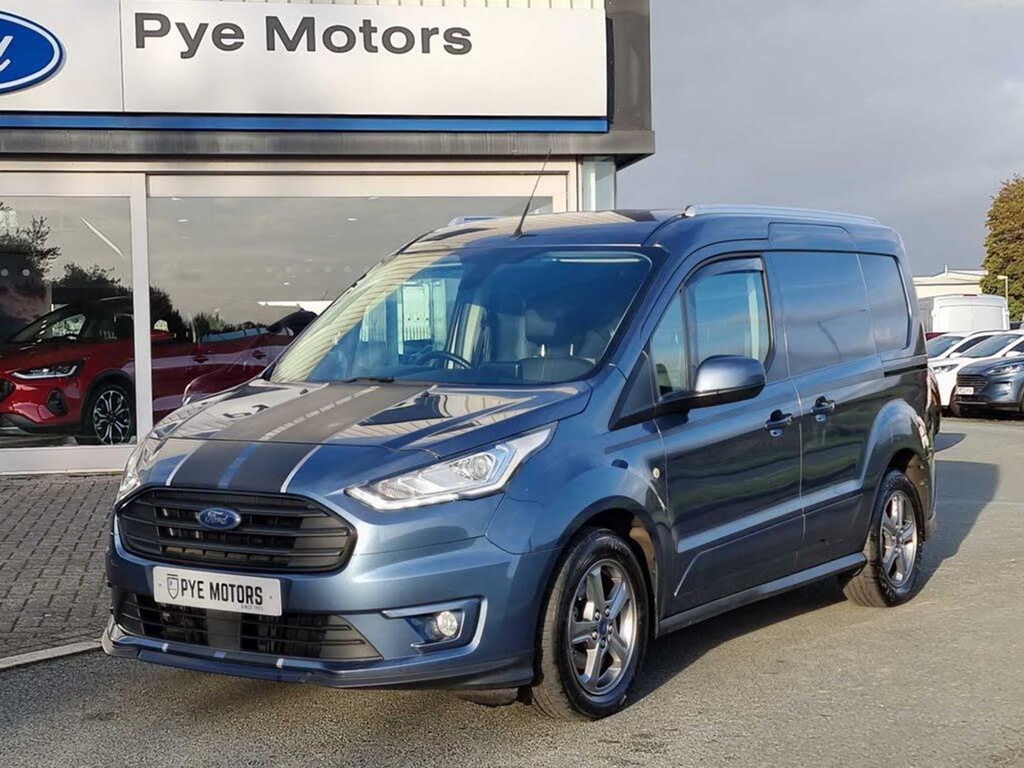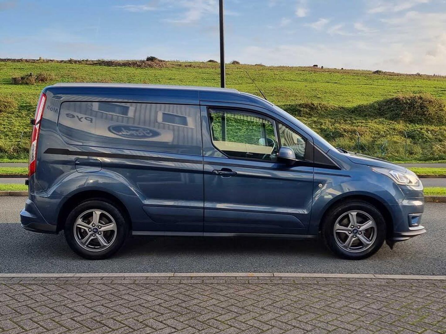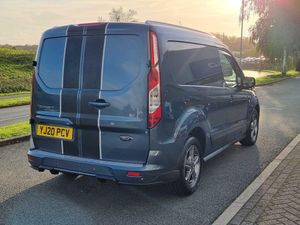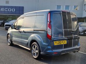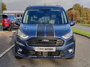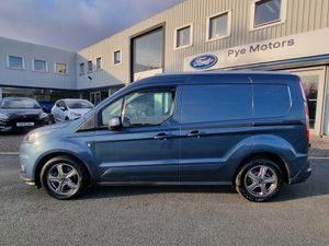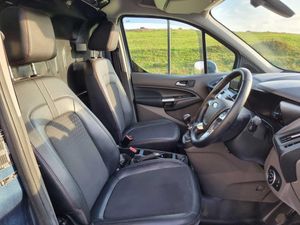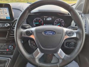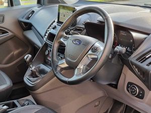 Easy fuel capless refuelling system, Ford Eco mode, PAS, Reverse parking sensor, Trip computer, Steering wheel mounted audio controls, Active grille shutter, Automatic lights and wipers, Body colour side protection mouldings, Body coloured door handles, Body coloured door mirrors, Body coloured front bumper, Electrically folding and heated door mirrors, Front electric windows with one touch facility, Front fog lights with cornering function, Front mud flaps with rear wheel arch air deflectors, Quickclear heated windscreen, Roof rails, 4 way adjustable passenger seat, 8 way adjustable drivers seat, Cargo area tie down loops, Dual fold flat passenger seat with storage box, Dual zone electronic automatic temperature control, Dynamo partial leather upholstry, Easy clean floor, Glovebox with lid, Heated front seat, Interior roof rack / Interior Overhead stowage, Leather steering wheel, Load box LED lights, Part leather upholstery, Plastic cargo area lining, Reach and rake adjustable steering column, Sport styling pack - Transit Connect, Driver seatbelt reminder, Driver's airbag, 2nd remote key, Configurable Unlocking, Immobiliser, Keyless start, Perimeter alarm, Remote central double locking, Thatcham category 1 alarm, ABS + EBD, Auto start/stop system, ESP + EBA, Heavy duty battery, Hill start assist, 16" 5 spoke Titanium design alloy wheels