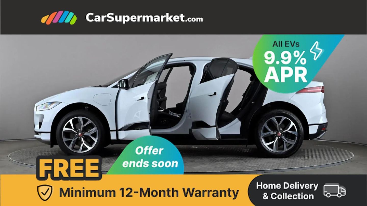 Adaptive cruise control with steering assist,Android Auto,Apple CarPlay,Blind spot assist,Bluetooth connectivity,Brake pad wear indicator,Clear exit monitor,Driver condition monitor,InControl remote,Interactive driver display,Lane keep assist,Low power mode,Outside temperature gauge,Push button starter,Range for route,Rear collision monitor,Rear traffic monitor,Software over the air,Speed proportional electronic power assisted steering (EPAS),Start up sequence with movement in dials and lighting,Traffic sign recognition with adaptive speed limiter,Trip computer,Voice control system,11kW 3 phase AC onboard charger,Active sound design,All Wheel Drive (AWD),Open differential with torque vectoring by braking,Public charging cable,Timed charging,10" PiVI pro duo,5x USB power sockets,AM/FM radio,Digital Audio Broadcast radio-DAB,Meridian surround sound system,Pivi pro connected,Pivi pro system,3 flash lane change indicators,Acoustic laminated windscreen,Active vanes,Animated directional indicators,Automatic headlight levelling,Body colour bumpers,Body coloured door mirror caps,Electric heated/power fold memory door mirrors with approach lights and auto dimming driver side,Electric windows with one touch open/close and anti trap,Fixed panoramic glass sunroof,Flush exterior door handles,Follow me home headlights,Gloss black front air cheeks,Gloss black front bumper insert,Gloss black grille pins,Gloss black rear bumper insert,Gloss black rear diffuser,Gloss black side cladding,Headlight power wash,Heated front windscreen,Heated rear window with timer,Heated washer jets,Jaguar script and leaper,LED tail lights,Matrix LED headlights with signature DRL,Privacy glass,Rain sensing windscreen wipers,Rear bike carrier preparation kit,Rear fog lights,Screw-in rear recovery eye,Solar attenuating rear windscreen,Solar attenuating windscreen,Tailgate spoiler,Variable front intermittent wipers,Winter wiper park position,12V power socket in loadspace,12V power sockets,3 rear headrests,40:20:40 split folding heated rear seats with centre armrest,Air quality sensor,Electric cabin pre-conditioning,Front storage compartment,Heated steering wheel,Hooks in loadspace,Interior front door handles with separate locking switches,LED rear reading lights,Luggage tie downs in loadspace,Multifunction steering wheel,Overhead lighting console,Overhead stowage for sunglasses,Rear centre armrest,Split rim leather steering wheel,Storage under rear seats,Sunvisors with illuminated vanity mirrors,Black exterior pack - I-Pace,Online pack with Data plan - I-Pace,3x3 point rear seatbelts,6 airbags - Driver/front passenger airbags, front and rear curtain airbags and front side airbags,ABS,All surface progress control (ASPC),Anti-whiplash front headrests,DSC - Dynamic Stability Control,Electric parking brake (EPB),Emergency brake assist,Emergency braking,Enhanced brake regeneration,Front and rear seatbelt reminder,Hill launch assist,Low traction launch,Power operated child locks,Tyre pressure monitoring system (TPMS),Global lock and unlock switch on driver door,Intrusion sensor and alarm,Keyless entry,Lock only switch on front passenger door,Locking wheel nuts