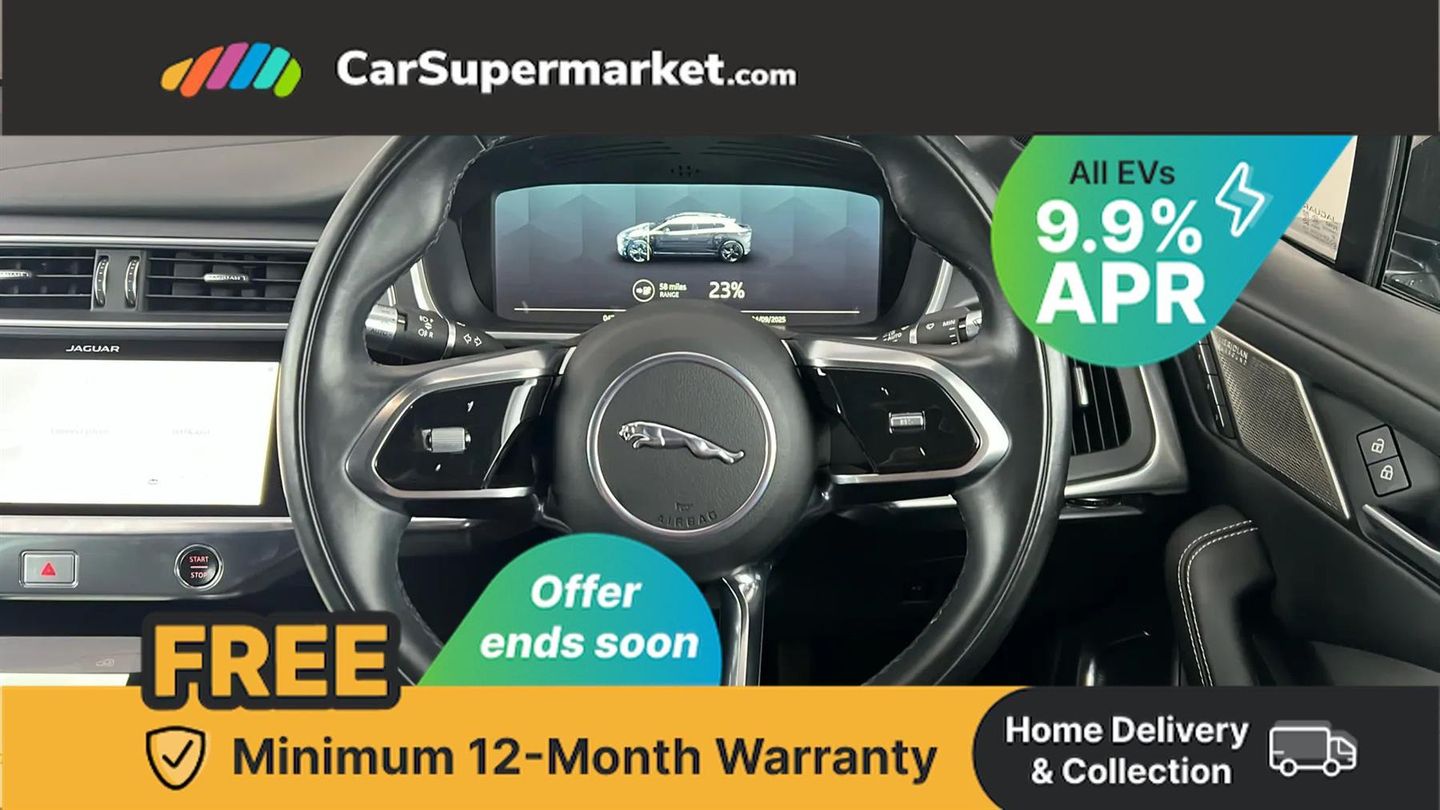 Cruise Control, Adaptive Cruise Control, Android Auto, Apple CarPlay, Blind Spot Monitoring, Bluetooth, Traffic Sign Recognition, Privacy Glass, Heated Steering Wheel, Keyless Entry;This 2022 Jaguar I-PACE 400 HSE Black boasts a clear vehicle history and a recent service in September 2025 at 47,287 miles, with its MOT valid until January 2026. As an electric vehicle with Four Wheel Drive, it offers a compelling blend of performance and practicality. The HSE Black trim level ensures a premium experience, complemented by notable features such as Bluetooth connectivity, Blind Spot Assist, Adaptive Cruise Control with Steering Assist, a Heated Steering Wheel, and Android Auto integration.