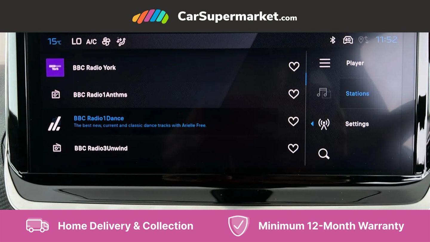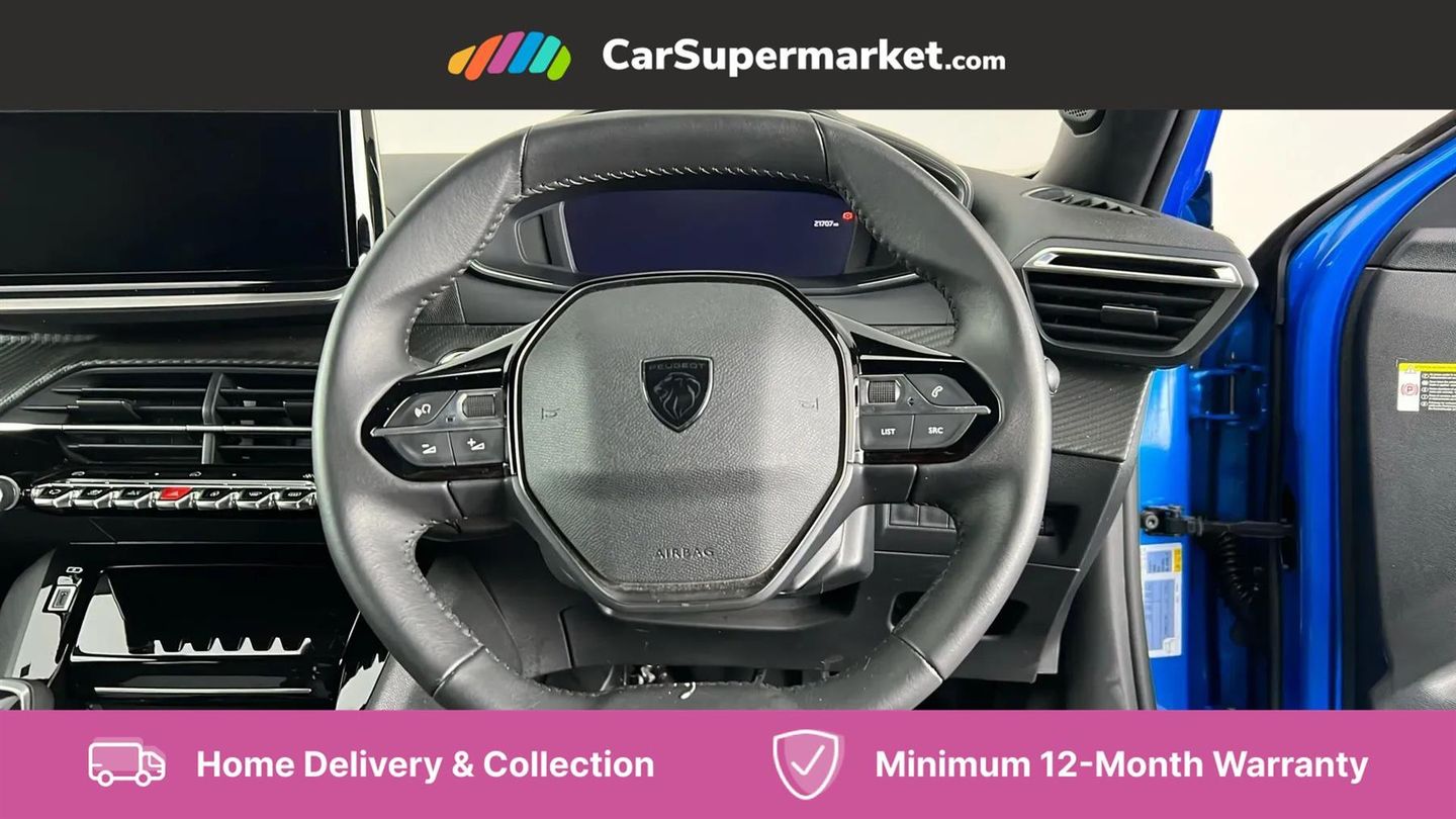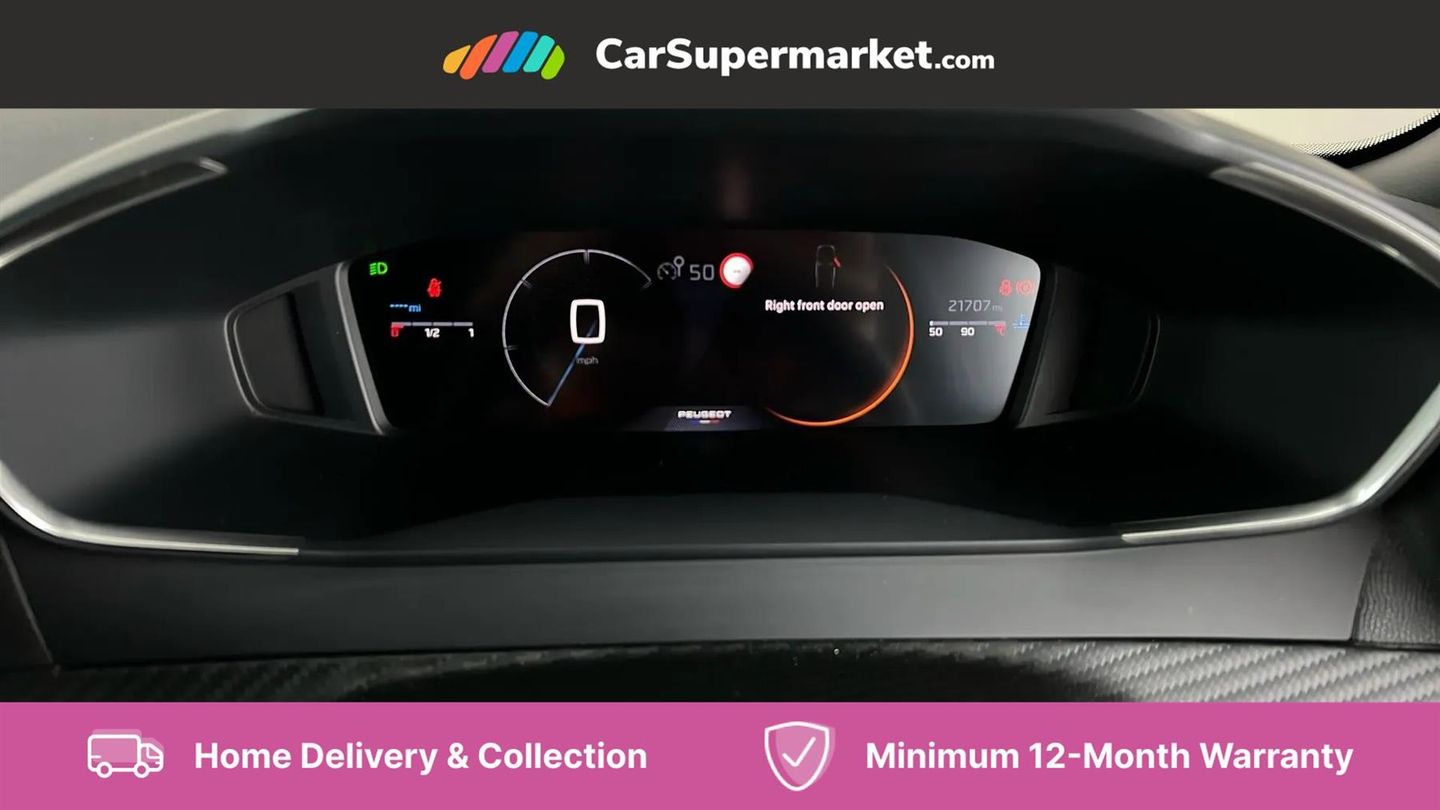 Bluetooth telephone facility,Driver attention warning,E-call,Exterior temperature indicator with ice warning,Front and rear parking sensors,Lane keep assist,Multi function trip computer,PEUGEOT i-Cockpit with 10" high definition capacitive touchscreen,PEUGEOT i-Cockpit with compact steering wheel,PEUGEOT i-Cockpit with configurable headup instrument panel,Programmable cruise control and speed limiter,Speed limit recognition and recommendation,Wireless mirror screen with apple carplay and android auto,Petrol Particulate Filter,1x USB-C socket in rear and 1x USB-A socket in rear,2 USB-C ports in the front,6 speakers radio with mp3 compatible,DAB Radio (Digital Audio Broadcasting),2 X Rear number plate lights,Automatic hazard light activation upon heavy brake application,Black front wing trim with gloss black detail,Body coloured exterior door handles,Colour coded rear roof spoiler,Colour coded roof,Dark tinted rear side and tailgate windows,Diamond black mirror shells,Eco LED headlights,Electric, heated, and power folding door mirrors,Electrochrome rear view mirror,Front bumper - Meteor grey lower trim,Gloss black finish on B pillar,Gloss black rear cluster connecting strip,Gloss black roof bars,Headlights left on audible warning,LED daytime running lights with distinctive 3 claw signature,LED side indicator lights integrated into door mirrors,LED third brake light,Model designation badges front and rear,One touch electric front/rear windows with pinch protection,Radiator grille - Body coloured top edge trim,Radiator grille - body coloured vertical chequered grille,Rear full LED 3D peugeot signature claw effect lights with daylight function,Rear reversing lights,Rear side wing doors,Rear windscreen wiper triggered automatically in reverse gear,Tailgate with heated rear windscreen and wiper blade,Wheel arch extensions,1/3 to 2/3 split folding rear seats,12V socket,3 seat bench in 2nd row,Automatic air conditioning with pollen and active carbon filter,Central front armrest with storage compartment,Driver and front passenger comfort seats,Driver seat manual adjustment - height, longitudinal and back rest angle,Electric power steering with reach and rake adjustable steering column,Front LED interior light with 2 reading spotlights and rear interior light with timer,Front passenger seat manual adjustment - height, longitudinal and back rest angle,Gear lever top - manual in full grain leather,Gear shift indicator,High centre console,Leather steering wheel,Multifunction steering wheel,Roof lining - Mistral black,Seatbelt unfastened on the move audible and visual alert for front and rear seats,Single front passenger seat,Tri material cloth/leather effect upholstery,Two position modular boot floor,Visibility pack - 2008,2x 2nd row ISOFIX child seat mountings,ABS (Anti-lock Braking System) with EBD (Electronic Brakeforce Distribution) and EBA (Emergency Braking Assistance),Active safety brake with night function/cyclists/pedestrians,Adaptive driver and front passenger airbags with passenger airbag deactivation function,Child locking functionality on rear doors,Driver/front passenger side airbags,Electric parking brake,ESP (Electronic Stability Program) + Hill Start Assist,Front and rear curtain airbags,Front and rear disc brakes,Front and rear three-point retractable seatbelts, with force limiters,Front optimised safety headrests and rear retractable headrests (x3), height adjustable,Tyre pressure sensor,Automatic door locking when moving off,Deadlocks,Electronic code immobiliser,Thatcham category 1 alarm,Carbon effect Dashboard, front and rear door panel finish,17" Karakoy diamond cut alloy wheels