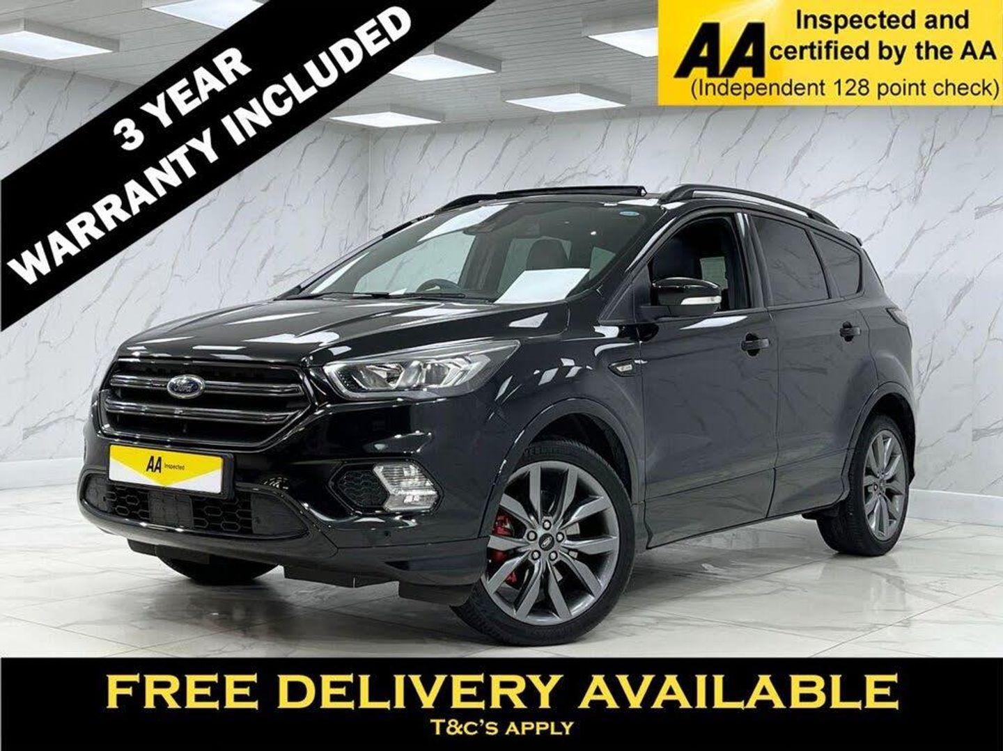This 2019 Ford Kuga T ST-Line Edition offers excellent peace of mind with a substantial 36 month warranty and an MOT valid until June 2026. This stylish SUV is equipped with a 1.5 litre petrol engine and meets Euro 6 emissions standards. Convenience is key with the Ford Key Free System, allowing for keyless entry and keyless start, while the Enhanced Active Park Assist, including front and rear sensors, makes parking effortless. Enjoy a comfortable cabin environment with Dual-Zone Electronic Automatic Temperature Control, and experience an open and airy feel thanks to the power opening panoramic roof. The ST-Line Edition trim level signifies a higher specification, indicating this Kuga offers a more premium experience compared to standard models. The inclusion of rear parking sensors further enhances its usability, providing added confidence when manoeuvring. This Ford Kuga is designed to provide a comfortable and convenient driving experience for everyday journeys. 3 YEAR WARRANTY INCLUDED WITH THIS VEHICLE! Part Exchange Welcome. All Majors Cards Accepted. We Have Finance Available. A Wide Range of Warranties. We Also Offer Low Cost, Nationwide Delivery Available From £1.50 a Mile. **Every endeavour is made to ensure specifications and descriptions are correct. Due to model changes specification may vary. Phone for details. MPG figures shown are government official figures.**