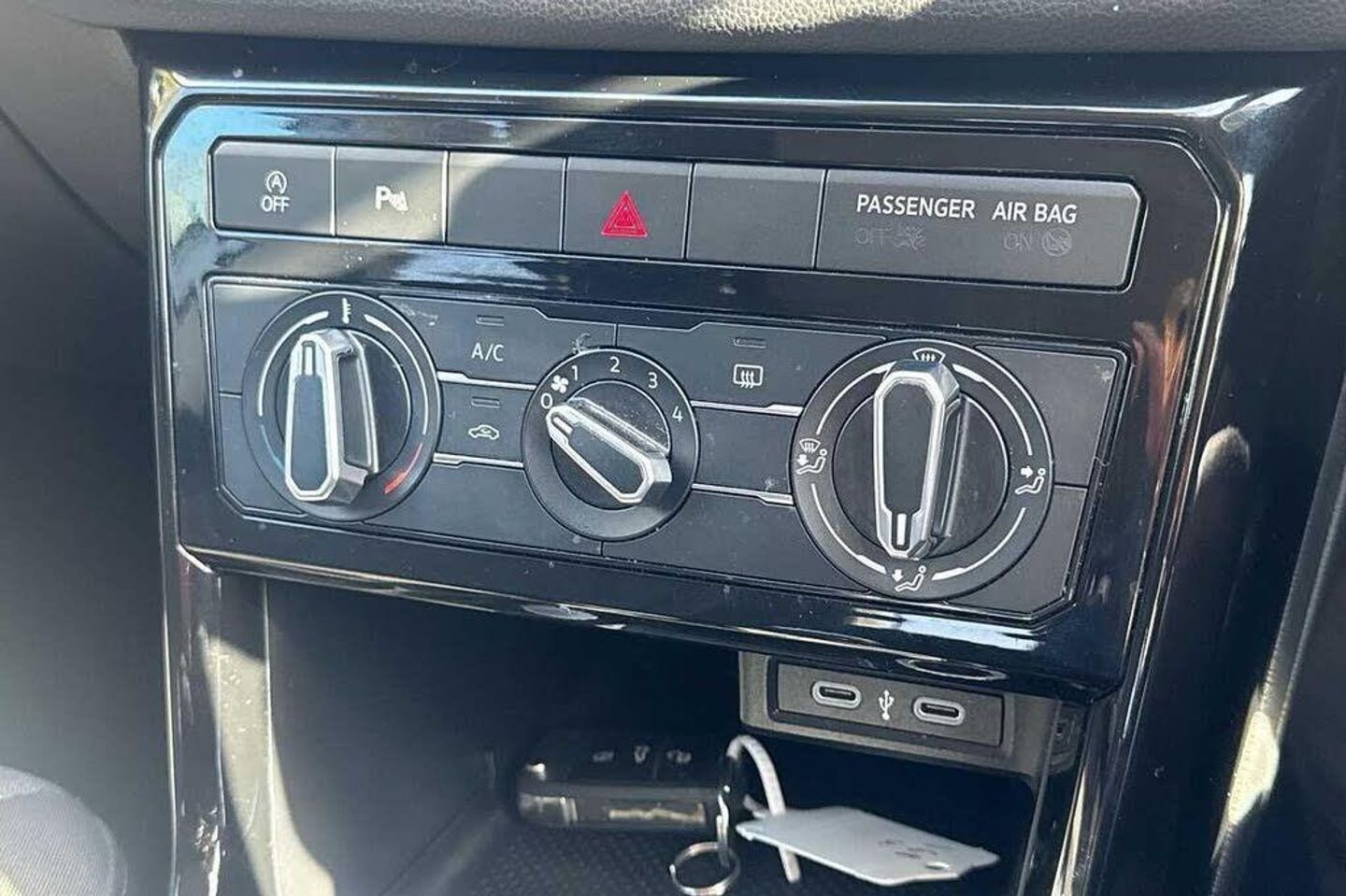 Metallic - Reflex Silver, Front and rear electric windows, Heat insulating and laminated safety glass windshield, Heat insulating darkened glass in side and rear windows, Rain sensor, Rear tinted glass 65% approx light absorbing from B pillar backwards, Rear window wiper with intermittent control, Black roof rails, Body colour door handles, Body coloured bumpers, Galvanised body, Lower door sills and door pillars in black, Rear side wing doors, Rear window aerial, Reflectors in all doors, Scuff plates, Tailgate with integrated roof spoiler, Automatic hazard lights activation under emergency braking, Automatic headlight control with LED separate daytime running light and coming home and leaving home feature, Dynamic headlight range control with self adjusting whilst driving, High Beam Assist, automatic sensing for switching between dipped and main beam, LED rear combination lights, LED third brake light, Rear fog light on one side, reversing light on both sides, Anti-lock Braking System (ABS) with Hydraulic Brake Assist (HBA), Automatic post collision braking system, Disc brakes in front, Drum brakes in rear, ESC with EDL and ASR (traction control), Extended and predictive pedestrian/cyclist protection, Hill start assist, Volkswagen roadside assistance, Adaptive cruise control including front assist, forward collision warning, autonomous emergency braking, speed limiter, Advanced driver attention and drowsiness monitor, Blind spot monitoring, Dynamic road sign display, Front and rear parking sensors, Multifunction front facing camera for distance control, Power assisted steering, Rear view camera, Semi-automated driving assistance, travel assist including lane keeping system Lane Assist and emergency assisst, Automatic dimming interior rear view mirror, Body colour door mirrors, Electric folding door mirror, adjustable, heated with front passenger exterior mirror lowering function, Exterior mirrors convex on the left and aspherical on the right, 3 point outer rear seat belts with ECE label, 3 Point seatbelt for centre rear seat, Driver and front passenger safety-optimised head restraints, Drivers and Front Passengers airbags with front passengers airbag deactivation switch, Front and rear passenger curtain airbag system including front side airbags, Height adjustable front 3 point seatbelts + pretensioners, Pre crash preventive occupant protection, Proactive passenger protection system in combination with front assist, Rear door child safety locks, Rigid safety cell with front and rear crumple zones, Single tone horn, Tyre pressure loss indicator, E-Sim card for online connectivity, eCall emergency call system, Preparation for We connect and We connect plus, Wireless Car net app connect with Apple CarPlay, combined functionality of Apple CarPlay/Android Auto and MirrorLink, 2 USB C ports in front, 2 USB charging sockets on the centre console in the rear charging capacity upto 45W, Diversity antenna for FM reception, Music playback - MP3, WMA and AAC files, Radio, 'Lights On' Reminder warning buzzer, Car information display, Low washer fluid warning light, Multifunction computer with visual gear change recommendation for fuel consumption, Operating permit alteration, Preparation for navigation system with media and internet package, Speedo, rev counter, electronic odometer, trip, service interval display, exterior temperature and fuel gauge, Warning sound and light for doors and tailgate open, Warning sound and light for front seatbelts unfastened, Misfuel prevention device, Start-stop system with battery regeneration (recuperation - energy recovery during braking), Dust and pollen filter, Heating and fresh air system with 4 stage blower, 12V Accessory socket in centre console, Ceramique roof lining, Cloth upholstery, Door and side trim panel, Drawer under drivers seat, Front centre armrest with storage compartment, Glove compartment door with light, Height/reach adjust steering wheel, Leather gearshift handle, Leather wrapped m