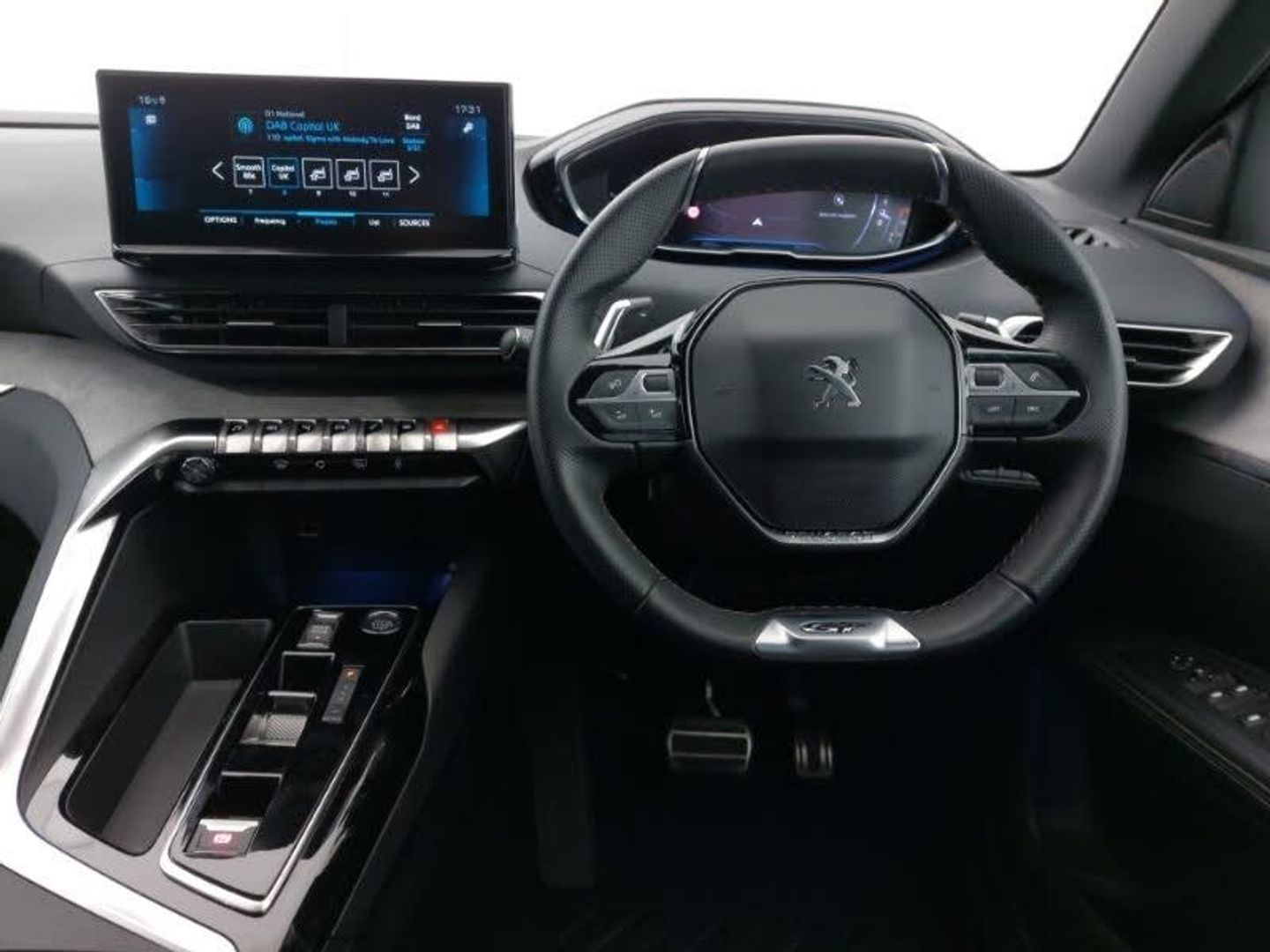 Speed limit recognition and recommendation, Rear passenger USB charging sockets (x2) (type A), Rear parking sensors, Peugeot i-cockpit with configurable 12.3" headup digital instrumental panel and compact sports steering wheel, Lane departure warning system, Drive mode selector (Eco, Normal and Power), Bluetooth telephone connection, Apple car play and Android auto, 3D connected navigation with 10" HD touchscreen + voice recognition system, Bi Tuner radio including DAB, Auto self levelling headlights, LED daytime running lights in fang style, Automatic dual zone climate control, Isofix child seat fittings x 3 in the second row, Visibility pack - 5008 GT, Drive assist plus package with front parking sensors - 5008