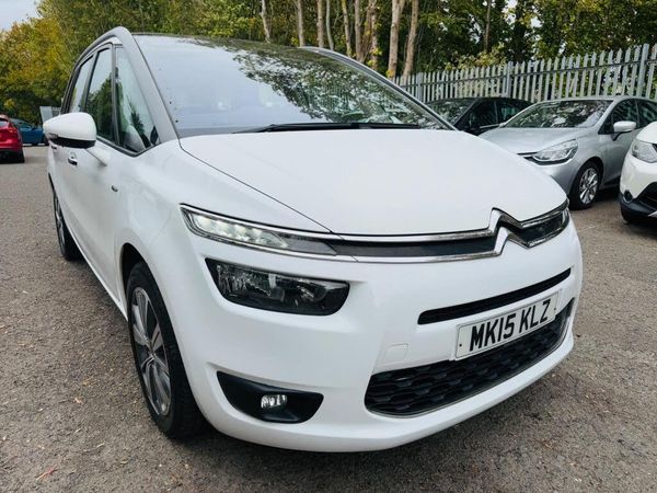 WHITE, SERVICE HISTORY , FINANCE AVAILABLE, PARKING CAMERA, 7 SEATS FAMILY CAR, ONLY ONE FORMER KEEPER, SPARE KEYS, CRUISE CONTROL, SUPERB DRIVE, VERY ECONOMICAL, ALLOY WHEELS, CLIMATE CONTROL, VERY WELL LOOKED AFTER, VERY CLEAN IN AND OUTThis 2015 Citroen Grand C4 Picasso e-HDi Exclusive boasts exceptionally low mileage for its age, having covered just 40,415 miles, and benefits from an MOT valid until February 2026. This 7 seater, 1.6 litre diesel model comes with a clear vehicle history check, offering peace of mind. Its Exclusive trim level includes desirable features such as a chrome side signature, a reversing camera with rear parking sensors for effortless parking assistance, and automatic dual zone climate control for personalised comfort.The fuel economy of this Grand C4 Picasso is a significant highlight, achieving an impressive 71 miles per gallon, which is considerably better than many similar vehicles. Combined with its low CO2 emissions, this makes it an economical and environmentally conscious choice. The inclusion of Bluetooth media streaming further enhances the driving experience, allowing for seamless connectivity on every journey.-1 F/KEEPER+7 SEATS+P/CAM+AUTO