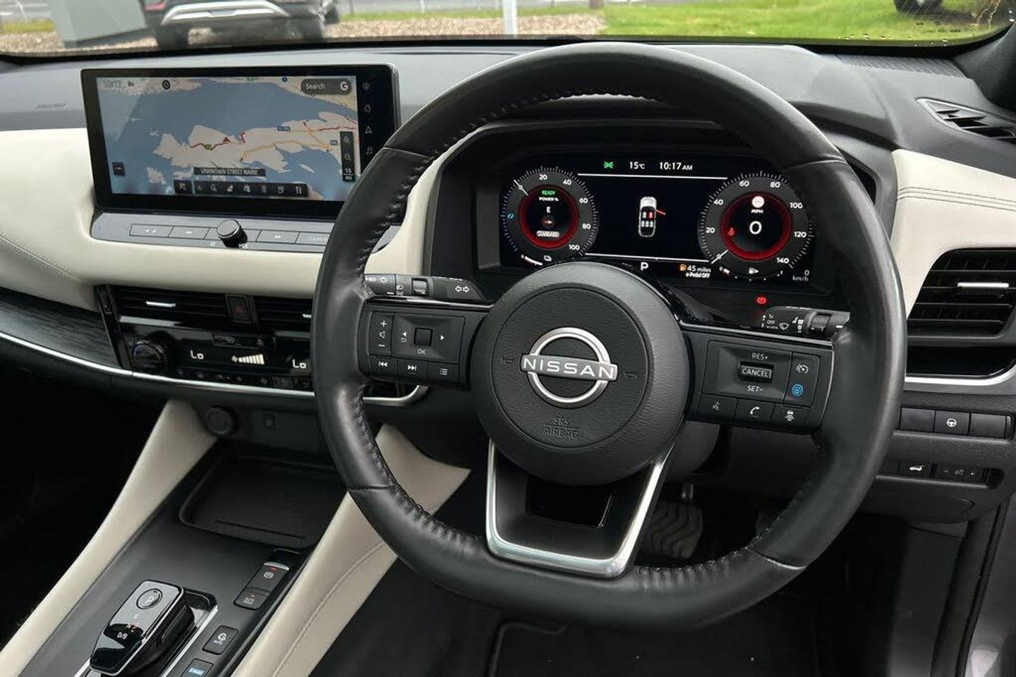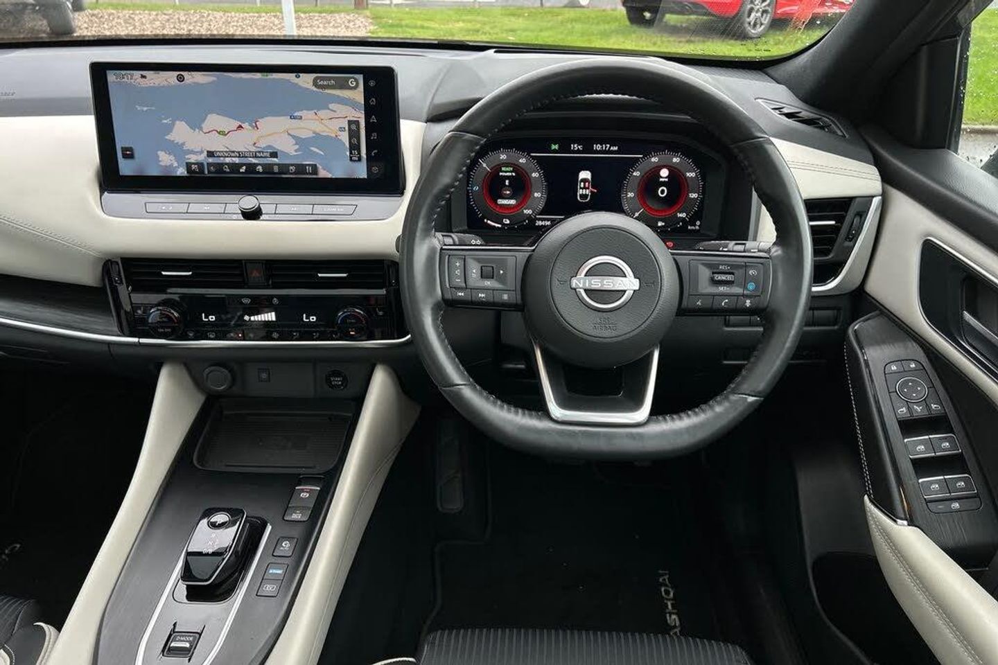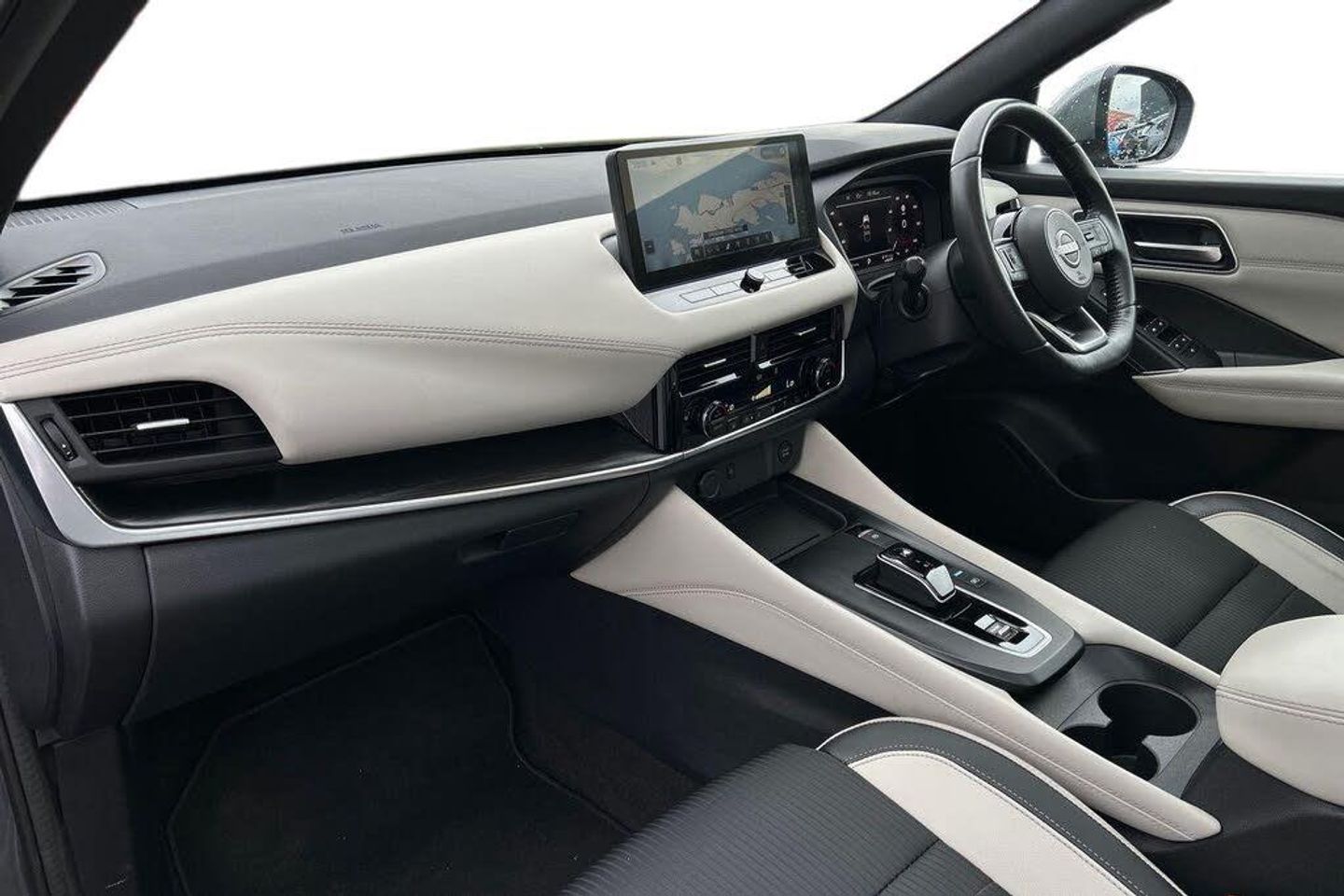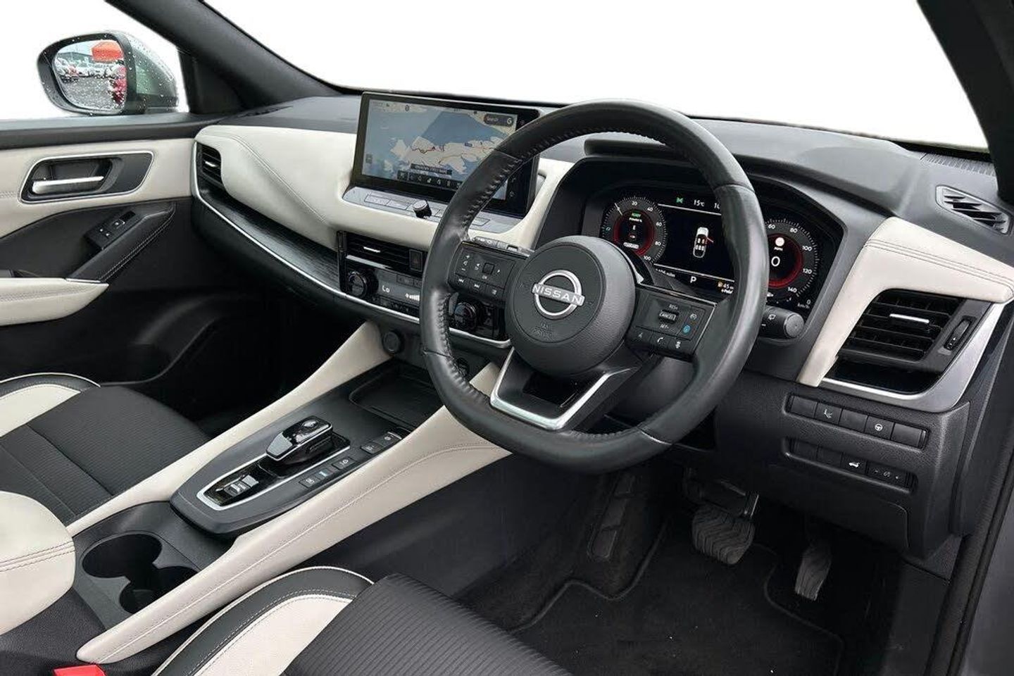 Advanced windscreen head up display, Android auto/Apple CarPlay (Wired), Blind spot warning, Drive modes (sport, normal, eco), Electric speed sensitive power steering, Emergency and breakdown call, Front and rear parking sensors, Full Digital 12.3" TFT Digital Combimeter, Google maps services - search, weather, 3D maps and Google street view, Hands free power tailgate, Idle stop/start system, Intelligent around view monitor, Intelligent Cruise control (ICC), Intelligent driver alert system, Intelligent forward collision warning, Intelligent lane intervention, Lane departure prevention, Lane departure warning system, Lane keep assist, Moving object detection, Nissan connect 12.3 inch touchscreen infotainment system, Nissan connect navigation, ProPILOT with Navi-Link, Push button starter, Rear cross traffic alert, Rear view camera, Remote control services - door locks, lights, horn and car locator, Telematics - notifications and connectivity services, TomTom live traffic services, Traffic sign recognition with legal speed adjustment, Trip computer, Virtual personal assistant and firmware over the air capability, Wireless apple carplay, Wireless charging pad, 6 speakers, AM/FM audio system with DAB, Bluetooth audio streaming, Front USB connections (Type-A and Type-C), Rear USB charging only ports (Type-A and Type-C), Auto dimming rear view mirror, Auto rear wiper when reversing, Automatic hazard signal with emergency stop signal, Body colour mirror caps, Body coloured door handles, Bodyside mouldings, Chrome side window finisher, Door handle with button, e-POWER badging, Electric auto folding door mirrors, Electrically adjustable and heated door mirrors with LED turn indicator, Follow me home headlights, Front and rear LED turning signals, Headlights auto levelling system, Intelligent auto headlights, LED daytime running lights, LED headlights with adaptive driving beam, LED rear lights, One touch front and rear electric windows with remote opening and closing, Partially body coloured bumpers, Privacy glass, Rear bumper with graphite insert, Rear reversing light (bulb lighting), Rear roof spoiler, Rear side wing doors, Rear styling plate, Shark fin antenna, Splash free rain sensing wipers, Super UV and infrared cut glass, Thermaclear heated windscreen, Three blink turn signal, 12v power socket in dashboard and luggage, 2x Rear coat hooks, 3 bench rear seats in 2nd row, 3 rear headrests, 4 folding assist grip, 6 Luggage hooks - 4 on floor, 2 on side, 60/40 split folding rear seat bench, Ambient lighting around centre console, Ambient lighting in front doors, Centre console storage tray, Chrome interior door handles, Cloth/syntech leather monoform upholstery, Dark black/blueish PVC wrapping, Dark headlining, Driver and front passenger sunvisors with illuminated vanity mirrors, Driver seat back pocket, Dual zone automatic climate control with pollen filter, e-POWER shifter, Electrically adjustable driver seat, Electrically adjustable lumbar support for driver, Front and rear door storage, Front centre console and armrest, Front cupholders x 2, Front door with bottle holders, Glovebox with light, Hard trunk cover, Heated front seats, Heated steering wheel, Height adjustable driver's seat, Height adjustable front headrests, Height adjustable passenger seat, Leather steering wheel, Luggage board system, Luggage space lighting, Manual lumbar support on passenger seat, Manually adjustable passenger (slide recline + lifter), Multifunction steering wheel, Passenger seat back pocket, Rear armrest with 2 cupholders, Rear door bottle holders, Single front passenger seat, Soft PVC kneepad, Steering wheel switches, Tilt/telescopic adjustable steering wheel, Two rear isofix child seat anchorage points with top tether, Welcome light and doors with console tray ambient lighting, Glass roof pack with roof rails - Qashqai, 3x3 point rear seatbelt pretensioners + load limiters, ABS with EBD and brake assist, Active brake limited slip, Auto hold function, Child locks on rear doors, Curtain and front side, far side airbags, Driver and passenger airbags, Driver, passenger and 2nd row rear seat belt reminder, Electronic parking brake, Front seatbelt pretensioners + load limiters, Height adjustable front seatbelts, Hill start assist, Intelligent blind spot intervention, Intelligent front emergency braking with pedestrian, cyclist recognition and junction assist, Intelligent rear automatic braking, Tyre pressure monitoring system, Vehicle dynamic control, Capless fuel filler, Engine immobiliser, Intelligent Key, Remote central door locking with deadlocking, Thatcham Cat.1 alarm, Interior instrumental panel C finisher, 19" Diamond cut alloy wheels, Tyre puncture repair kit