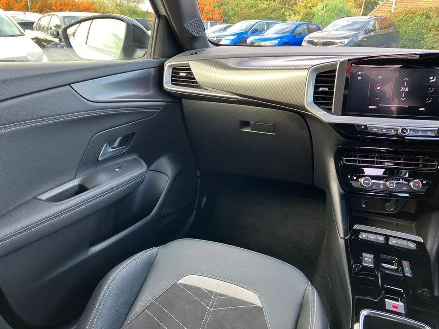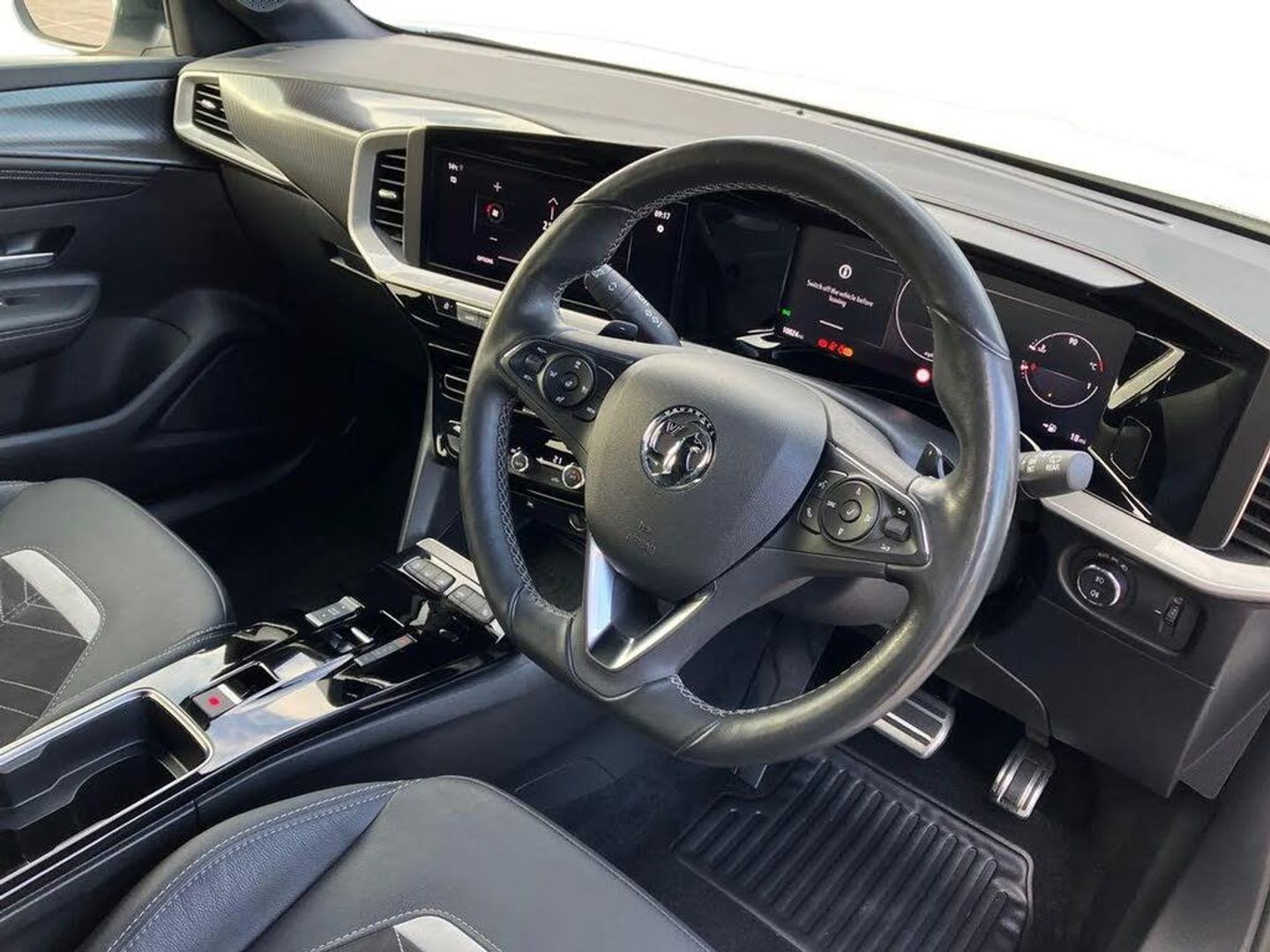 12" digital instrument cluster,Adaptive cruise control with speed limiter,Digital instrumentation with digital speedometer, rev counter, fuel and water temperature gauge,Driver drowsiness alert system,Driver information display with multi function trip computer, audio info, digital clock and outside air temperature with ice warning function,Engine start/stop button,EV information display,Extended traffic sign recognition,Front and rear parking distance sensors,Front camera and radar system,Lane keep assist system (LAS) with Lane departure warning system (LDWS),Lane positioning assist,Lights on audible warning,Panoramic rear view camera,Power assisted speed sensitive steering,RDS with traffic programme,Side blind spot alert and flank guard,Smartphone integration compatible with Apple CarPlay and Android Auto,Sports switch with engine sound enhancement,Start/stop system,Vauxhall connect with e-Call,8 speed automatic transmission,6 speakers,AM/FM stereo radio with 36 station presets,DAB Digital radio,Flexible Roof Mounted Radio Aerial,Front USB connection,Mobile phone portal - bluetooth connect, vehicle microphone, handsfree calls, SMS read out and reply, phone book access,Multimedia Navi Pro with 10" colour touchscreen,Steering wheel mounted controls,Two rear USB sockets,Adaptive brake lights,Auto high beam assist,Automatic headlamp levelling,Automatic lighting control with tunnel detection,Automatically dimming anti dazzle rear view mirror,Black door mirror housings,Black front and rear bumper inserts,Black Griffin logo and vizor frame,Body colour door handles,Body colour front and rear bumpers,Dark tinted rear side windows + tailgate window,Electric adjustable/heated/folding door mirrors + puddle lights,Electrically operated front and rear windows with safety auto reverse and one touch up/down facility,Hazard warning lights,Heated rear window+rear wash/wipe,Integrated black tailgate spoiler,IntelliLux Matrix LED headlights with adaptive forward lighting with anti glare beam,LED 3rd brake light,LED daytime running lights,LED front fog lamps,LED side repeat indicators,LED tail lights,Rear foglight,Rear side wing doors,Reversing light,Solar heat absorbing windscreen and windows,Two speed rain-sensitive windscreen wipers with variable intermittent wipe,Windscreen and side window demist vents,12V Accessory socket,3 seat bench in 2nd row,3 spoke flat bottomed leather effect steering wheel with satin chrome effect bezel,4 speed fan with illuminated controls,4 Way driver seat with lumbar and massage function,6 way manual adjustable driver fore/aft, up/down with reclining seatback,6 way manual adjustable front passenger fore/aft, up/down with reclining seatback,60/40 split folding rear seat,Air recirculation system,Alcantara/leather upholstery,Alloy sports pedals,Black headliner,Cabin particulate filter - removes dust, airborne particles and pollen,Centre console with two cup holders at front and one in rear,Chrome effect interior door handles,Door pockets with two litre capacity,Driver and passenger sun visors with vanity mirror,Electronic climate control (ECC),Four adjustable facia vents,Four load restraint lashing eyes,Front centre armrest with storage,Front head restraints,Front map reading lights,Front seat back storage pockets,Fully carpeted load area,Heated front seats,Heated steering wheel,Interior courtesy light,Interior tailgate handle,Luggage compartment cover,Luggage compartment lighting,Movable boot floor,Reach + rake adjustable steering column,Single front passenger seat,Steering wheel mounted paddle shift,Three height adjustable rear seat head restraints,Twin gas assisted tailgate struts,Black Pack with badge - Mokka,2x Isofix child seat fitting on outer rear seats,3x3 point rear seat belts,Anti-lock braking system (ABS),Child proof locks on rear doors,Cornering brake control,Deactivation switch for front passenger front and side impact airbags,Drag torque control,Driver and front passenger airbags, front seat side impact airbags, full size curtain airbags,Electronic brake force distribution,Electronic Stability Programme (ESP),Emergency brake assist,Enhanced automatic emergency braking with pedestrian detection,Forward collision alert at all speed,Hill start assist,Inertia reel lap and diagonal seatbelts for all seats,Seatbelt unfastened audible warning and warning light,Straight line stability control,Traction control,Tyre pressure monitoring system,Electronically protected audio equipment,Engine deadlock immobiliser,Freewheeling door locks,Key left in ignition audible warning,Keyless entry and start,Locking wheel nuts,Remote control central locking,Remote control ultrasonic security alarm system,Visible vehicle identification number,Black facia with silver trim insert,Instrument panel bar in polar silver,Light grey trim inserts on front doors,18" bi colour alloy wheels