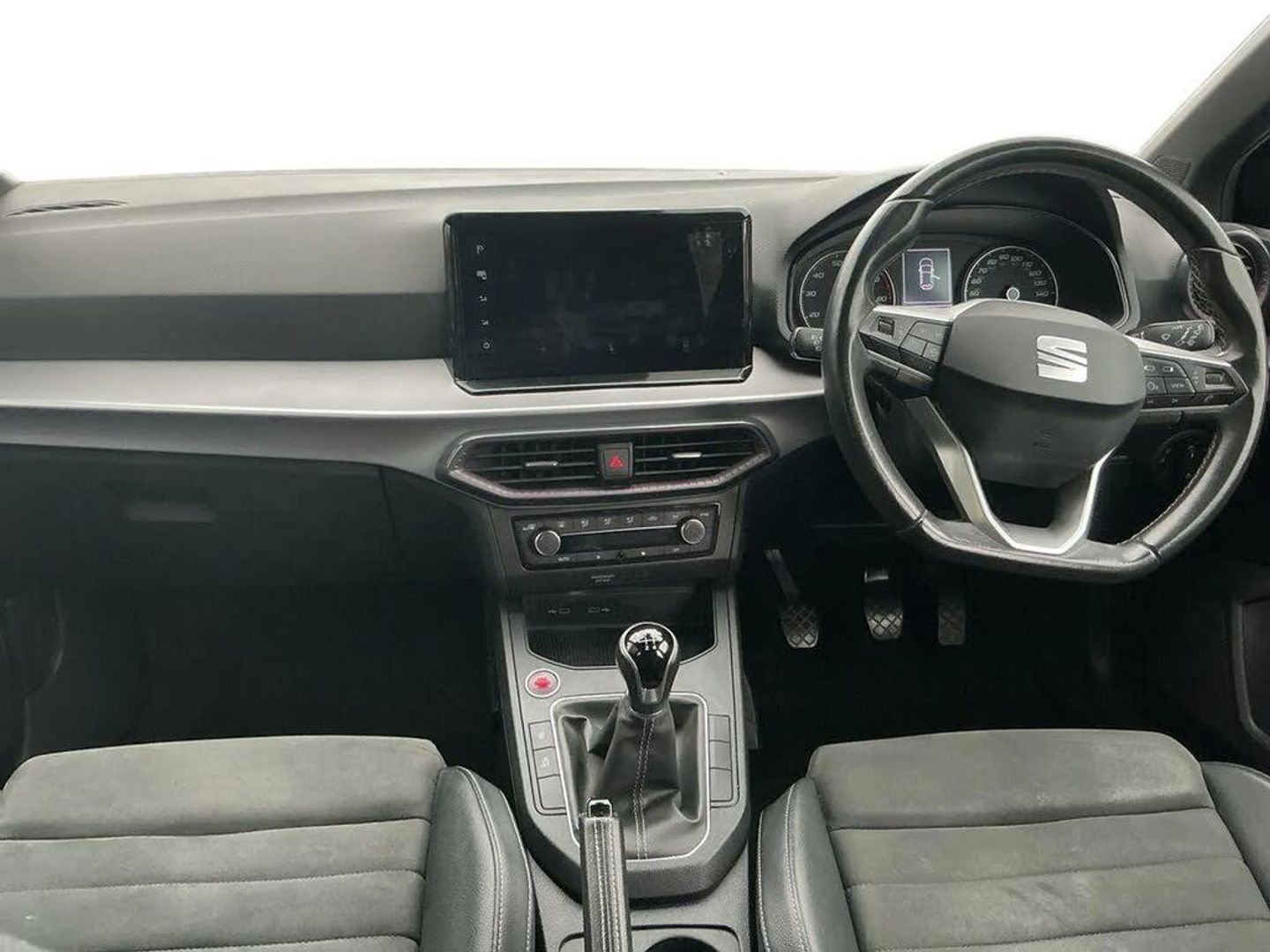 'Lights On' Reminder warning buzzer,8" Digital cockpit,9.2" touchscreen navigation system with type C USB socket, Voice control and DAB/AM/FM radio,Auto start and stop system,Bluetooth audio streaming with handsfree system,Digital clock,E-call,Full link smartphone integration with mirror link, wireless apple carplay, Google android auto + USB Type C cable for apple and android devices,Lane assist,Low fuel warning light,Outside temperature gauge,Power Steering,Rear parking sensor,Seat connect plus with safety, service, remote and online,SEAT logo boot release,Speed limiter,Traffic sign recognition,Trip computer,Comfort suspension,Auxiliary input socket,Radio/MP3 player,SD card slot,Steering wheel mounted controls,Anti theft roof antenna,Atom grey door mirrors,Auto dimming rear view mirror,Automatic rain sensing wipers,Body colour bumpers,Body colour door handles,Chrome window surround and upper grille surround,Dark tinted rear windows,Electric adjustable/heated/folding door mirrors,Electric front windows,Electric headlight adjustment,Electric rear windows,Front/rear fog lights,FULL LED automatic headlights with dynamic headlight range control, coming and leaving home, LED daytime running lights,LED 3rd brake light,LED tail lights,Rear side wing doors,Rear wiper,3 seat bench in 2nd row,60/40 split folding rear seat,Ambient interior lighting,Chrome detailing and black headlining,Comfort seats,Dual zone climate control with combination filter,Front centre armrest,Front courtesy lights,Front cupholders x 2,Front reading lights,Gear shift indicator,Glovebox,Height adjustable front and rear headrests (five),Height adjustable front seats,Height/reach adjust steering wheel,Illuminated air vent surrounds,Illuminated boot,Instrument lighting with brightness control,Isofix,Leather multifunction flat bottomed sports steering wheel,Microsuede cloth upholstery,Passenger sunvisor,Single front passenger seat,Storage pockets on back of front seats,Sunvisors with mirror and driver side card holder,Safety and driving pack (S) - Ibiza,3 point seatbelts on all 3 rear seats,ABS,Active front headrests,Child locks on rear doors,Electronic stability control,Energy recovery system,Front driver and passenger side airbags with curtain airbag and front passenger airbag deactivation,Hill hold control,Multi-Collision braking,Seat belt reminder for front and rear seats,Tiredness recognition system,Tyre pressure monitoring system,KESSY Keyless entry and go,Locking wheel bolts,Perimeter alarm and interior monitoring with backup horn and tow away protection,Remote central locking + deadlocks,17" Dynamic machined alloy wheels in Nuclear grey