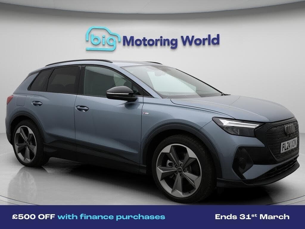 £500 towards your finance depo-Our Audi Q4 e-tron is finished in Blue. Specification includes a range of fantastic features including £500 towards your finance deposit, Leather Seats, Apple CarPlay, Adaptive Cruise Control, S Line Body Styling, Android Auto, Satellite Navigation, Privacy Glass, Heated Seats, Rear View Camera Specification information is supplied by CAPHPI and may vary to the actual car. This data does not form any part of a buying contact. Please check specification prior to purchase in-store. The MOT is valid until March 2027, visit bigmotoringworld.co.uk for more photos, a 360 tour, service history and a free HPI report.Were BIG on peace of mind and this Blue Audi Q4 e-tron has completed our comprehensive 200 point inspection and passed all checks. Its ready for you to drive away with immediate collection in-store. We include a 90-day warranty as standard plus an option to extend for up to 3 years.Reserve this car exclusively for you, safely and securely at bigmotoringworld.co.uk, with a fully refundable £99 deposit. Test drive before you buy, with no commitment, no hassle and a completely haggle free experience. Still searching and want to see thousands more cars? We are BIG on choice with over 8000 cars to choose from.Visit our award winning web site bigmotoringworld.co.uk.Were Big Motoring World and were BIG on what matters to you.