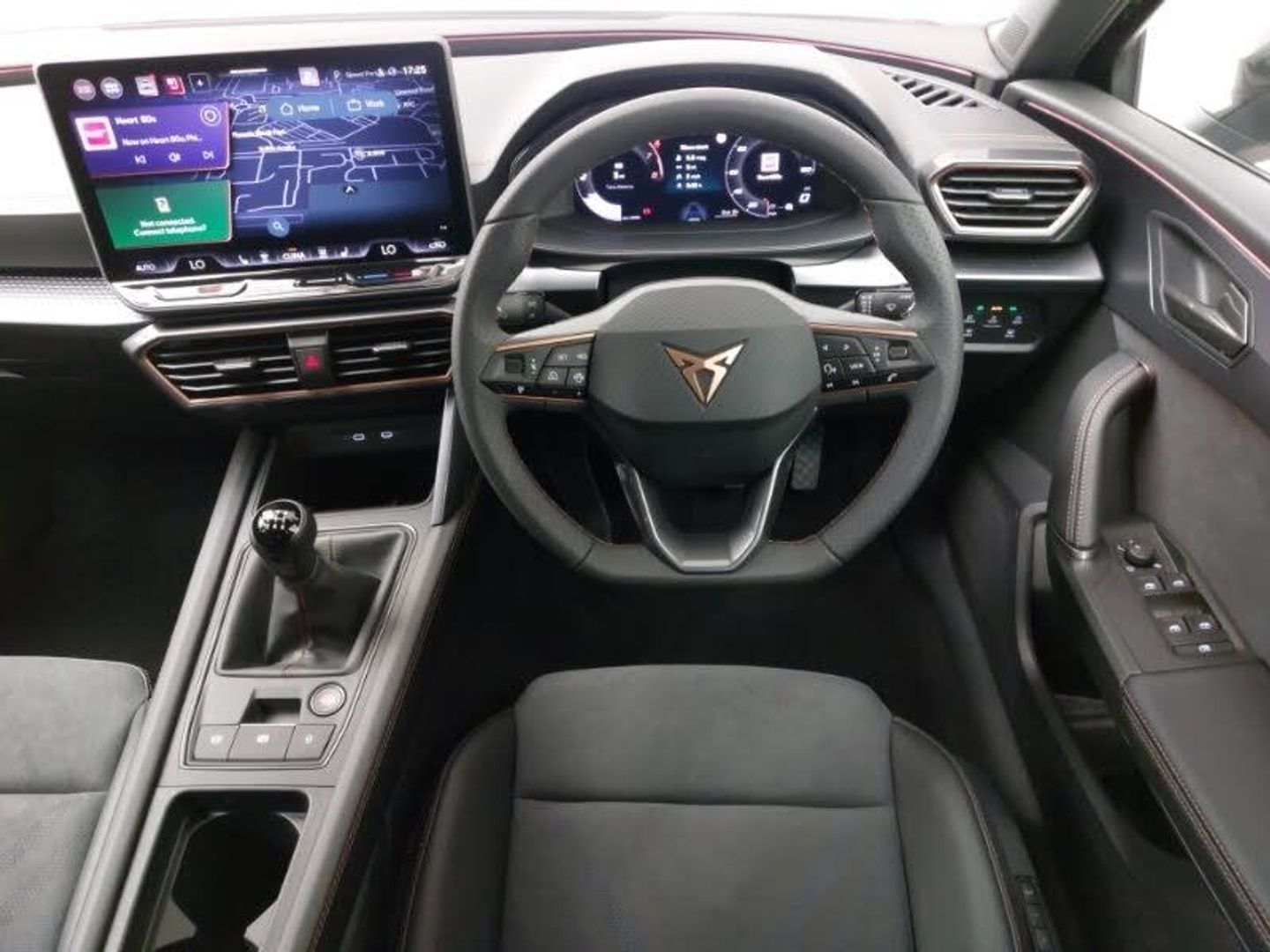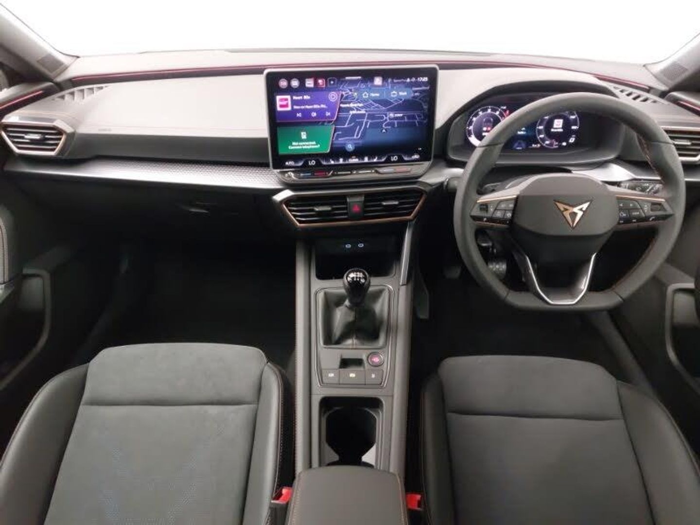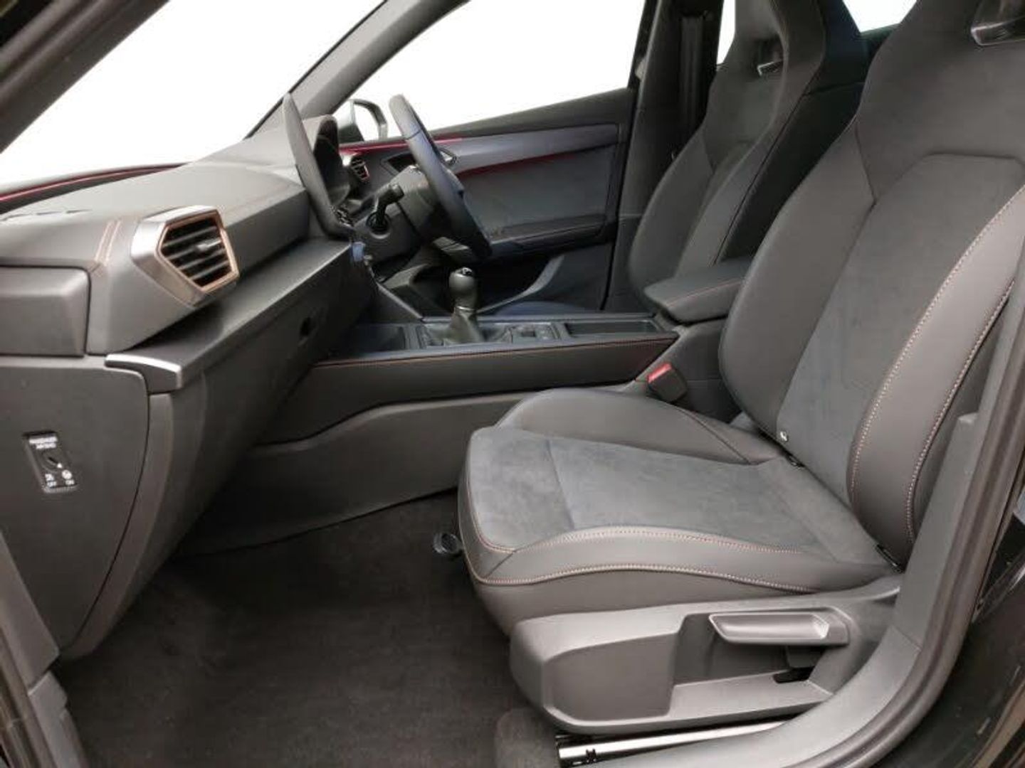 Media system plus with 12.9" display + navigation pack - Leon Cupra, Digital cockpit, Full link smartphone integration with Mirror Link, wireless Apple CarPlay and wired Google Android Auto, Rear view camera, Wireless phone charger, Adaptive cruise control with follow-to-stop and speed limiter, CUPRA drive profile selection with (Comfort/Sport/Individual), throttle response and gearshift mode, Four x USB Type C ports (2 in front and 2 in rear), Front and rear parking sensors, LED headlights with dynamic turn signals, tail lights, rear fog lights with rear coast to coast lighting, Dark tinted rear windows, Auto dimming rear view mirror, Rain sensing wipers, Electrically adjustable driver seat and lumbar support with memory function + manually adjustable passenger seat, Three zone climate control, Heated front seats, Ambient lighting (glovebox, footwell, ambient lighting multicoloured), Dynamic and comfort pack - Leon Cupra, KESSY Advanced - Keyless start, keyless entry