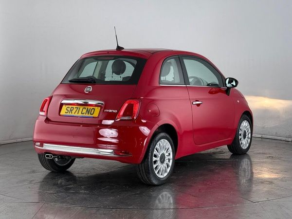 16in Alloy Wheels - White Finish, 50-50 Split Folding Rear Seat with Height Adjustable Head Restraints, 7 Airbags, 7in HD Touchscreen Radio with 3D Navigation - Bluetooth - USB and DAB, 7in TFT Instrument Cluster, ABS with EBD, Apple CarPlay - Android Auto Connectivity, Automatic Climate Control, Automatic Door Locking, Body Coloured Bumpers, Body Coloured Side Rubbing Strips with 500 Logo, Chrome Finished Door Mirror Covers, Chrome Kit, Chrome Plated Exterior Door Handles, Chrome Trim on Bonnet, Cruise Control, ESC - Electronic Stability Control, Electric Front Windows, Electrically Adjustable Painted Door Mirrors with Defrosting and External Temperature Sensor, Fix and Go Puncture Repair Kit, Fixed Glass Roof with Sunblind, Fog Lights, Front Seats with Memory Function, Height Adjustable Drivers Seat, Hybrid Badge on Tailgate, LED Daytime Running Lights, Leather Gear Knob, Rack and Pinion with Electric Power Steering, Rear Parking Sensors, Remote Central Locking, Speed Limiter, Steering Wheel - Height Adjustment, TPMS - Tyre Pressure Monitoring System, Technoleather Steering Wheel with Audio Controls, Unique All Around Liner - Red-White-Red, Unique Floor Mats with White Boarders, Unique Wooden Dashboard, Fabric - Black-Ivory with Ivory Ambience