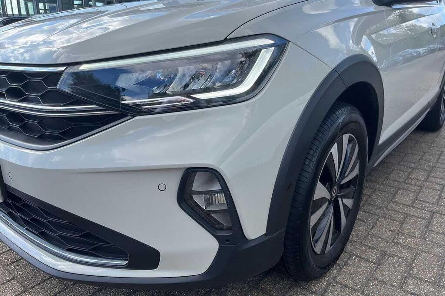 Side windows in heat-insulating glass, from B-pillar and rear window dark tinted, Solid - Ascot grey, 15'' weight and space saving spare wheels with onboard tools + jack, Electric windows, Heat insulating glass windscreen, Rear wash/wipe with intermittent wipe setting, Body coloured bumpers, Body coloured exterior mirror housings and door handles, External USB type C socket and charging sockets, Rear side wing doors, Ambient lighting with logo projection, Auto headlights, Front fog lamps with cornering function, Headlight range control, LED headlamps, LED rear combination lamp, LED third brake light, Rear fog light on one side, reversing light on both sides, Electronic stability control, Front and rear disc brakes, Hill start assist, Driver alert system, Power Steering, Aspherical driver's exterior mirror, Left convex exterior mirror, Power folding adjustable/heated exterior mirrors and front passenger exterior mirror lowering function, 2 x 3-point seatbelts/outer rear seats with ECE label, 3-point seat belts in front with pretensioner and height adjustment, 3-point seatbelt for centre rear seat, Driver and front passenger airbags with front passenger airbag de-activation, front side and curtain airbags, Driver and front passenger safety-optimised head restraints, Extended and predictive pedestrian/ cyclist protection, Front curtain and side airbags with center airbag, Manual rear child locks, Single tone horn, Tyre pressure loss indicator, Black carpets, 'Slash/ Austin' Cloth upholstery, 12V socket in centre console, Door and side trim panels in titan black, Front centre armrest, Handbrake lever handle in leather, Height and reach adjustable steering wheel, Leather trimmed gear knob, Leather wrapped multifunction steering wheel, Luggage compartment floor, Seat covers in titanium black, Storage compartment under front seats, 2 front reading lights, Luggage compartment light, Sun visors with illuminated vanity mirrors, App-Connect including App-Connect Wireless, Wireless Charging including Bluetooth, Digital radio reception (DAB+), Diversity antenna for FM reception, WeConnect plus, e-Call (emergency call), Travel assist including emergency assist, Washer fluid level indicator, Start-stop system with battery regeneration (recuperation - energy recovery during braking), Lava stone black gloss/matt decorative inserts in dash and front door panels, 3 rear head restraints, 3 seat bench in 2nd row, Child seat anchor for child seat system i-Size, 2x top tether and child seat anchor in front on front passenger side, Driver and front passenger seat height adjustment, Lumbar support for driver's and front passengers seat, Single front passenger seat, Split folding backrest with centre armrest and unsplit rear seat bench, Chrome Package - Taigo, Drivers assistance pack - Taigo, Light and Sight pack including High beam assist - Taigo, Anti-theft alarm system with interior monitoring, backup horn, and towing protection, Anti-theft wheel bolts, Low rolling resistance tyres