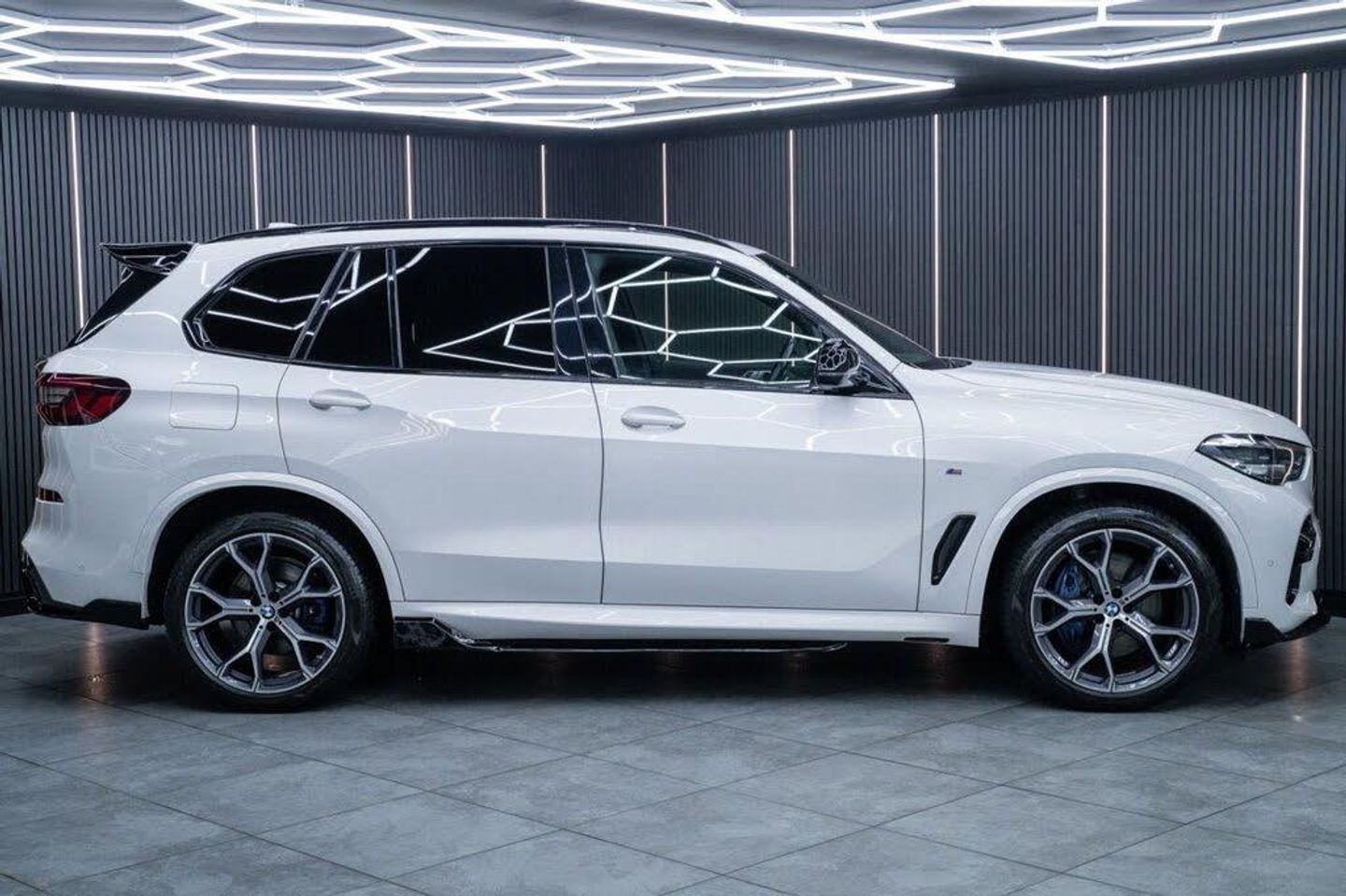 20GB Hard Disc Drive HDD Memory, 20in Alloy Wheels - M light Star-Spoke Style 740 M Bicolour with Mixed Tyres and Run Flat Tyres, ABS - Anti Lock Braking System, Active Air Stream Kidney Grille - High-Gloss Chrome, Active Guard Plus, Adaptive Air Flap Control Bar - High-Gloss Black, Adaptive M Sport Suspension, Air Conditioning - Automatic with 2.5 Zone Control, Airbags - Driver - Front Passenger- Rear and Side, Alarm System - Thatcham 1 with Remote Control and Engine Immobiliser, Ambient Interior Lighting, Armrest - Front and Rear Integrated into Door Trim, Attentiveness Assistant, Automatically Dimming Rear View Mirror, BMW Connected Package Professional, BMW ConnectedDrive Online Services, BMW Individual High-Gloss Shadowline, BMW Individual Roof Rails High-Gloss Shadow Line, BMW Legal Emergency Call, BMW Live Cockpit Professional, BMW TeleServices, Brake Energy Regeneration, Brake Force Display, Brake System, Brake-Pad Wear Indicator, Centre Armrest - Rear - Foldable with 2 Cupholders and Storage Compartment, Centre Console includes Storage Compartment, Centre Lock Switch - Driver and Front Passenger Door, Child Seat ISOFIX Attachment - Outer Rear Seats - includes Top Tether, Closing System with Central Locking, Compartment in Front of Cupholder, Crash Sensor - Activating Central Locking Release - Hazard Warning Lights - Fuel Cut Off - Interior Lighting and Activation of the Safety Battery Clamp, Cruise Control with Brake Function, Cup Holders - Front x2 and Rear x2, DAB Tuner, DSC - Dynamic Stability Control - Stabilises the Vehicle in Extreme Situations - Controls Traction, Daytime Running Lights - LED, Deformation Zones - Front and Rear, Digital Aftermarket - Active Cruise Control, Door Pockets - Front and Rear, Door Sill Inlays - BMW M Designation Illuminated, Double-Wishbone Front Axle, Drive Performance Control with ECO PRO - Comfort and Sport, Dynamic Brake Lights with LED Technology, EPS - Electric Power Steering with Servotronic, Electric Windows - Front and Rear with Open-Close Fingertip Control - Anti-Trap Facility and Comfort Closing Function, Electrical Steering Column with Adjustable Height and Length, Electro-Mechanical Parking Brake with Automatic Drive-Away Release and Auto-Hold Function, Enhanced Bluetooth with Wireless Charging, Exhaust Tailpipes - Single - Left and Right - Chrome, Expanded Exterior Mirror Package, Exterior Mirror Housing - Body Colour, Favourite Buttons, First Aid Kit and Warning Triangle, Follow Me Home Headlight Function, Footwell Lights - Front, Front Grille Bars - Pearlescent Chrome, Front and Rear Air Suspension, Head Airbags - For First and Second Row Seats, Head Restraints - Front Anti-Whiplash, Headlights - Adaptive LED, Headlining - Anthracite, Heated Windscreen Washer Jets, HiFi Loudspeaker System, High-Beam Assistant, Interior Light - Rear Centre, Interior Trim - Aluminium Tetragon, Knee Airbag, LED Rear Lights, Light Inside Glove Compartment, Lockable Glove Compartment, Locking Wheel Bolts - Thatcham Approved, Luggage Compartment - Light, Luggage Compartment Floor Panel with Integral Storage Tray, M Aerodynamic Bodystyling, M Designation on Front Side Panels - Left and Right, M Leather Steering Wheel, M Specific Floor Mats Velour, M Specific Key, M Specific Pedals, M Specific Steering Wheel, M Sport Brake - Blue High Gloss, M Sport Braking System, M Sport Package, Make-Up Mirror Lights, Mechanical Childproof Lock - Rear Doors, Multi-Function Controls for Leather Steering Wheel, Multifunctional Hooks, Non Smokers Package, OBC - On Board Computer, Oil Sensor For Level and Grade, Outer and Central Air Intakes on Front Bumper - High-Gloss Black with Pearlescent Chrome Finish, PDC - Park Distance Control - Front and Rear, Parking Assistant, Passenger Seat Airbag Deactivation - Front, Passive Protection for Pedestrians, Power Sockets 12v - 2x Centre Console - 1x Luggage Compartment, Rain Sensor with Automatic Headlight Activation and Windscreen Wiper Control, Reading Lights - Front, Safety Battery - Terminal Clamp, Seat Adjustment - Front Electric with Driver Memory, Seat Back with Flap Pocket, Seat Belts Front and Rear - Seat Belt Tensioner - Front and Outer Rear Seats - Belt Force Limit, Seat Heating for Driver and Front Passenger, Seat Occupancy Detection for Driver and Passenger Side, Side Elements - High Gloss Black, Side Impact Protection, Side Window Graphics - Satin Aluminium, Speed Limit Display, Speed Limiting Function, Split Folding Rear Seats 40-20-40 Configuration, Sport Seats for Driver and Front Passenger, Start-Stop Toggle - Diamond-Shaped Trim Finisher in Pearl Chrome, Steering Wheel - Paddle Shift, Storage Tray and Compartment with Lid in Centre Console, Sun Visors with Illuminated Vanity Mirrors, TPMS - Tyre Pressure Monitoring System, Tailgate Automatic - Two Part Top-Hinged Section Which Can Be Opened Separately and Manual Bottom-Hinged Section, Third Brake Light - Spoiler, Toolkit Located in Luggage Compartment, Two Tone Horn, USB Connection - USB Type A 1.5A in Cupholder - USB Type C 3A in Centre Armrest, Welcome Light Carpet, X5 on Tailgate - Left, iDrive Touch Controller with Shortcut Buttons, xDrive Designation on Tailgate - Right, 21in Alloy Wheels - M Light Y-Spoke Style 741 M Bicolour with Mixed Tyres and Run Flat Tyres, M Sport Pro Package, Mineral White, Perforated Vernasca Leather - Black-Black, Sky Lounge Panoramic Glass Sunroof, Sun Protection Glazing