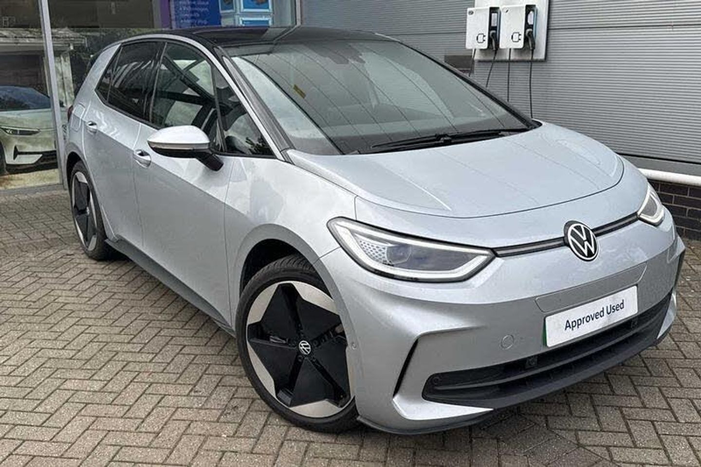Exterior Features, Metallic paint, Paint - Metallic, Metallic - Scale silver, Exterior Features, Automatically front heated washer nozzles, Front and rear electric windows, Heat insulating windscreen, Heated windscreen washer jets, Rain sensor, Rear tinted glass from B-pillar backwards approx 65% tinted, Rear wiper, Variable front intermittent wipers, Body colour door handles, Body coloured bumpers, Rear side wing doors, Advanced dynamic light assist for LED matrix headlights, Automatic headlights, LED 3rd brake lamp, Separate LED daytime running lights which also perform the indicator function, Welcome light, Safety, Anti-lock braking system (ABS), Autonomous emergency braking front assist with pedestrian and cyclist monitoring, Disc brakes in front, Electronic parking brake with auto hold, Electronic Stability Programme (ESP), Traction control with on/off button, Adaptive cruise control, Driver alert system with fatigue detection, Driving profile selection, Dynamic road sign display, Lane assist, Oncoming vehicle braking when turning including swerve support, Power assisted speed sensitive steering, Auto dimming rear view mirror, Body coloured door mirrors with intergrated indicators, Remote electrically foldable door mirrors, puddle lights and reverse activated passenger's door mirror, 2 rear 3 point safety belts, Centre airbag, Child locks on rear doors, Driver and front passenger airbags, First aid kit with warning triangle, safety vest + 2 face masks, Front and rear curtain airbags, Front passenger airbag deactivation, Front side airbags, Single tone horn, Tyre pressure loss indicator, Audio / Communications, Bluetooth connectivity, Car2X intelligent vehicle networking, E-call, E-Sim card for online connectivity, Natural voice control, Security and service (SOS buttons), Wireless app connect, Wireless Smartphone charger, 2 USB C ports in front, 2 USB charging sockets on the centre console in the rear charging capacity upto 45W, DAB Digital radio, Front speakers, Driver Convenience, Remote tailgate unlocking, Miscellaneous, Discover pro navigation with 10 inch screen, Preparation for navigation system with media and internet package, Trip computer, Warning signal and warning light for front and rear seatbelts not fastened, Standard electronic engine sound actuator, Interior Features, Air care climatronic air conditioning system, Electric auxiliary air heater, Artvelour eco upholstery, ArtVelours door and side trim panel, Centre console with illuminated storage compartment with sliding cover and two drinks holders, Front armrests, Leatherette-wrapped multifunction steering wheel, Play and Pause brake and accelerator pedals, Reach + rake adjustable steering column, 10 colour interior ambient lighting, Rear wheel drive, Sunvisors with illuminated vanity mirrors, Packs, Driver assistance pack with park assist plus - ID.3, Exterior pack - ID.3, Styling pack - ID.3, Trim, 2 seat bench in 2nd row, Asymmetric split folding rear seat backrest with center armrest, Comfort seats, Ergoactive seats in front with power adjustment, memory feature and adjustable thigh support, Folding rear seats, Front headrests, Heated